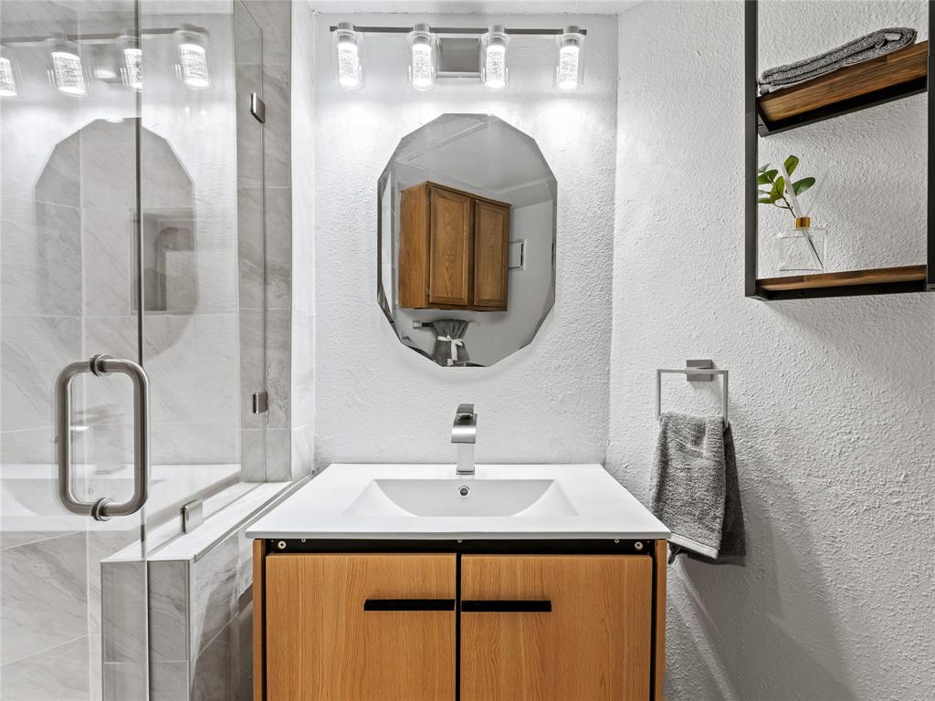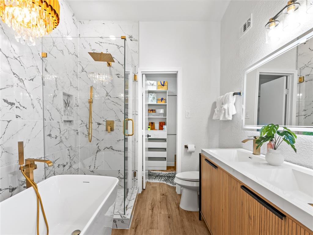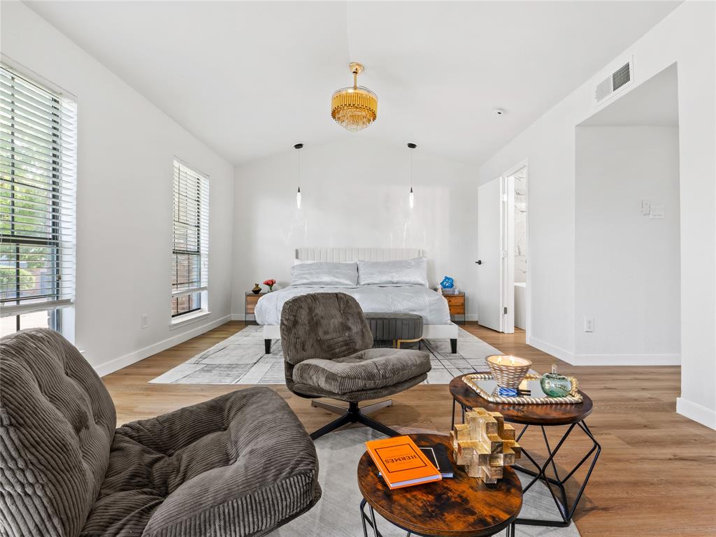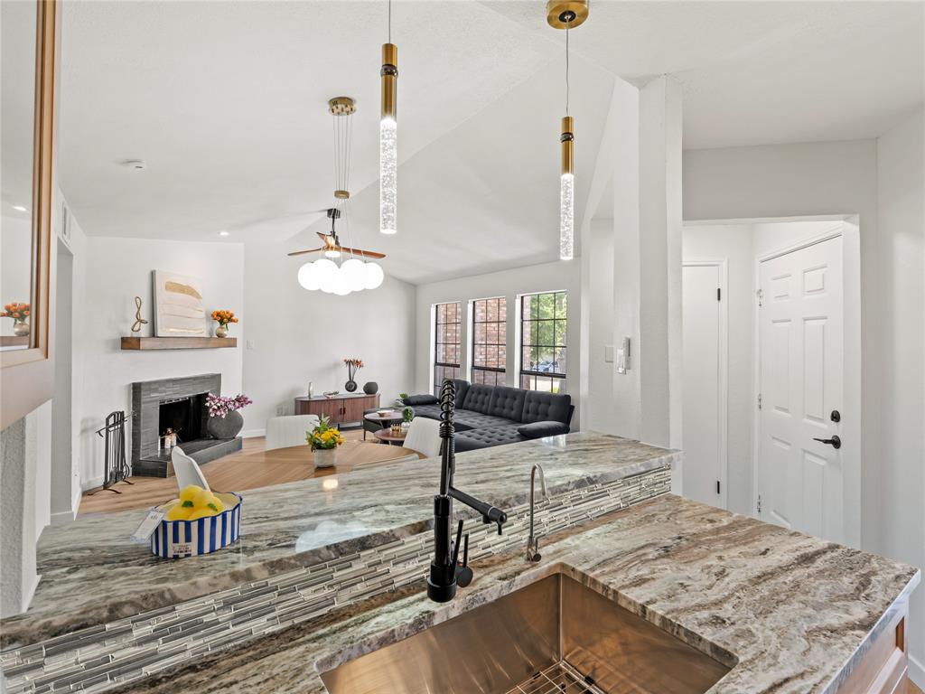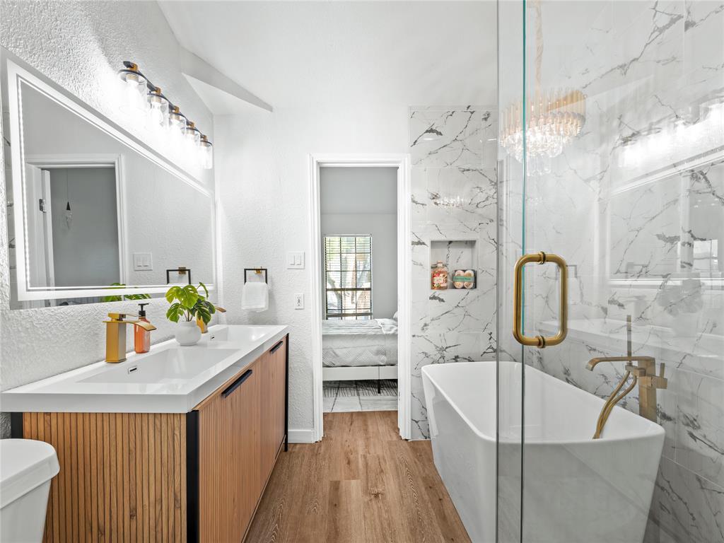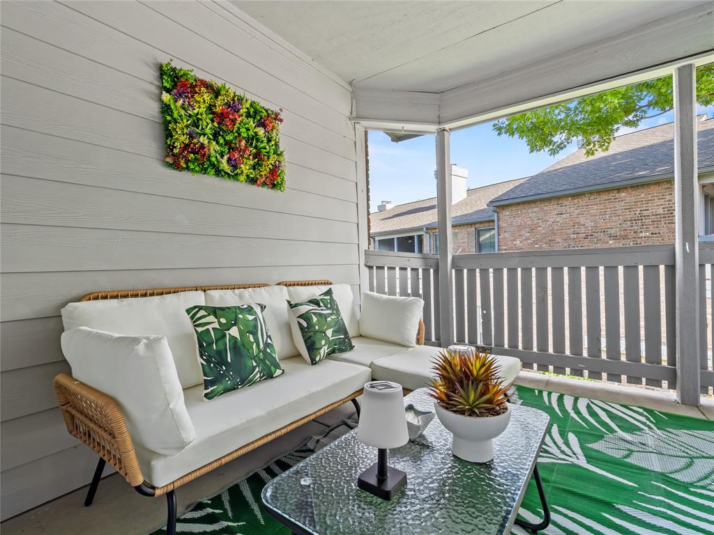 Completely Renovated Luxury Townhome in the Heart of Plano, 2 Bed, 2 Bath, 1-Car Garage + Private Patio. This stunning 2-bedroom, 2-bath townhome has been meticulously renovated with top-tier upgrades and designer finishes throughout. Located in the desirable Townbluff community, this home offers style, comfort, and functionality in every detail. Enjoy a beautifully remodeled kitchen featuring oversized soft-close wood cabinets, dual pantry towers with custom pull-out shelving, 3” granite countertops, new stainless appliances including a French door refrigerator, range oven, under-mount sink, and reverse osmosis water filter. A bar-height peninsula and bar window opening add charm and practicality, complete with modern pendant lighting. Both bathrooms have been fully redesigned with spa-like features. The luxurious primary suite includes an oversized walk-in shower with glass enclosure, a freestanding soaking tub with a floor-mounted hand shower, built-in niches, a LED anti-fog mirror, and a 60” double-sink vanity with floor-to-ceiling tile. The second bathroom is equally updated with contemporary finishes and updated plumbing. Throughout the home, enjoy luxury waterproof LVP flooring with premium soundproof underlayment, a new tankless water heater, upgraded electrical panel, enhanced lighting, and added outlets. Two beautifully tiled wood-burning fireplaces with custom wood mantels create cozy focal points in both the living room and primary bedroom. The master suite also features a walk-in closet with custom organizer system. Additional highlights include fresh paint throughout, modern hardware and fixtures, two new window panels, and a private patio perfect for relaxing outdoors. All appliances are included. This home is a rare turnkey opportunity in one of Plano’s most convenient locations. Community Pool & Clubhouse. Water, Sewer, Trash is included.