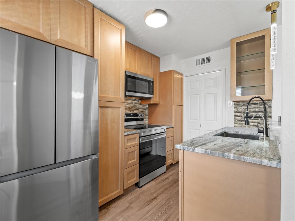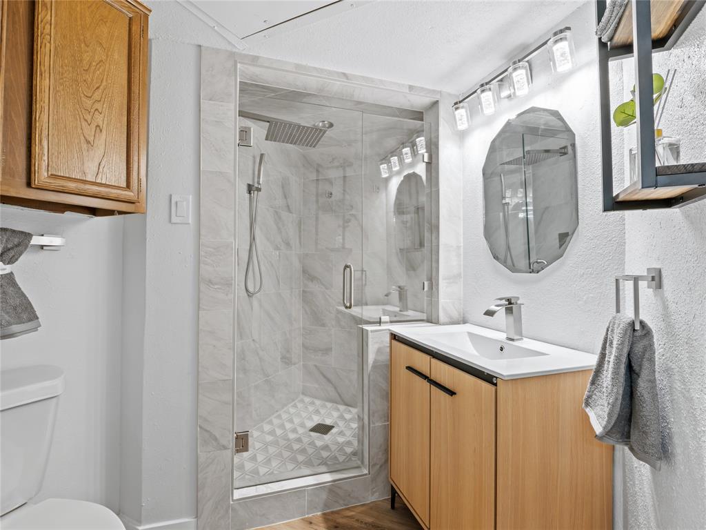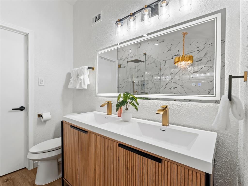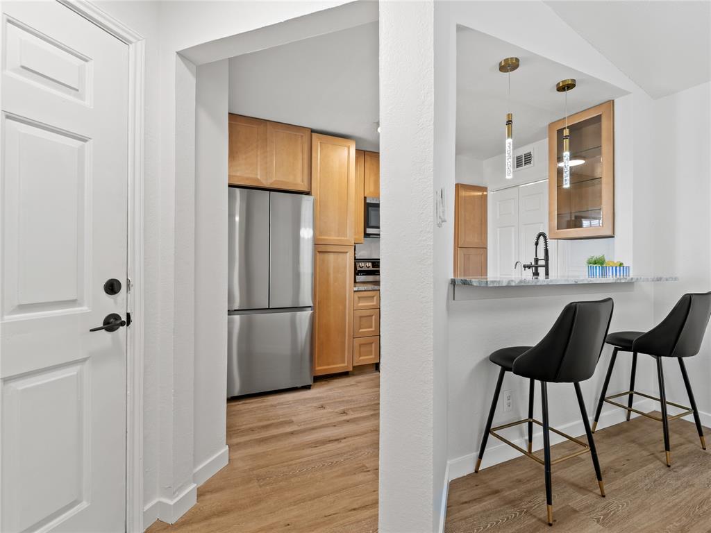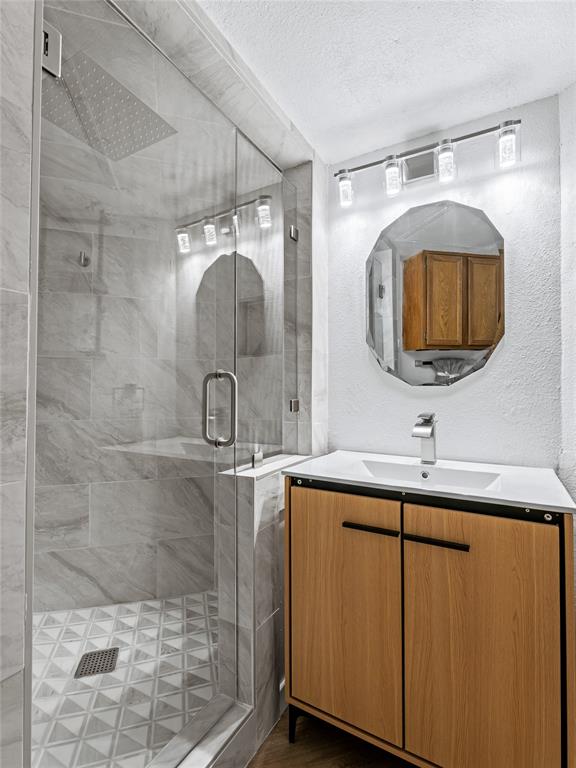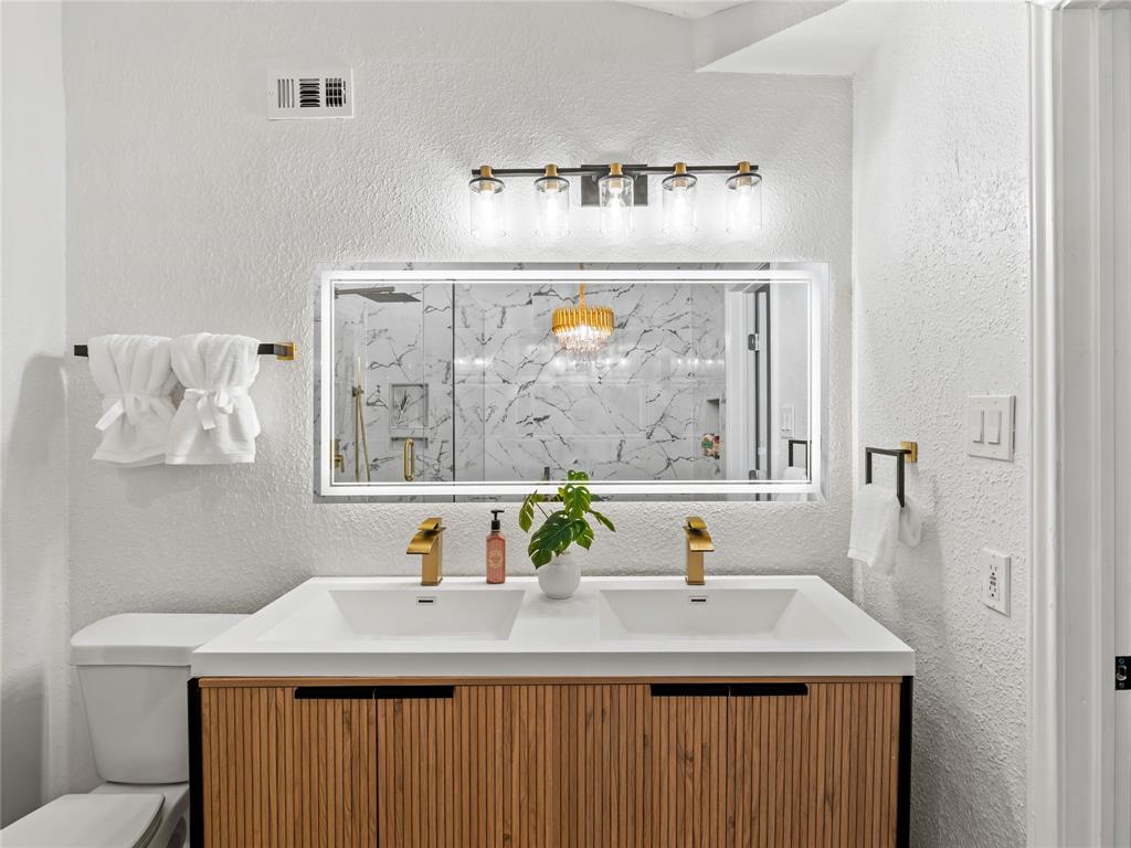 Completely Renovated Luxury Townhome in the Heart of Plano, 2 Bed, 2 Bath, 1-Car Garage + Private Patio. This stunning 2-bedroom, 2-bath townhome has been meticulously renovated with top-tier upgrades and designer finishes throughout. Located in the desirable Townbluff community, this home offers style, comfort, and functionality in every detail. Enjoy a beautifully remodeled kitchen featuring oversized soft-close wood cabinets, dual pantry towers with custom pull-out shelving, 3” granite countertops, new stainless appliances including a French door refrigerator, range oven, under-mount sink, and reverse osmosis water filter. A bar-height peninsula and bar window opening add charm and practicality, complete with modern pendant lighting. Both bathrooms have been fully redesigned with spa-like features. The luxurious primary suite includes an oversized walk-in shower with glass enclosure, a freestanding soaking tub with a floor-mounted hand shower, built-in niches, a LED anti-fog mirror, and a 60” double-sink vanity with floor-to-ceiling tile. The second bathroom is equally updated with contemporary finishes and updated plumbing. Throughout the home, enjoy luxury waterproof LVP flooring with premium soundproof underlayment, a new tankless water heater, upgraded electrical panel, enhanced lighting, and added outlets. Two beautifully tiled wood-burning fireplaces with custom wood mantels create cozy focal points in both the living room and primary bedroom. The master suite also features a walk-in closet with custom organizer system. Additional highlights include fresh paint throughout, modern hardware and fixtures, two new window panels, and a private patio perfect for relaxing outdoors. All appliances are included. This home is a rare turnkey opportunity in one of Plano’s most convenient locations. Community Pool & Clubhouse. Water, Sewer, Trash is included.