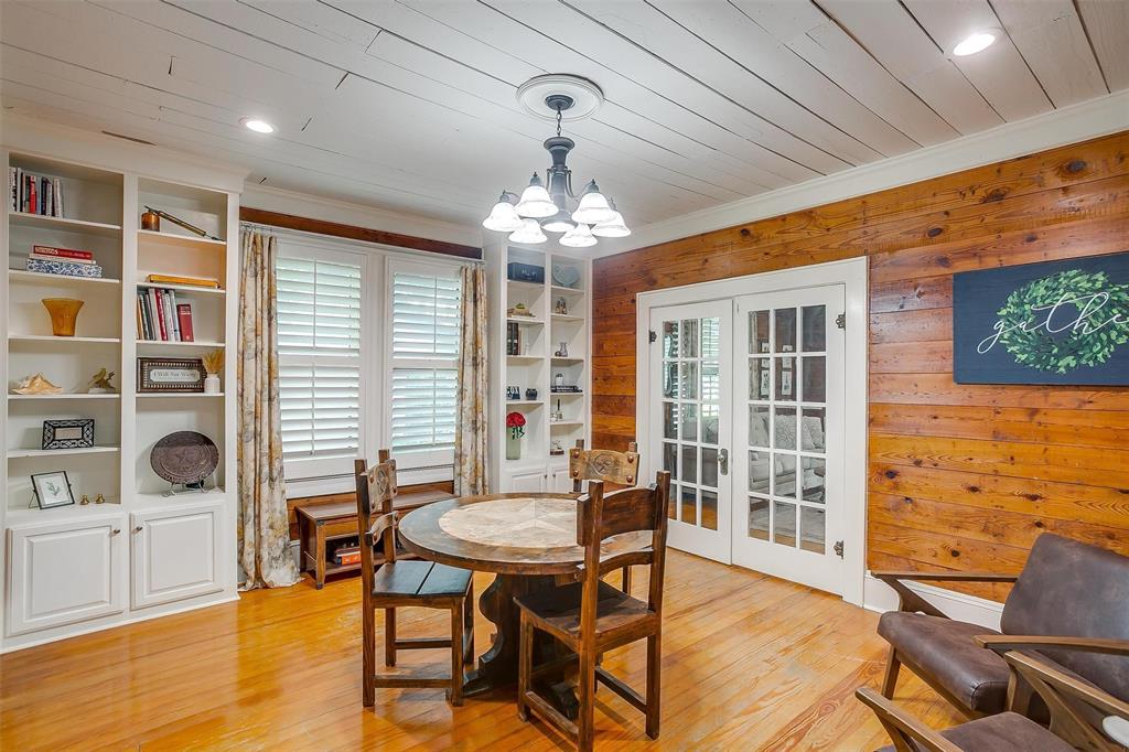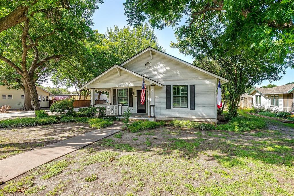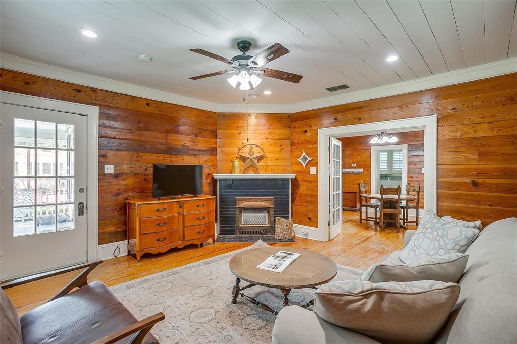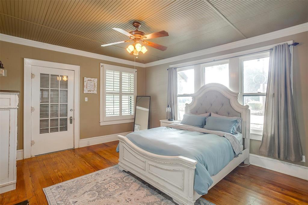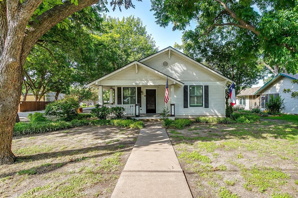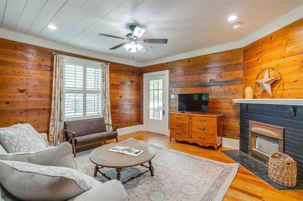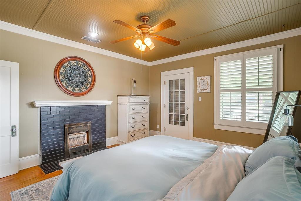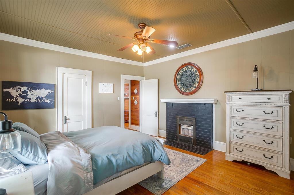 Step into a piece of Waxahachie history! Built in 1910 and featured on the Candlelight Tour, this charming home blends thoughtful updates with unmatched original character. You’ll love the exposed shiplap walls—untouched and nail-kissed—as well as original hardwood floors, doorknobs, French doors, and exterior doors. Enjoy cozy evenings by the gas fireplaces in both the living room and primary bedroom. The kitchen has been tastefully updated with a center island, butcher block counters, and modern touches. A refreshed bathroom and a brand new roof make this home both charming and practical. Outside, relax on the covered front porch or enjoy the screened-in back patio. The carriage house out back adds bonus storage, and you're just minutes from downtown Waxahachie. Homes like this are rare—don’t miss it!