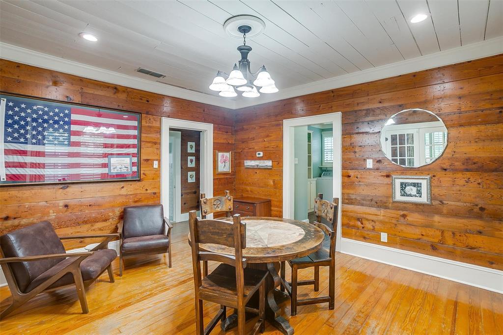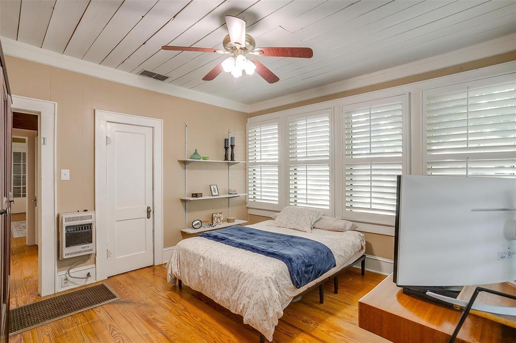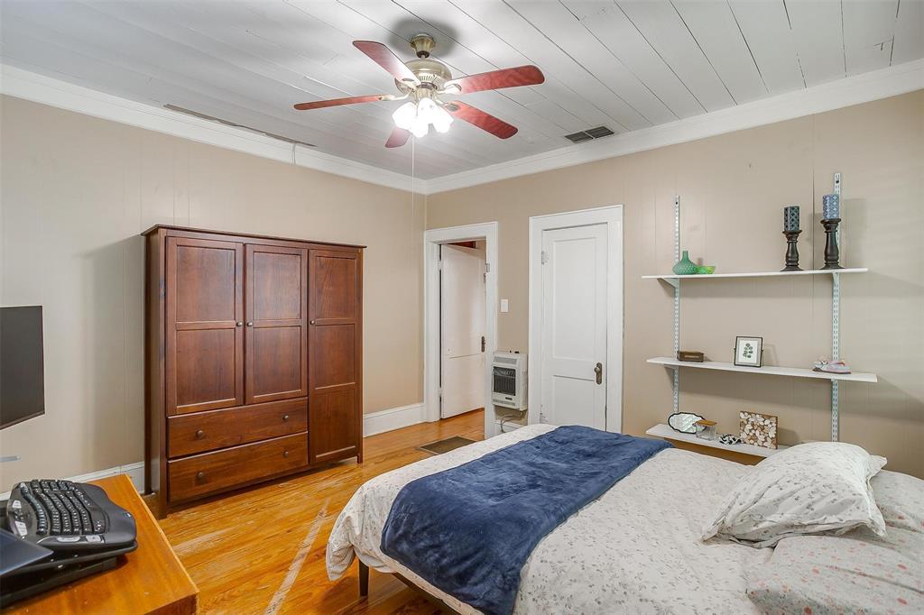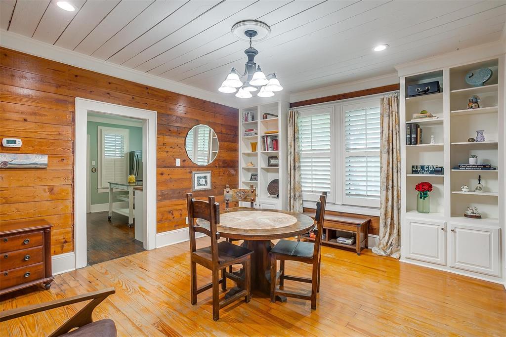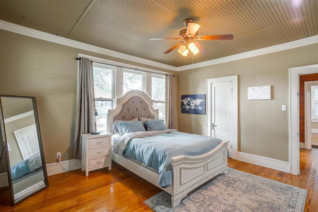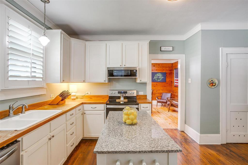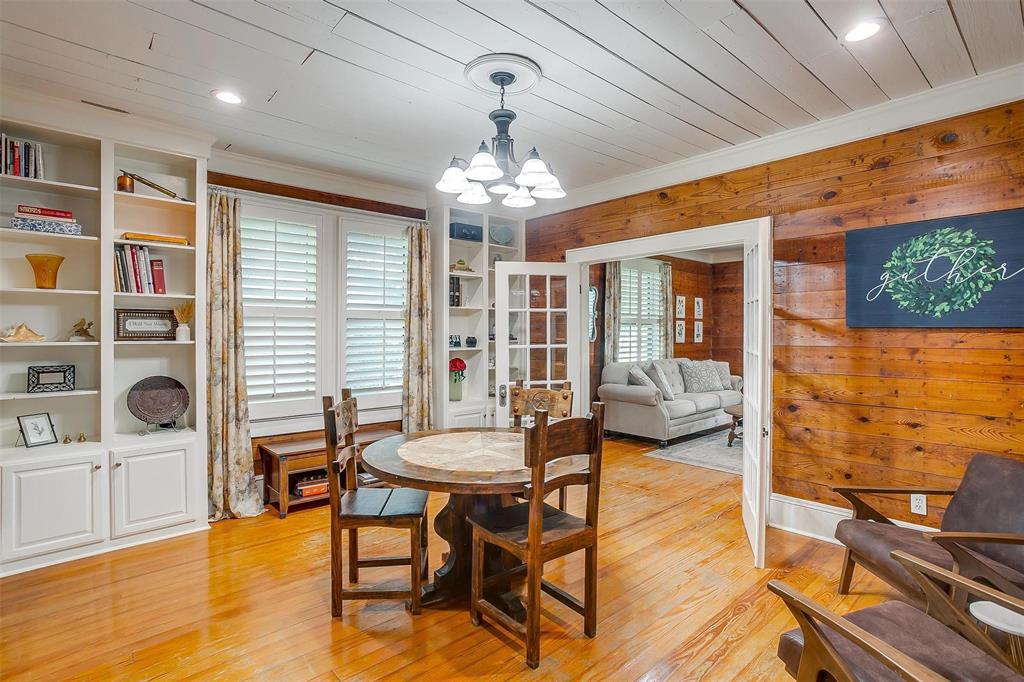 Step into a piece of Waxahachie history! Built in 1910 and featured on the Candlelight Tour, this charming home blends thoughtful updates with unmatched original character. You’ll love the exposed shiplap walls—untouched and nail-kissed—as well as original hardwood floors, doorknobs, French doors, and exterior doors. Enjoy cozy evenings by the gas fireplaces in both the living room and primary bedroom. The kitchen has been tastefully updated with a center island, butcher block counters, and modern touches. A refreshed bathroom and a brand new roof make this home both charming and practical. Outside, relax on the covered front porch or enjoy the screened-in back patio. The carriage house out back adds bonus storage, and you're just minutes from downtown Waxahachie. Homes like this are rare—don’t miss it!