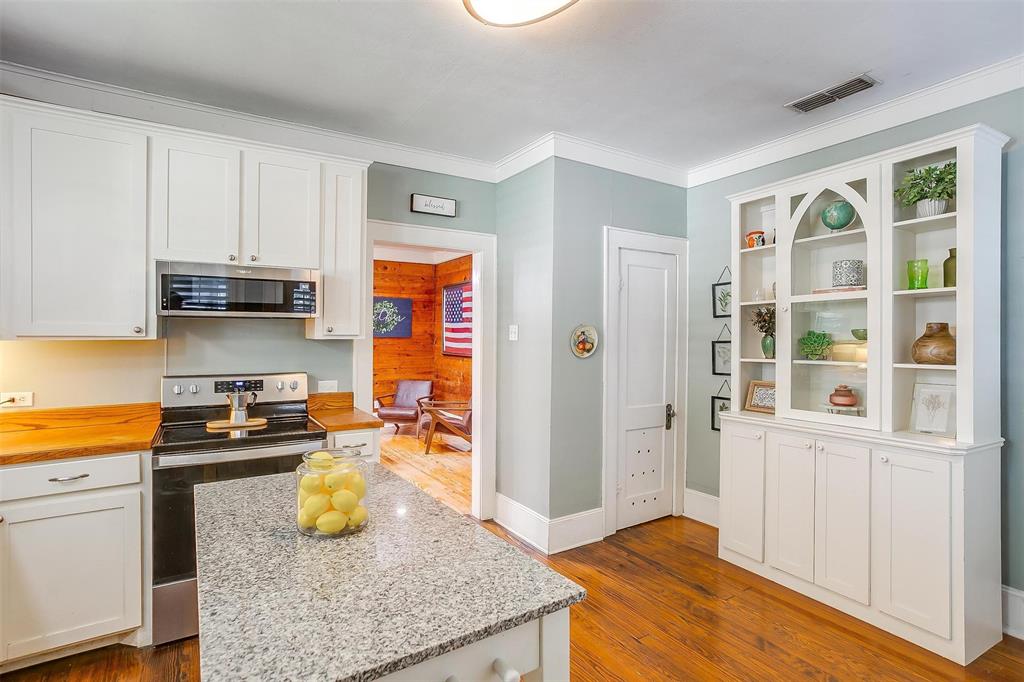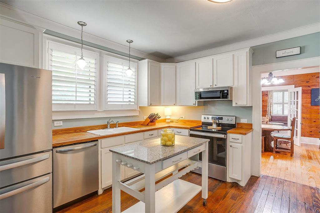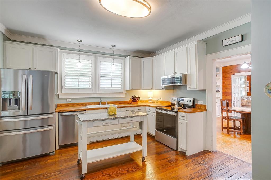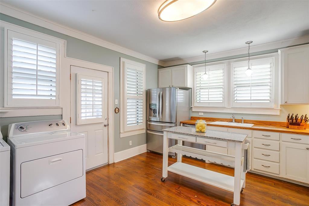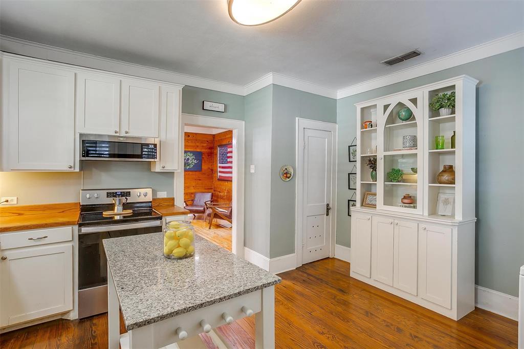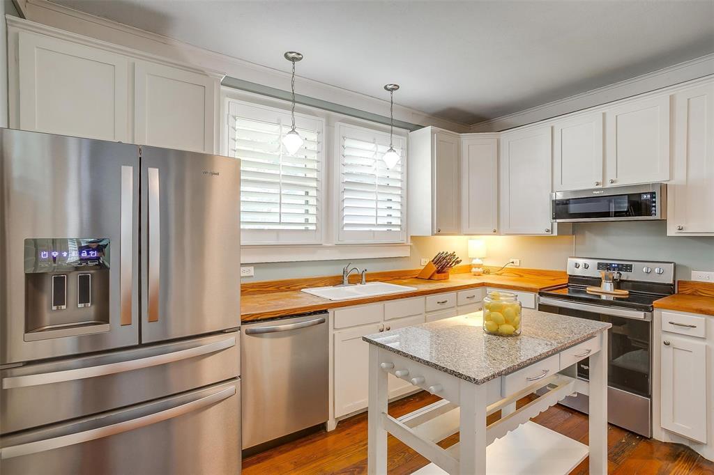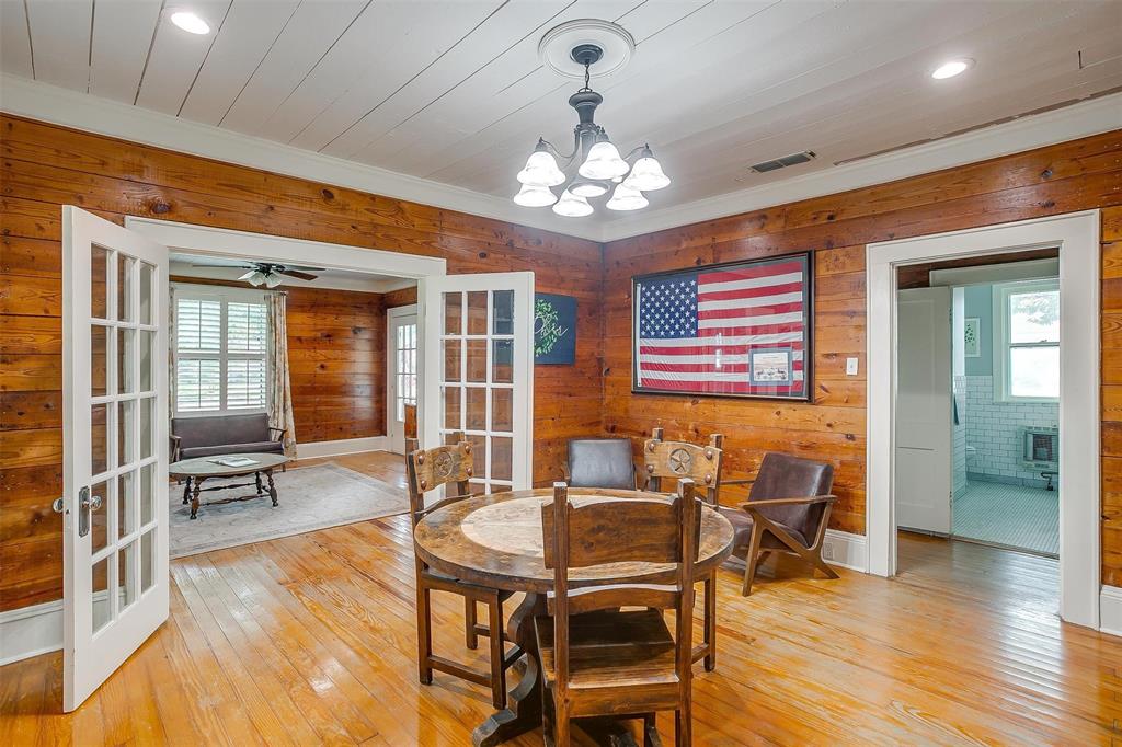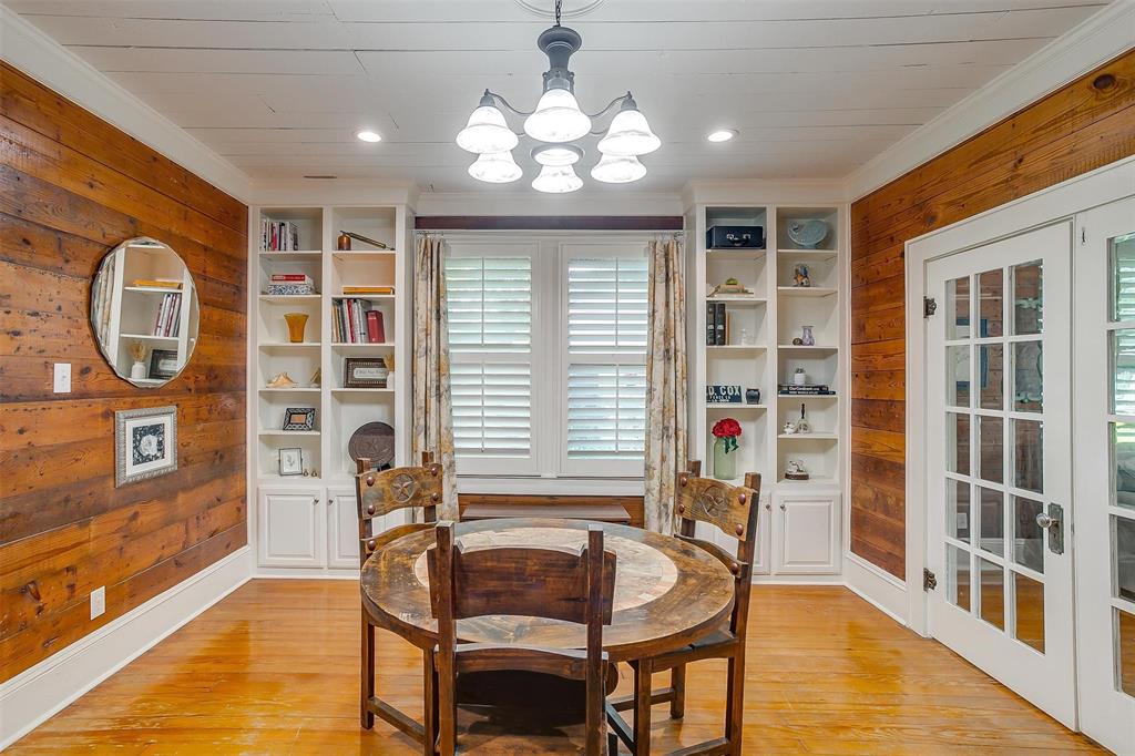 Step into a piece of Waxahachie history! Built in 1910 and featured on the Candlelight Tour, this charming home blends thoughtful updates with unmatched original character. You’ll love the exposed shiplap walls—untouched and nail-kissed—as well as original hardwood floors, doorknobs, French doors, and exterior doors. Enjoy cozy evenings by the gas fireplaces in both the living room and primary bedroom. The kitchen has been tastefully updated with a center island, butcher block counters, and modern touches. A refreshed bathroom and a brand new roof make this home both charming and practical. Outside, relax on the covered front porch or enjoy the screened-in back patio. The carriage house out back adds bonus storage, and you're just minutes from downtown Waxahachie. Homes like this are rare—don’t miss it!
