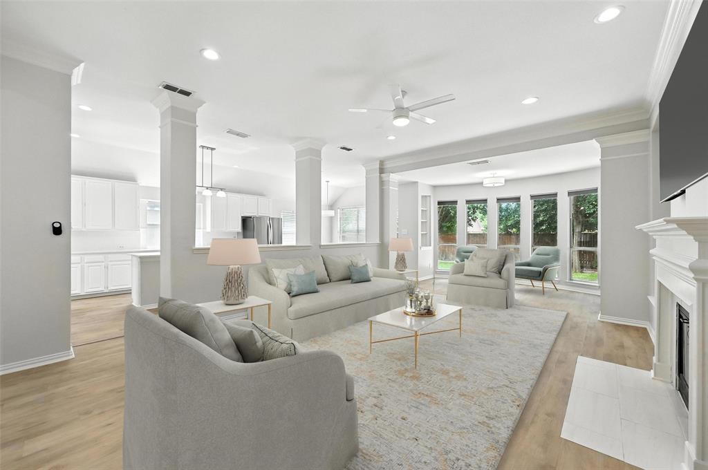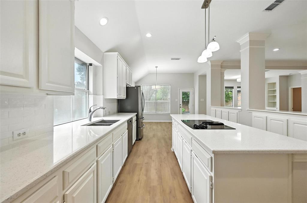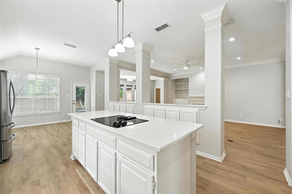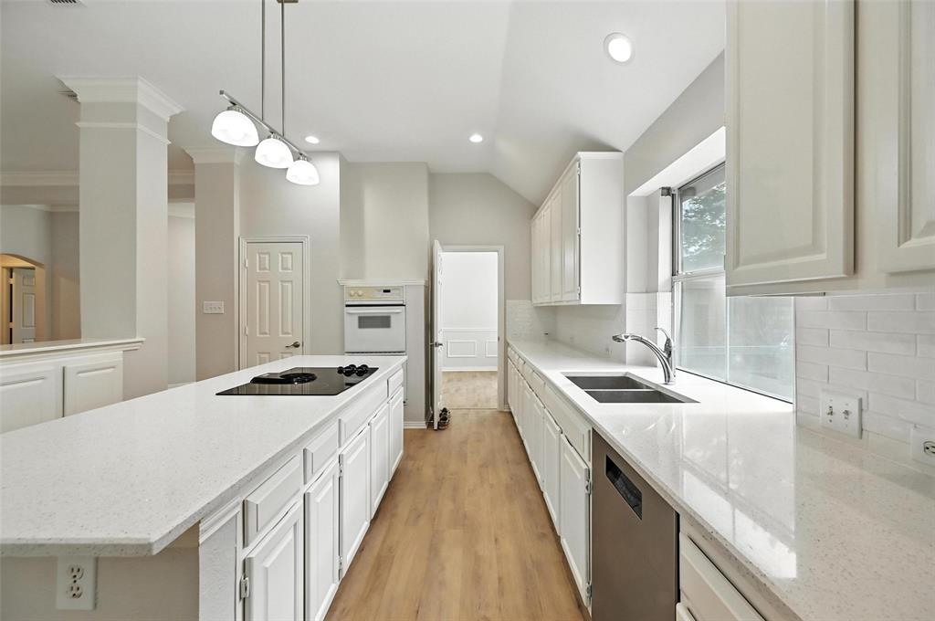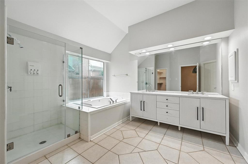 BACK ON THE MARKET! This was due to buyers changing their minds, and is not a reflection of the sellers or the property itself. Beautifully updated and move-in ready, this spacious 4-bedroom, 2.5-bath home is located in the highly desirable Villages of Northshore, built by David Weekley and nestled in the heart of Flower Mound. Offering both function and charm, the versatile floorplan includes multiple flexible living spaces such as a formal living or study at the front, a formal dining room that easily doubles as a game room, and a sunlit bonus room with a bow window—perfect for reading or relaxing. The open-concept kitchen features a large island with an electric cooktop, built-in double ovens, stainless steel dishwasher, abundant cabinetry, and generous counter space, opening to a spacious family room with a wood-burning fireplace and views of the backyard. The oversized primary suite is privately located and features tall ceilings, a walk-in closet, and a large ensuite bath with a jetted tub, separate shower, and dual vanities. Three additional bedrooms share a large hall bath with dual sinks and a private wet room. Recent updates include new flooring, new fireplace tile, new countertops in kitchen and guest bath, new vanity in primary bath, freshly painted kitchen cabinets new cement patio in backyard along with new landscaping, and fresh paintCommunity amenities include a tree-shaded park, playground, and pool just a short walk away. Zoned to top-rated Flower Mound schools with easy access to FM 2499 and just minutes from DFW Airport, shopping, and dining—this is a must-see home in a prime location. Schedule your showing today!