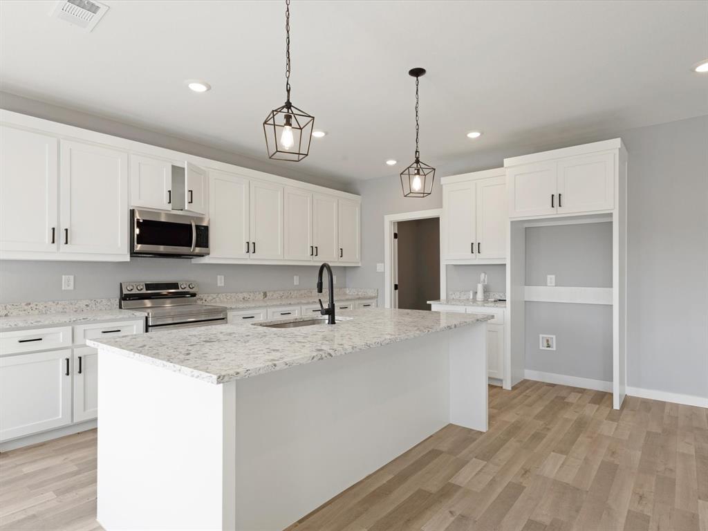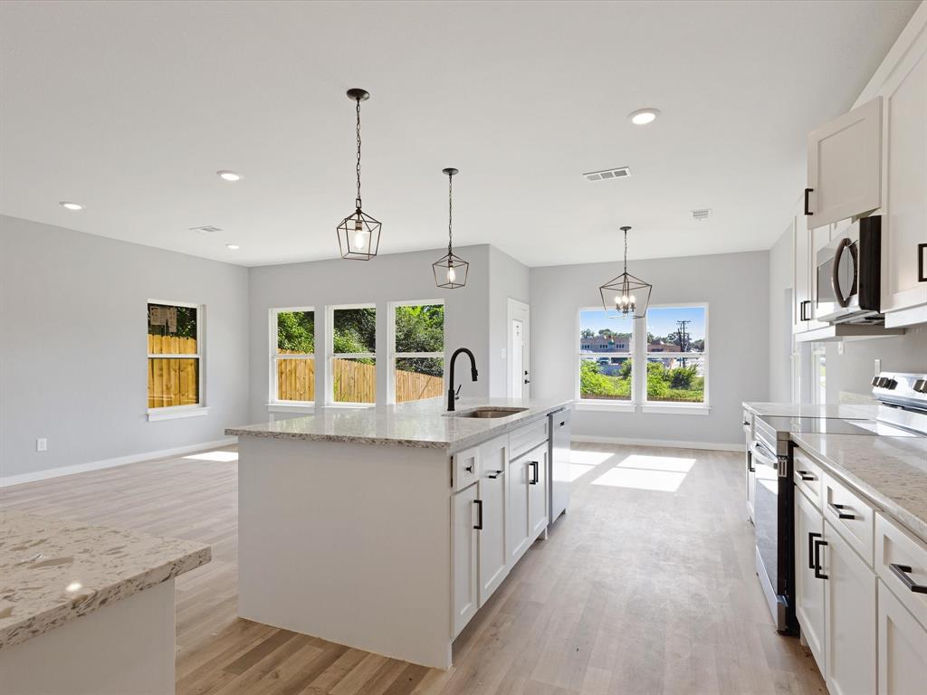 Discover modern comfort in this beautifully crafted 2025 new build, featuring an open-concept layout that seamlessly connects the kitchen, dining area, and living room, perfect for both entertaining and everyday living. The kitchen impresses with sleek granite countertops, decorative lighting, and ample space to cook, gather, and host.