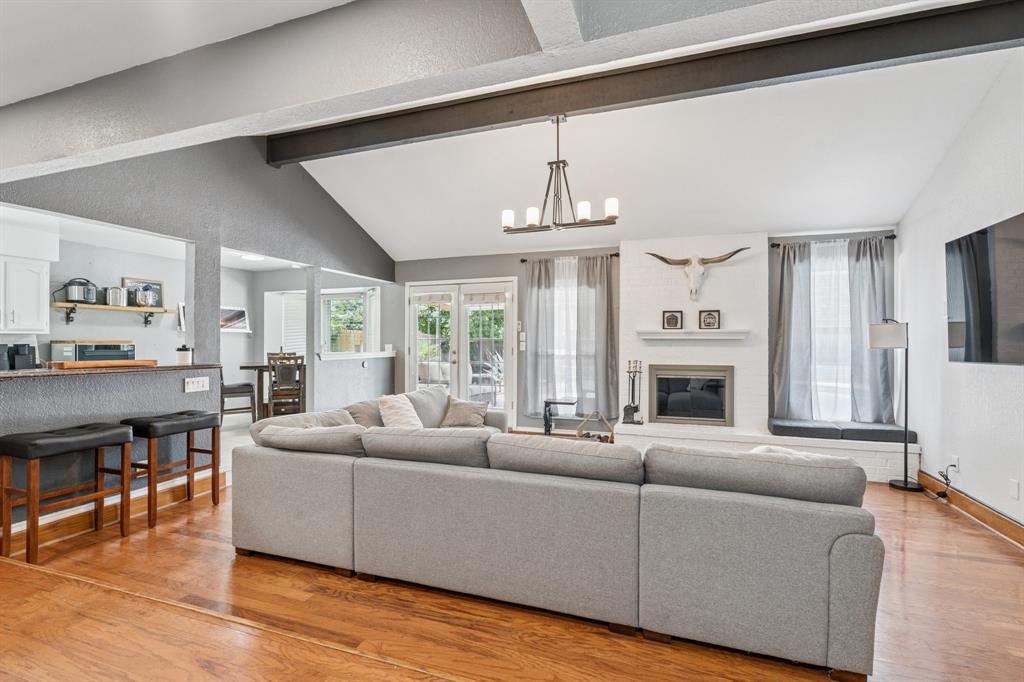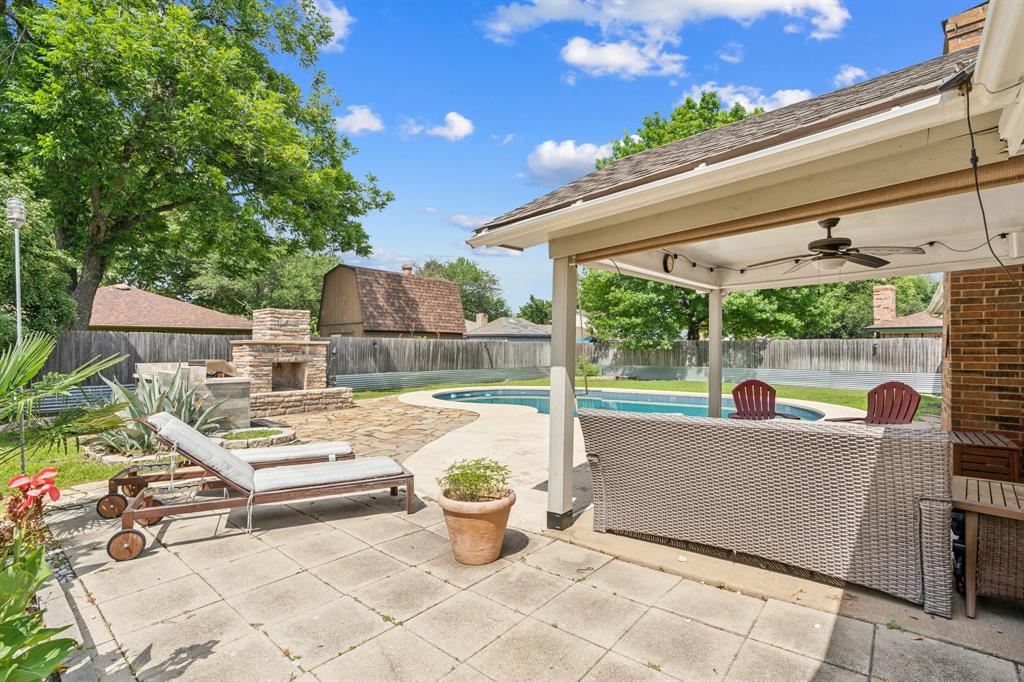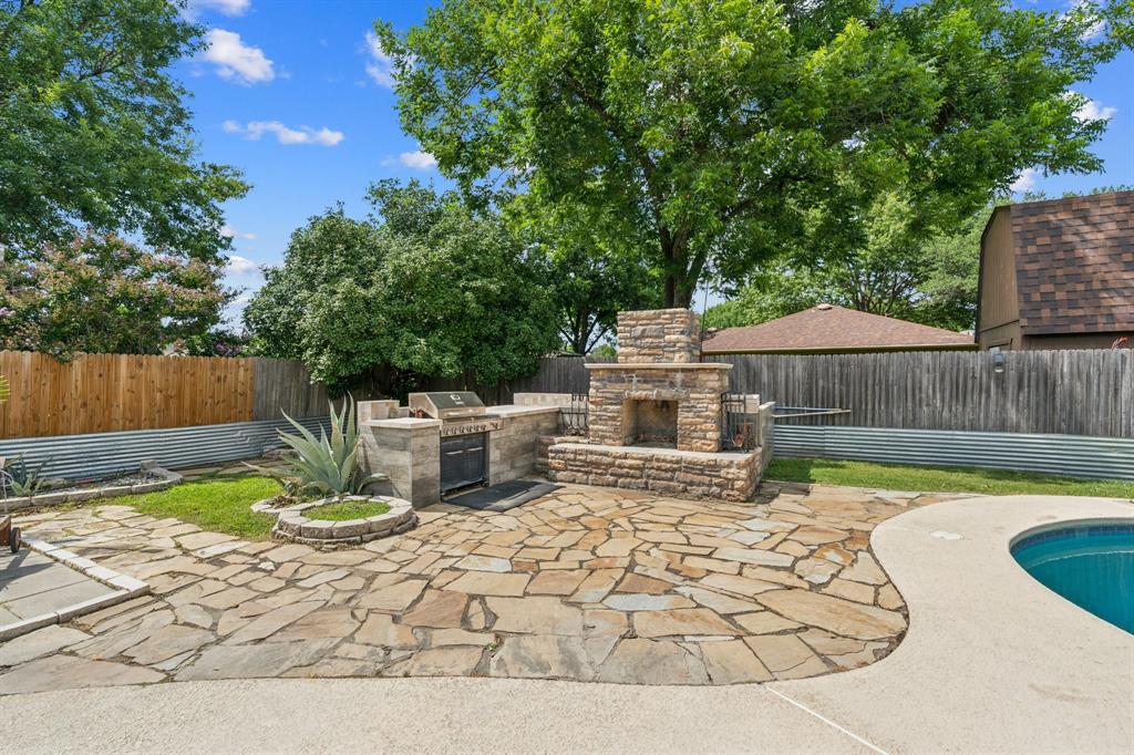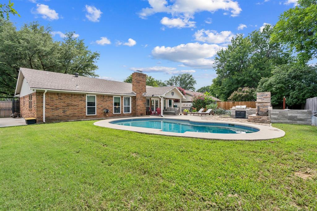 Impeccably maintained & thoughtfully updated, this charming 3-bedroom, 2-bath residence with a beautiful swimming pool & oversized backyard, offers both comfort & functionality in a prime location with no HOA. The spacious living room features updated lighting, hardwood floorings, a woodburning fireplace with a classic mantle, & an extended hearth—ideal for relaxed gatherings. A formal dining area & a cheerful breakfast room provide flexible dining options. The kitchen is appointed w-white cabinetry, recently updated stainless steel appliances, Whirlpool 5-burner smooth surface cooktop, & reverse osmosis at the sink. The Samsung refrigerator conveys w-an acceptable offer. Just off the kitchen, utility room includes a pantry w-pull-out drawers, LG front-loading washer & dryer that can stay with acceptable offer, and a custom-built folding counter. The private primary suite overlooks the backyard & boasts an ensuite bath with His & Hers separate showers, dual vanities, and a generous walk-in closet. Two spacious secondary bedrooms share a full hall bath, which has been recently updated with a framed mirror, modern black fixture, and black faucet. One secondary bedroom features a sliding barn door over the closet for added character. The expansive backyard is an entertainer’s dream, complete with a large in-ground pool, a stone woodburning fireplace, a built-in stainless steel propane grill, and lush flower gardens in all directions. A covered patio provides the perfect setting for outdoor dining or relaxation. Additional highlights include a backyard storage shed and extra parking for a small boat or trailer. Tri-Fuel portable generator to convey with home! Recent updates include dishwasher, range, toilets in both baths, pool pump motor & WiFi pool pump controller. Conveniently located near premier dining and retail in the Alliance area and just minutes from The Golf Club at Fossil Creek, with easy access to I-35W for a seamless commute to Fort Worth or DFW Airport.