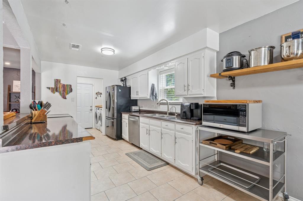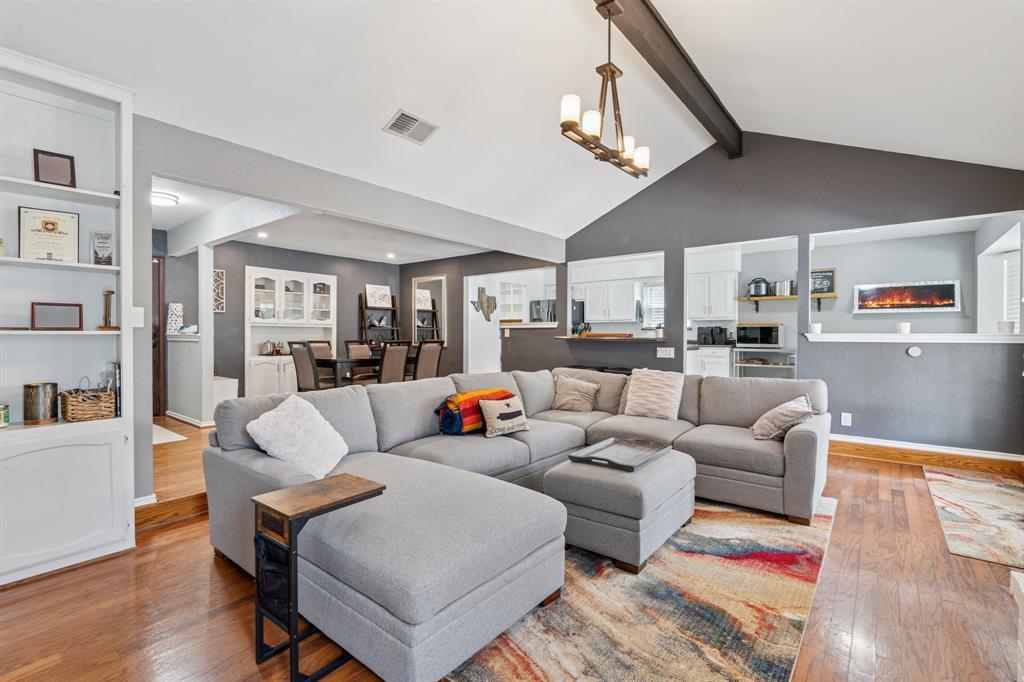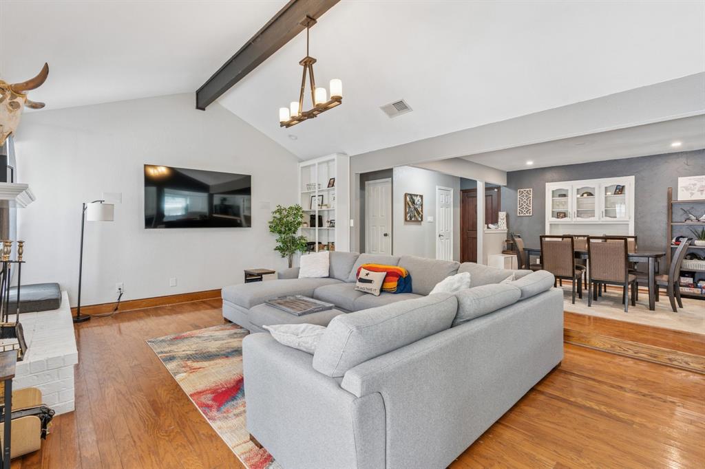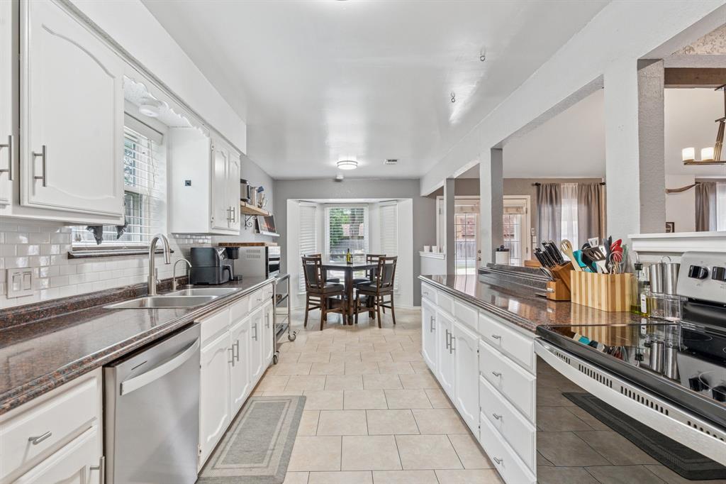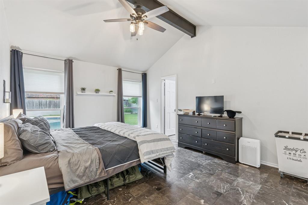 Impeccably maintained & thoughtfully updated, this charming 3-bedroom, 2-bath residence with a beautiful swimming pool & oversized backyard, offers both comfort & functionality in a prime location with no HOA. The spacious living room features updated lighting, hardwood floorings, a woodburning fireplace with a classic mantle, & an extended hearth—ideal for relaxed gatherings. A formal dining area & a cheerful breakfast room provide flexible dining options. The kitchen is appointed w-white cabinetry, recently updated stainless steel appliances, Whirlpool 5-burner smooth surface cooktop, & reverse osmosis at the sink. The Samsung refrigerator conveys w-an acceptable offer. Just off the kitchen, utility room includes a pantry w-pull-out drawers, LG front-loading washer & dryer that can stay with acceptable offer, and a custom-built folding counter. The private primary suite overlooks the backyard & boasts an ensuite bath with His & Hers separate showers, dual vanities, and a generous walk-in closet. Two spacious secondary bedrooms share a full hall bath, which has been recently updated with a framed mirror, modern black fixture, and black faucet. One secondary bedroom features a sliding barn door over the closet for added character. The expansive backyard is an entertainer’s dream, complete with a large in-ground pool, a stone woodburning fireplace, a built-in stainless steel propane grill, and lush flower gardens in all directions. A covered patio provides the perfect setting for outdoor dining or relaxation. Additional highlights include a backyard storage shed and extra parking for a small boat or trailer. Tri-Fuel portable generator to convey with home! Recent updates include dishwasher, range, toilets in both baths, pool pump motor & WiFi pool pump controller. Conveniently located near premier dining and retail in the Alliance area and just minutes from The Golf Club at Fossil Creek, with easy access to I-35W for a seamless commute to Fort Worth or DFW Airport.