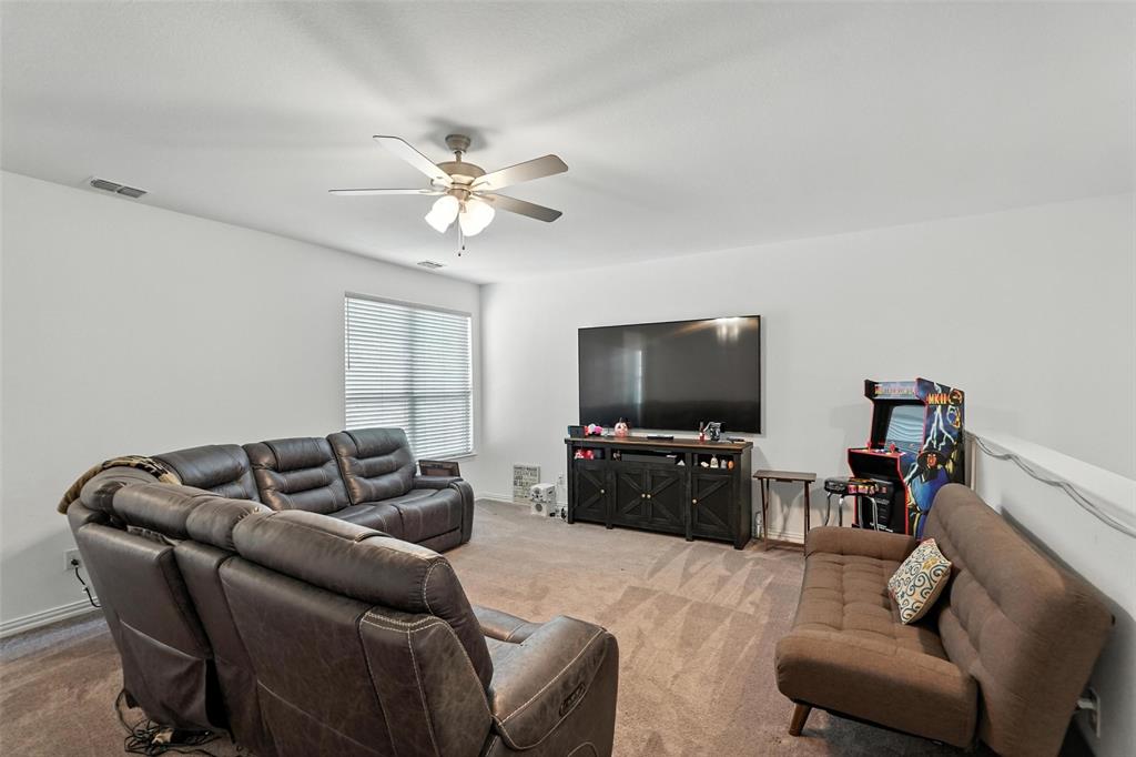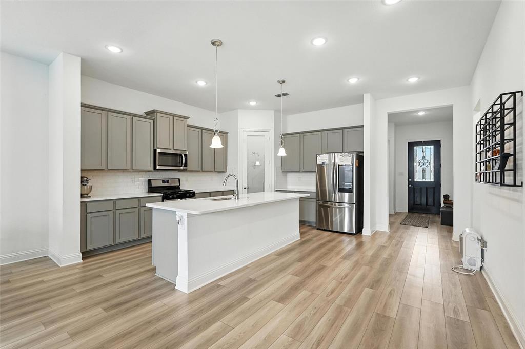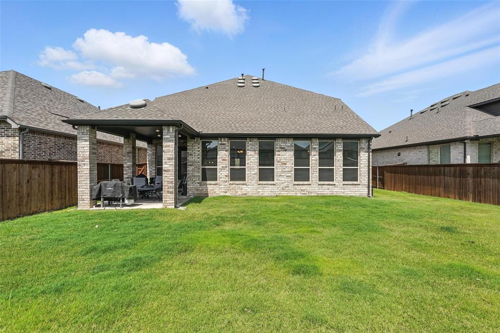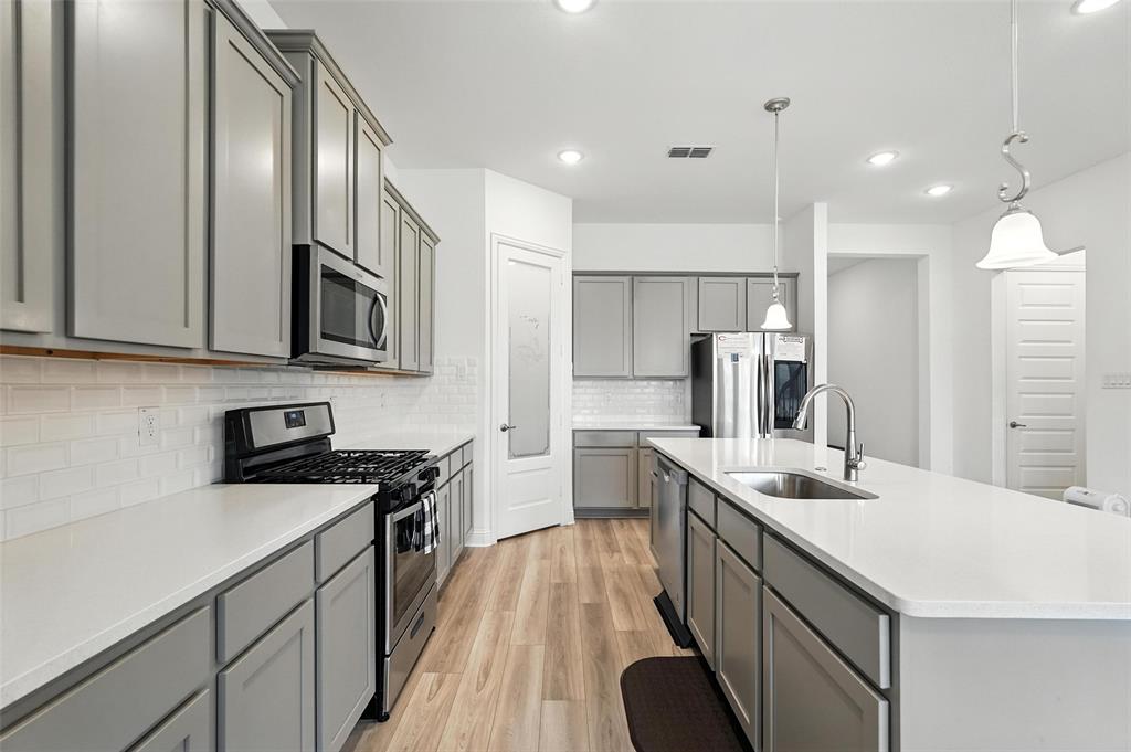 Welcome to this stunning 6-bedroom, 4.5-bath home in the heart of Celina, offering modern comfort, thoughtful design, and ample space. Built in 2021, this two-story residence features a beautiful brick and stone exterior with exceptional curb appeal. Inside, you'll find an open-concept layout with a chef’s kitchen showcasing quartz countertops, a large center island, stainless steel appliances, subway tile backsplash, and sleek gray cabinetry. The kitchen flows into the bright living and dining areas—perfect for entertaining or family gatherings. The main floor offers a spacious primary suite with a luxurious ensuite bath with dual vanities and walk-in closet. There is also a versatile 6th bedroom currently used as a home office—ideal for remote work or study. Upstairs, you'll find four generously sized bedrooms, including one with a private ensuite bath, perfect for guests or multigenerational living. A large game room provides a flexible space for media, play, or lounging. Additional features include luxury vinyl plank flooring, plush carpet in the living area, a two-car garage, extended driveway, and a covered entryway. Enjoy life in a friendly neighborhood with access to excellent schools, shopping, dining, and major highways. This move-in-ready home blends space, style, and functionality—schedule your private showing today!