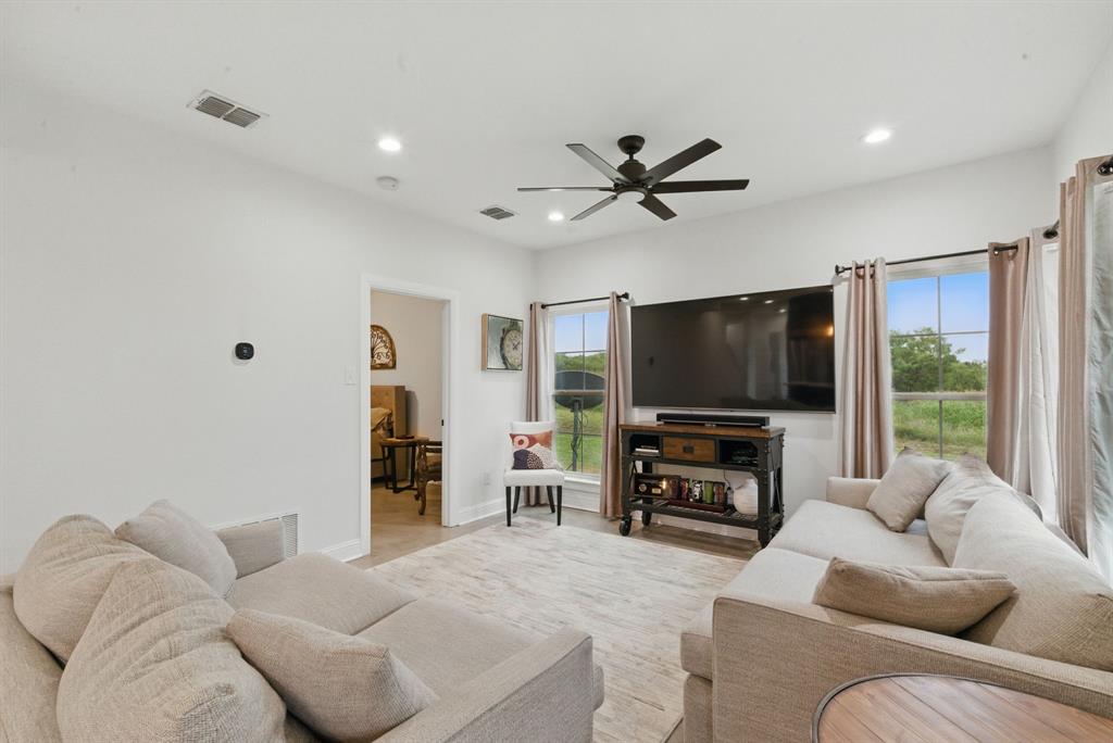 Enjoy the large back patio, ideal for relaxing or entertaining guests. A 30x30 detached, air-conditioned garage or shop with roll-up doors and an RV hook-up adds great functionality and versatility, whether for vehicles, a workshop, or extra storage.