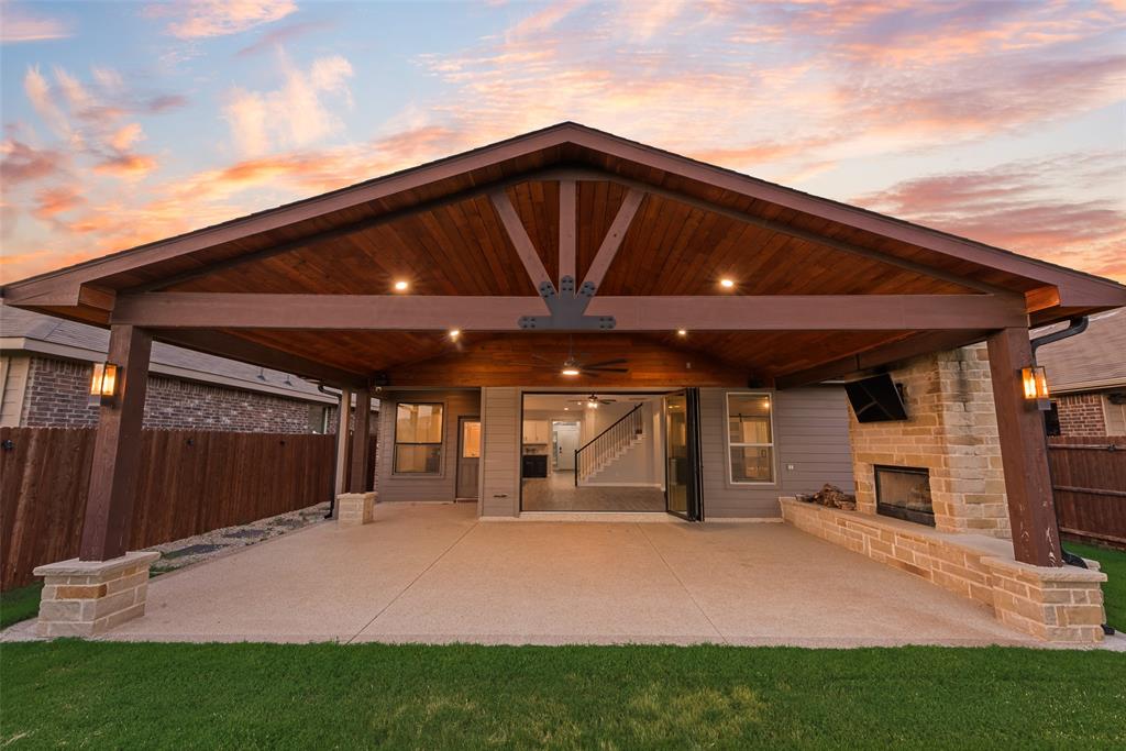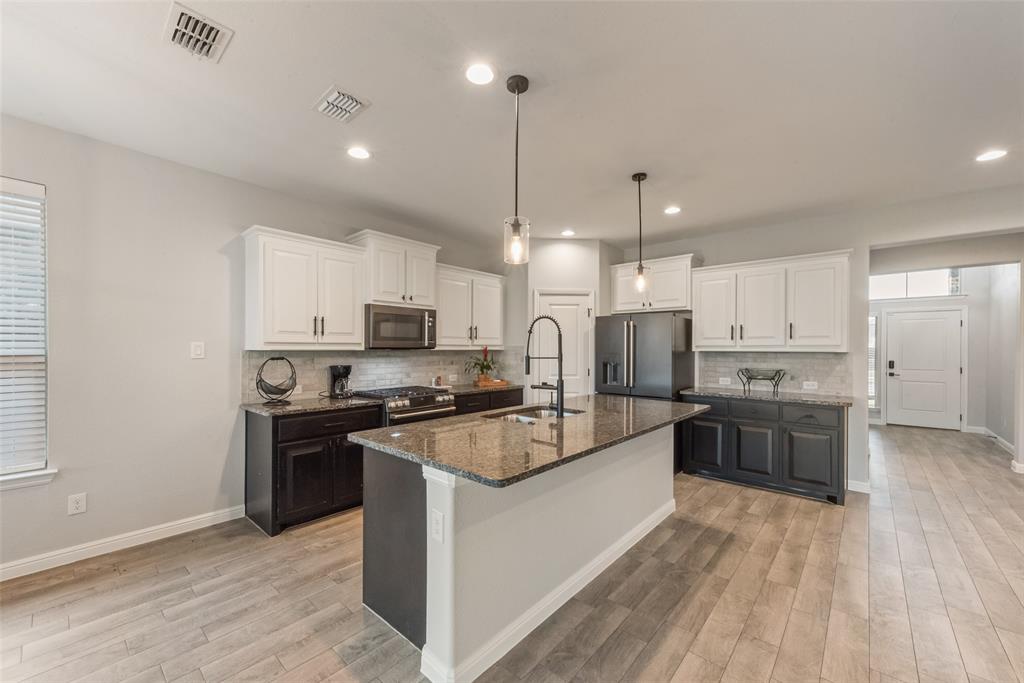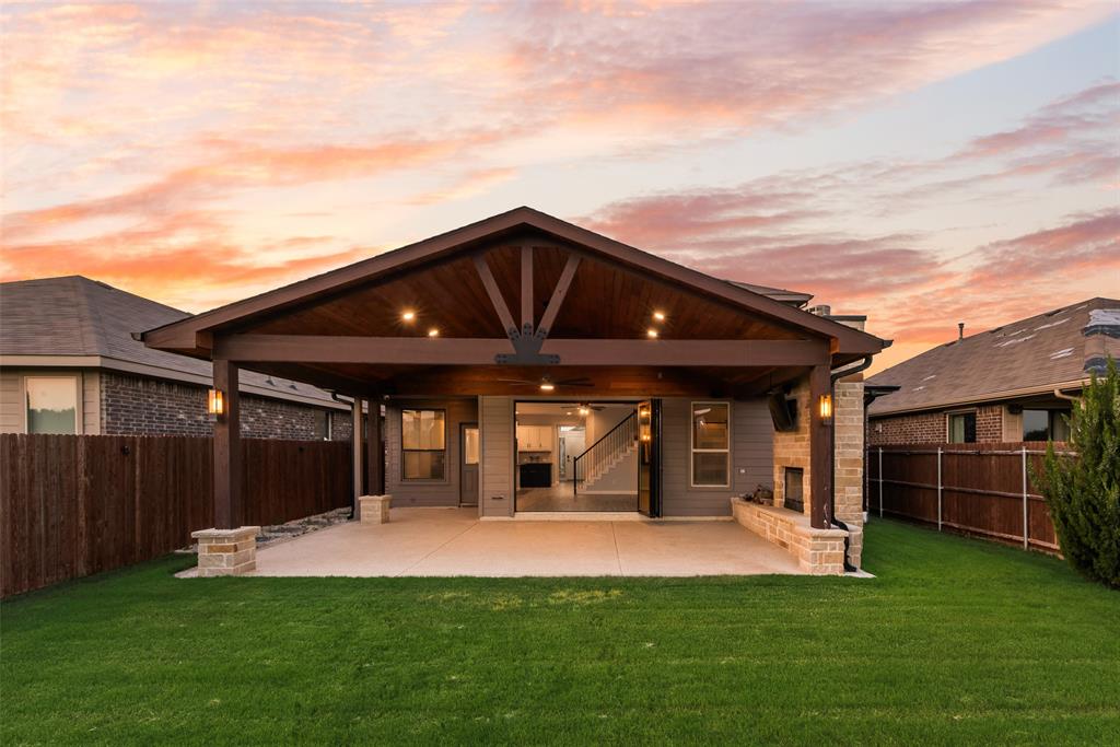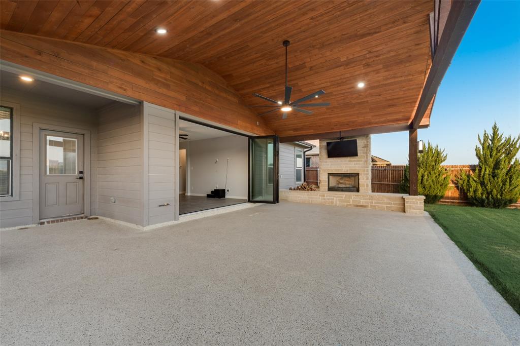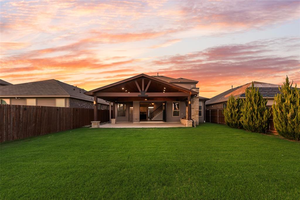 Relocation sale—seller never moved in after purchase due to a job transfer. Interior just received brand-new paint throughout and all new carpet, so you get the fresh, move-in-ready feel without the wait. Set on a quiet cul-de-sac in the master-planned Trails of Elizabeth Creek (Northwest ISD with on-site elementary), this 2020 D.R. Horton two-story delivers privacy, views, and flexible space with no rear neighbors and a greenbelt where deer roam wild. Inside enjoy 2,820 sq ft, 4 bedrooms + flexible 5th bedroom (no closet-ideal hobby-media-2nd office), 3.5 baths, dedicated office, game room, media pre-wired. The open chef’s kitchen—granite counters, gas range, stainless appliances, tile backsplash, and a large seating island—flows into dining and living for effortless entertaining. Signature highlight: three panoramic folding glass doors erase the line between indoors and out, opening to a cedar-covered patio with stone fireplace, epoxy flooring, and a custom retractable screen—perfect for coffee at sunrise, game-day gatherings, or sunset dinners overlooking the trees. The professionally landscaped, fully irrigated yard is party-ready and future-pool friendly. The main-floor primary suite provides a quiet retreat with dual sinks, an oversized shower, soaking tub, and walk-in closet. Practical upgrades include 16-SEER HVAC, tankless water heater, full smart-home system, exterior security cameras, and an epoxy-floored garage with ceiling storage racks. The builder’s structural transferable warranty remains in effect for added peace of mind. Community perks: resort-style pool with lazy river, clubhouse, playground, and nearby city park—all a short walk away. Minutes to I-35W & 114, Alliance Town Center, Texas Motor Speedway, Tanger Outlets, dining, and services. Fresh, flexible, and truly turn-key—schedule your private showing today.
