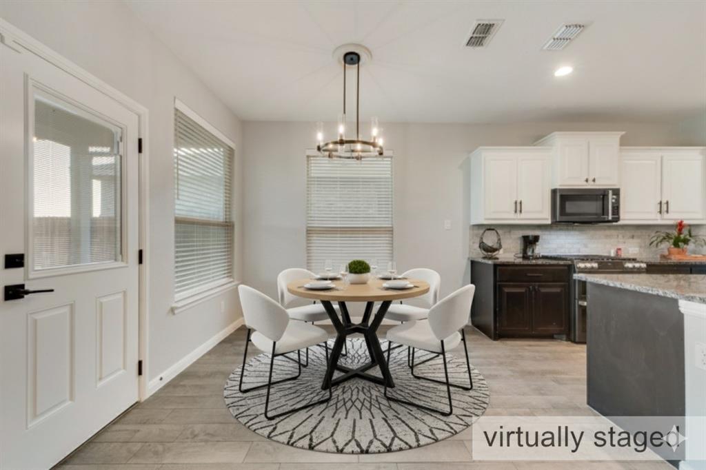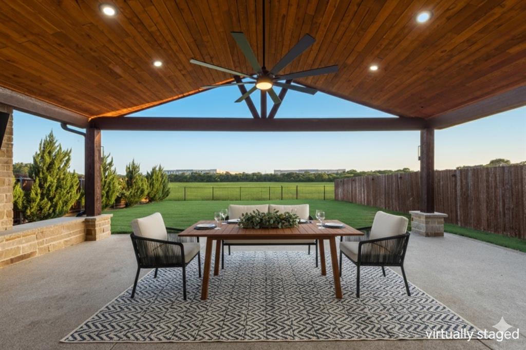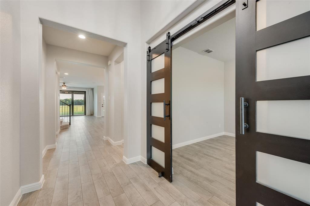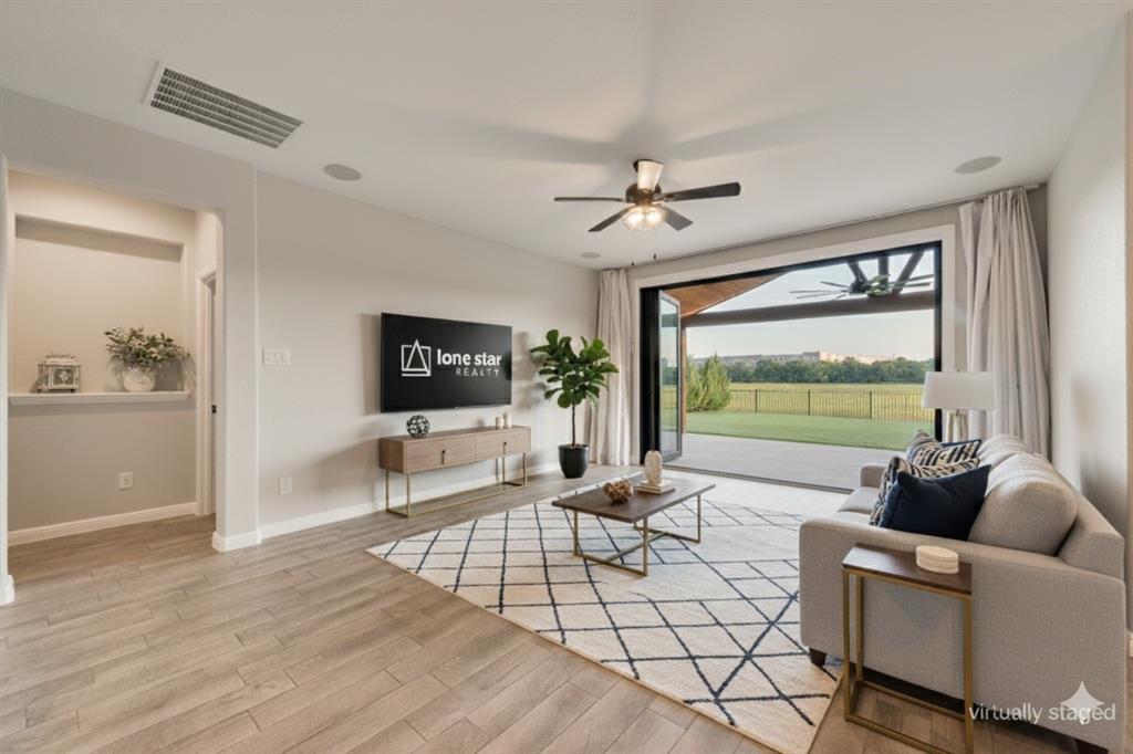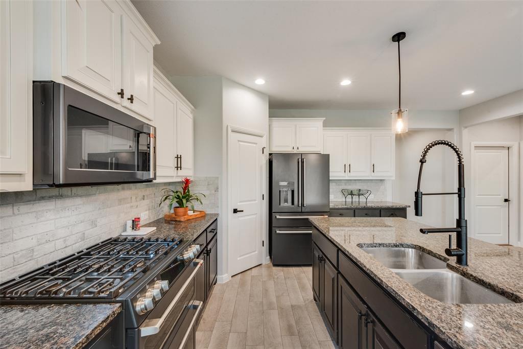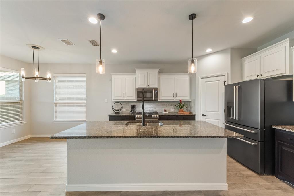 Relocation sale—seller never moved in after purchase due to a job transfer. Interior just received brand-new paint throughout and all new carpet, so you get the fresh, move-in-ready feel without the wait. Set on a quiet cul-de-sac in the master-planned Trails of Elizabeth Creek (Northwest ISD with on-site elementary), this 2020 D.R. Horton two-story delivers privacy, views, and flexible space with no rear neighbors and a greenbelt where deer roam wild. Inside enjoy 2,820 sq ft, 4 bedrooms + flexible 5th bedroom (no closet-ideal hobby-media-2nd office), 3.5 baths, dedicated office, game room, media pre-wired. The open chef’s kitchen—granite counters, gas range, stainless appliances, tile backsplash, and a large seating island—flows into dining and living for effortless entertaining. Signature highlight: three panoramic folding glass doors erase the line between indoors and out, opening to a cedar-covered patio with stone fireplace, epoxy flooring, and a custom retractable screen—perfect for coffee at sunrise, game-day gatherings, or sunset dinners overlooking the trees. The professionally landscaped, fully irrigated yard is party-ready and future-pool friendly. The main-floor primary suite provides a quiet retreat with dual sinks, an oversized shower, soaking tub, and walk-in closet. Practical upgrades include 16-SEER HVAC, tankless water heater, full smart-home system, exterior security cameras, and an epoxy-floored garage with ceiling storage racks. The builder’s structural transferable warranty remains in effect for added peace of mind. Community perks: resort-style pool with lazy river, clubhouse, playground, and nearby city park—all a short walk away. Minutes to I-35W & 114, Alliance Town Center, Texas Motor Speedway, Tanger Outlets, dining, and services. Fresh, flexible, and truly turn-key—schedule your private showing today.