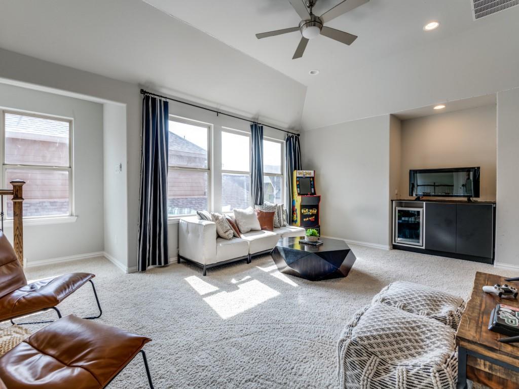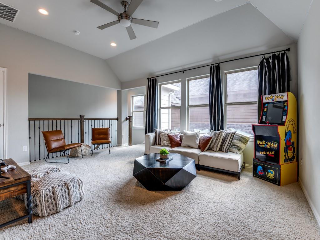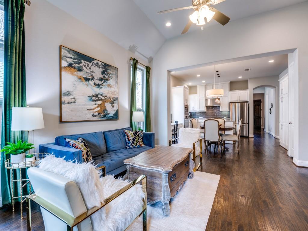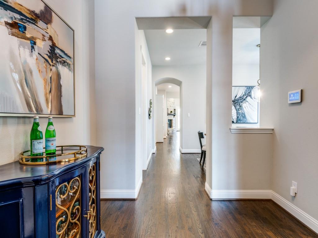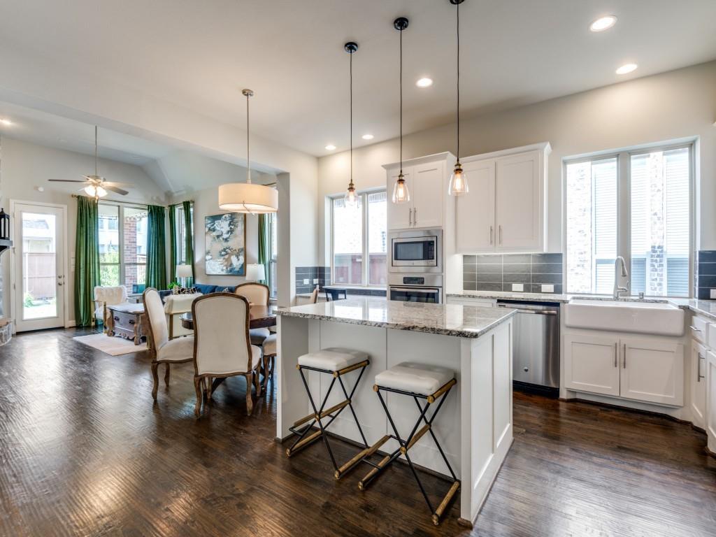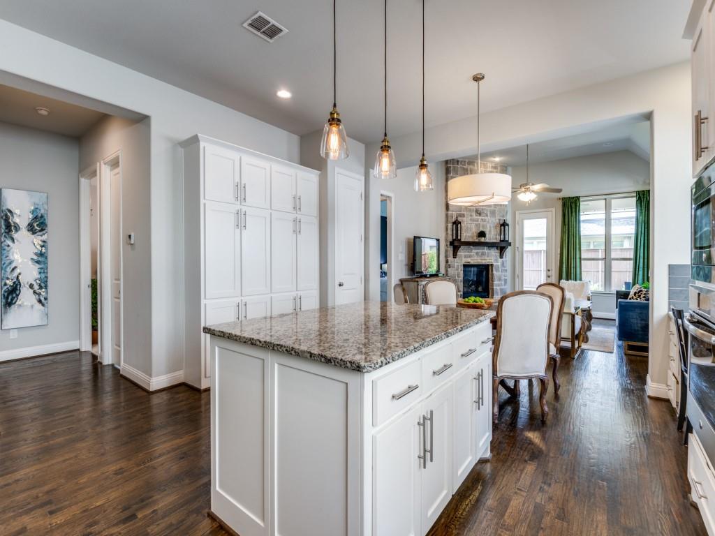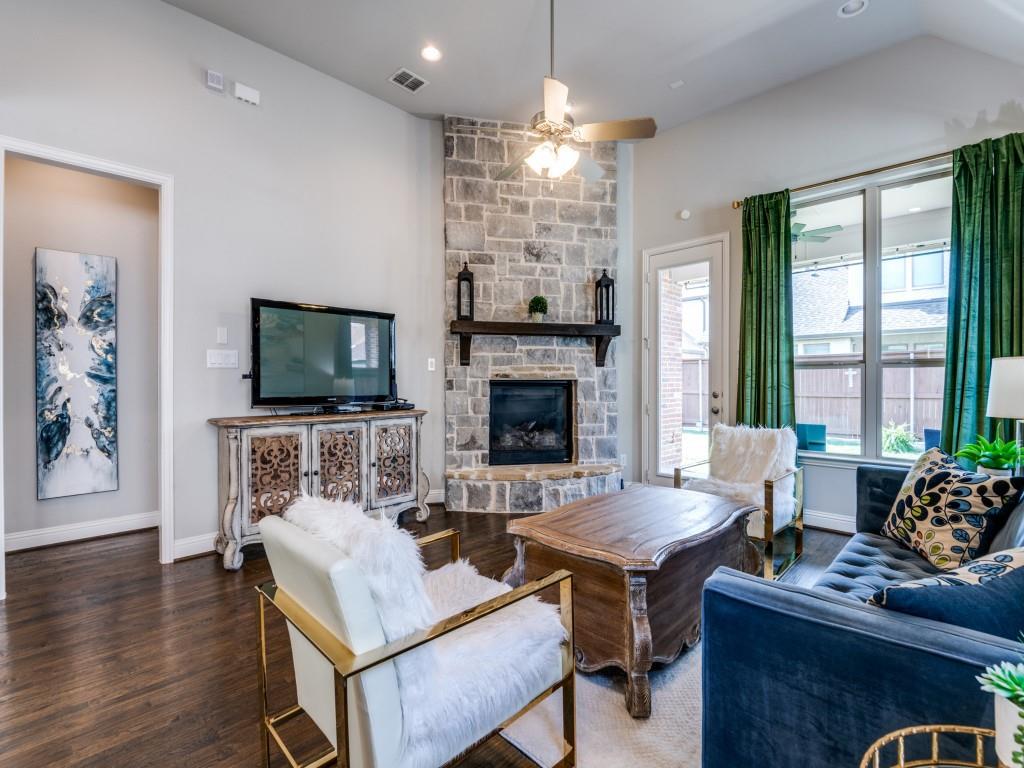Stunning two-story Highland Home in Light Farms community with amazing amenities. This home offers 4 bedrooms, 3.5 baths, kitchen, dining, an office,2 living areas and a 2-car garage. Upgraded modern colors and beautiful wood floors throughout. Chefs' kitchen with custom cabinetry, all stainless-steel appliances including a gas stove top, microwave, convection oven, island and granite counters. Spacious primary bedroom with high ceilings. Primary bath offering 2 sinks, soaking tub and walk in shower. Living area with a stone, gas log fireplace. Upstairs living area with additional bedroom, bath and walk out space to attic. Upstairs HVAC unit with hospital grade UV purifier. Lights Farms offers amazing amenities including 13+ miles of trails, parks, greenbelts, picnic spaces, playgrounds, fitness center, tennis courts, pickleball courts, sand volleyball, five amazing neighborhood pools including a junior Olympic pool, sandy beach and a restaurant, The Nook. Close to the North Dallas Tollway with shopping and restaurants. Prosper ISD