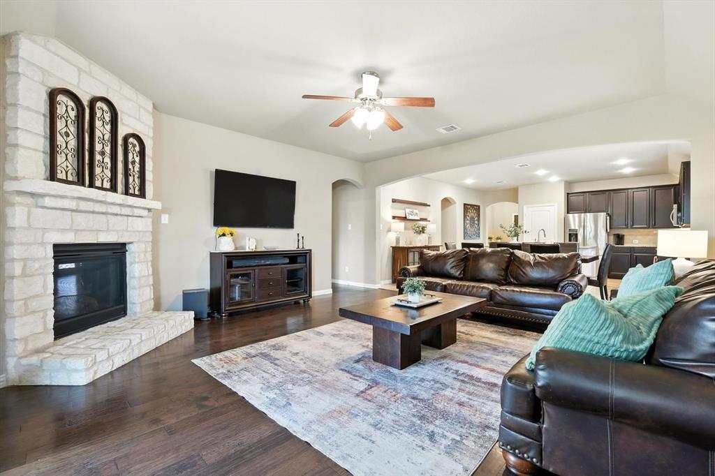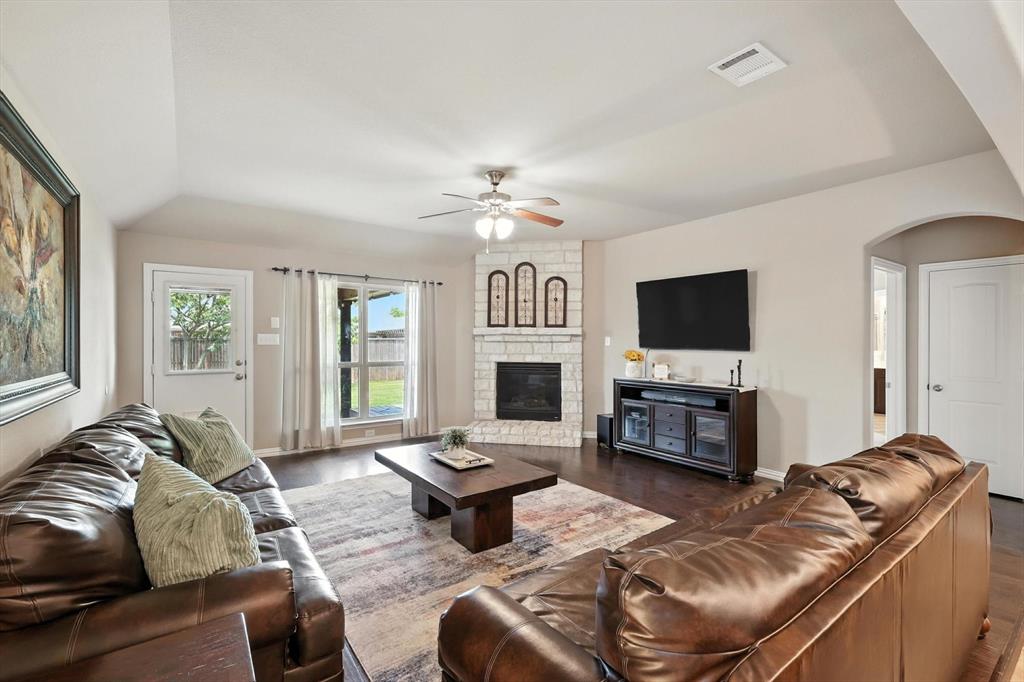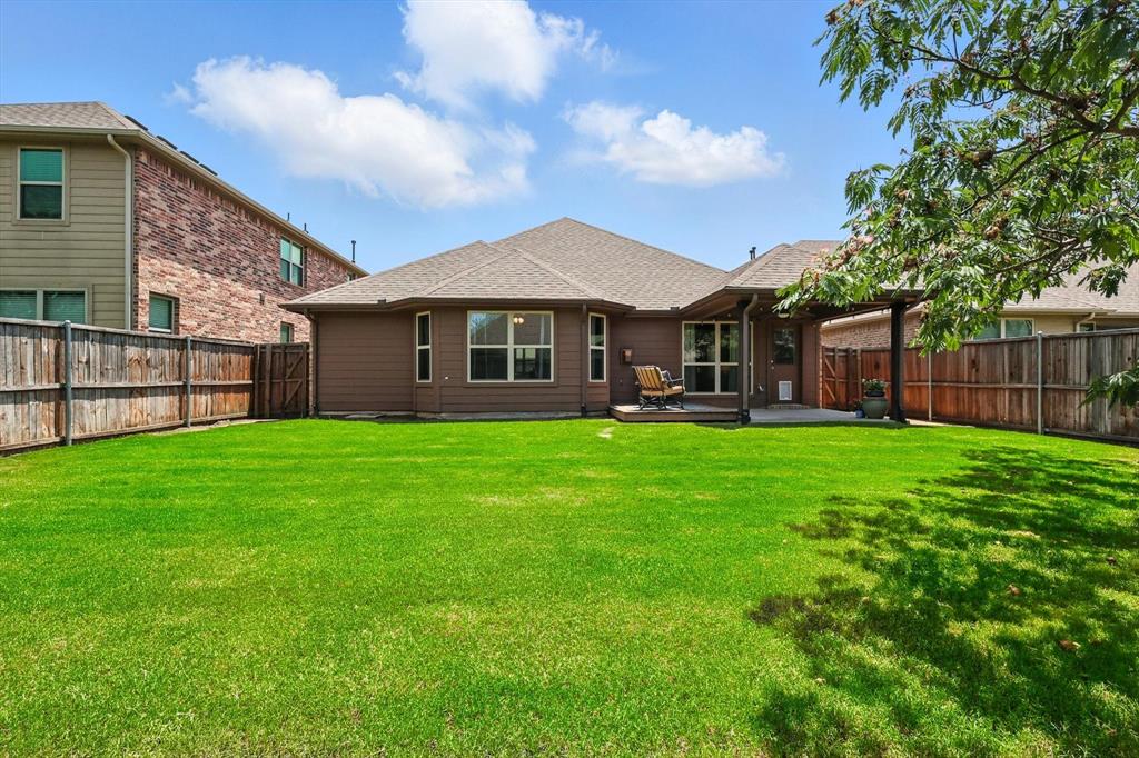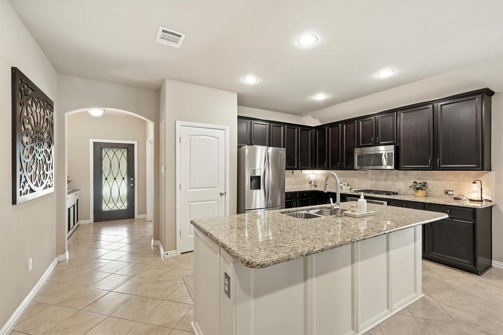 This thoughtfully designed 3-bedroom, 2-bath Beazer-built home offers 1,878 sq. ft. of comfortable living space, complete with an additional dedicated office space—ideal for remote work or quiet study. Loaded with smart upgrades and move-in-ready features, it’s the perfect blend of function and style. At the heart of the home is a remodeled kitchen island with all-new plumbing, seamlessly connecting to the dining area so family and guests can stay close while meals are prepared. The gas cooktop makes cooking a joy, and the open layout allows the chef to stay engaged with the rest of the home. After dinner, cozy up by the gas fireplace in the bright and inviting living room, where large rear-facing windows bathe the space in natural light. Step outside to your private backyard featuring a covered patio and extended Trex deck—perfect for relaxing or entertaining. A beautiful, mature mimosa tree provides shade and seasonal blooms, while a convenient doggie door makes life easier for your furry companions. Located near Lupe Garcia Elementary and the brand-new Rakow Middle School, this home sits within a vibrant master-planned community that offers miles of walking trails, neighborhood parks, a clubhouse event center, resort-style pools with splash pad, and a fully equipped community gym.