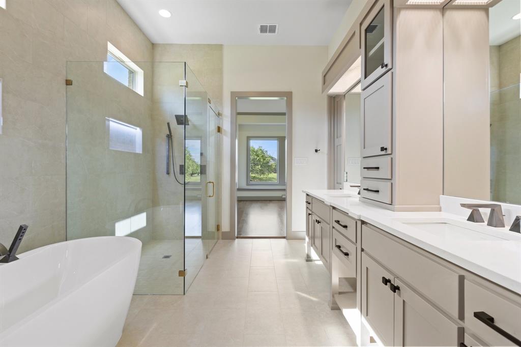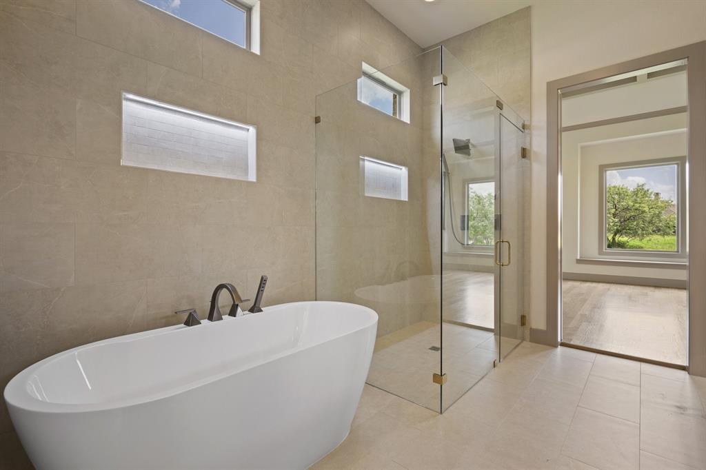 The main suite is a true retreat, complete with a cozy fireplace, a sitting area, and a bay window. Its spa-like en-suite bathroom boasts a free-standing tub, a glass-enclosed shower with dual excess and a hand held wand, dual vanities, and a spacious walk-in closet that connects to the laundry room and garage.