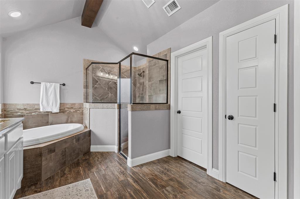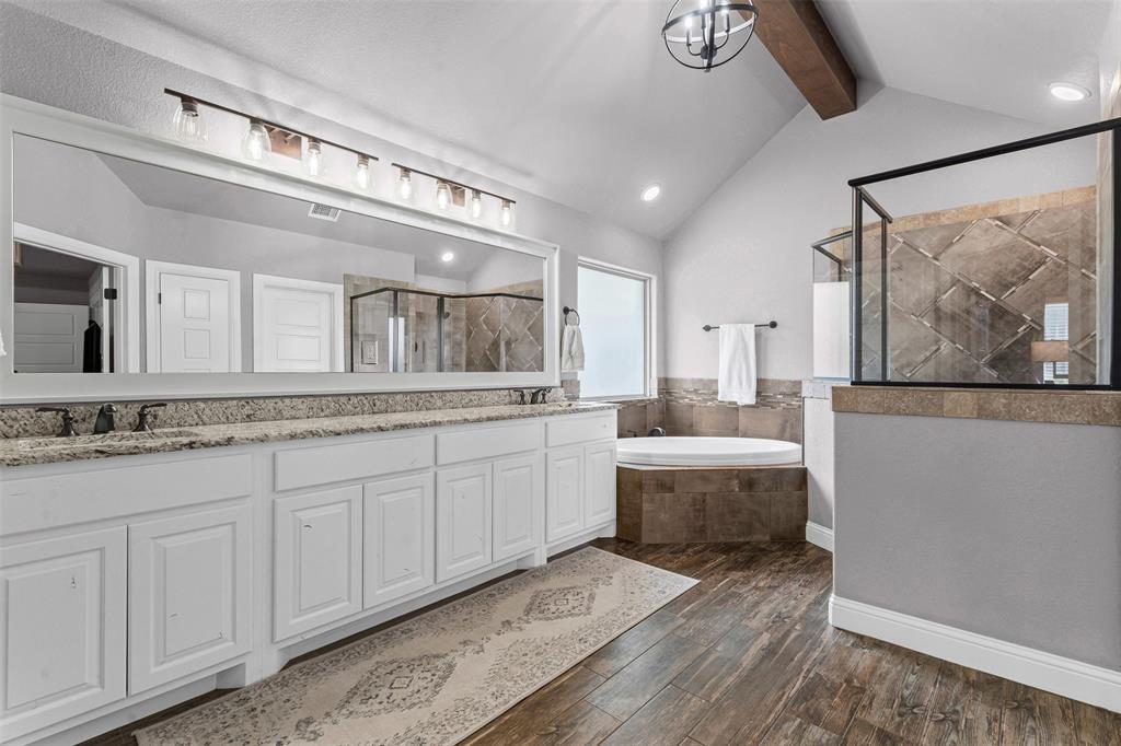 The primary suite is your personal sanctuary with a spa-inspired ensuite bathroom, complete with a soaking tub, separate walk-in shower, dual vanities, and a large walk-in closet. Three additional bedrooms offer flexibility for family & guests, this home also offers separate office space.