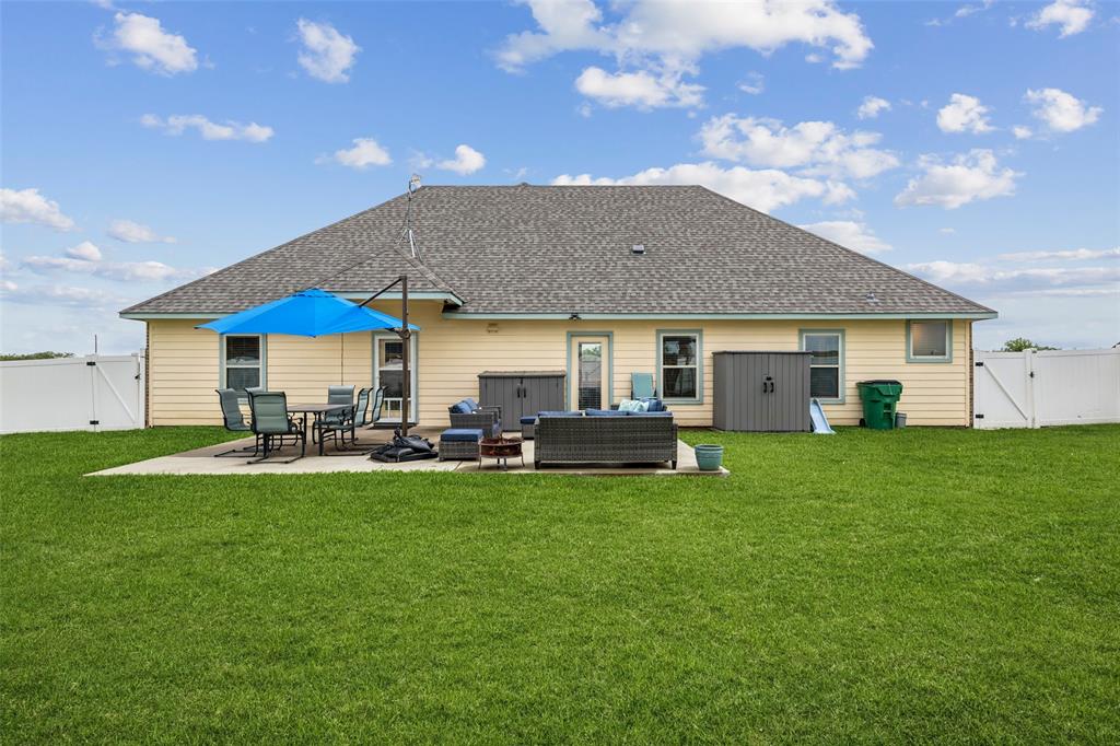 Located just outside the city limits with easy access to Terrell, Forney, and Rockwall, this charming 4-bedroom, 3-bathroom home sits on just over an acre. Designed with an open-concept layout, it offers the perfect blend of comfort and functionality. The heart of the home is a beautifully appointed kitchen featuring granite countertops, a U-shaped layout with built-in booth seating in the dining area, double ovens, and an open flow into the living room an ideal setup for entertaining guests. The spacious primary suite includes an ensuite bath with dual sinks, with separate vanities, a soaking tub, a separate shower, and a walk-in closet. Two secondary bedrooms are located on the main floor along with a full bath, while the second level features another bedroom, full bath, and a versatile game room—perfect for a private retreat. Enjoy the expansive backyard, featuring an extended patio, a white vinyl privacy fence for added seclusion, and plenty of space to create your dream outdoor oasis—whether it's a future swimming pool, garden, or both. Notable updates include the roof installed in April 2025 and a septic pump replaced in August 2023. Enjoy your own little peace and quiet with the convenience of city life not far away—schedule your showing today!