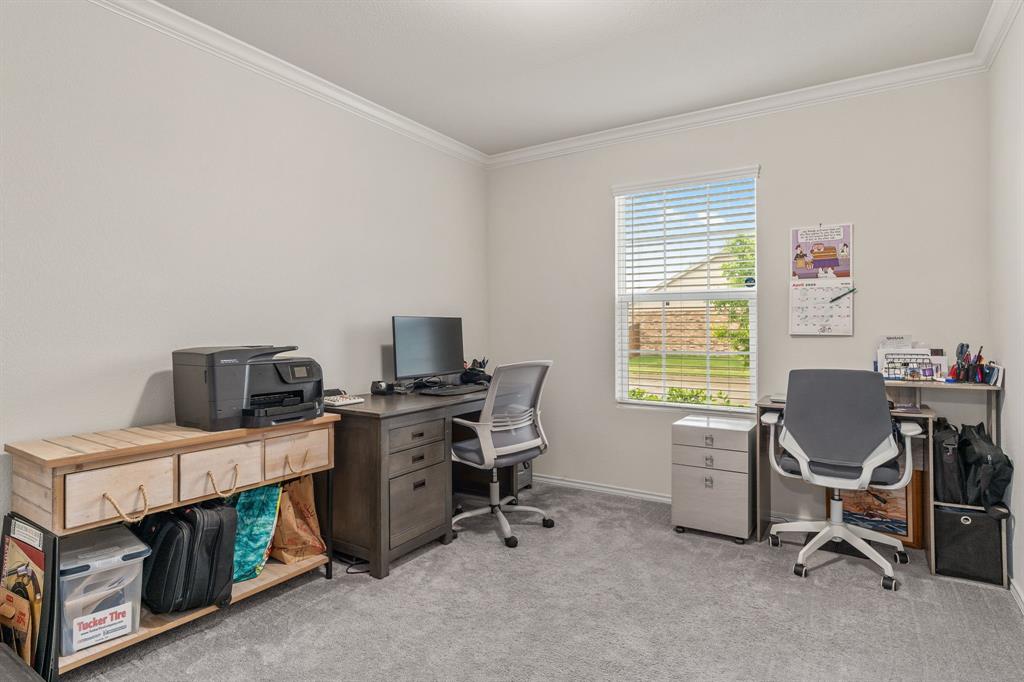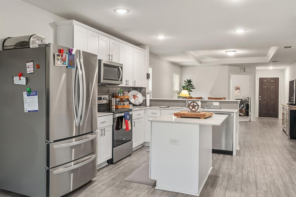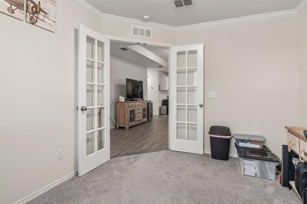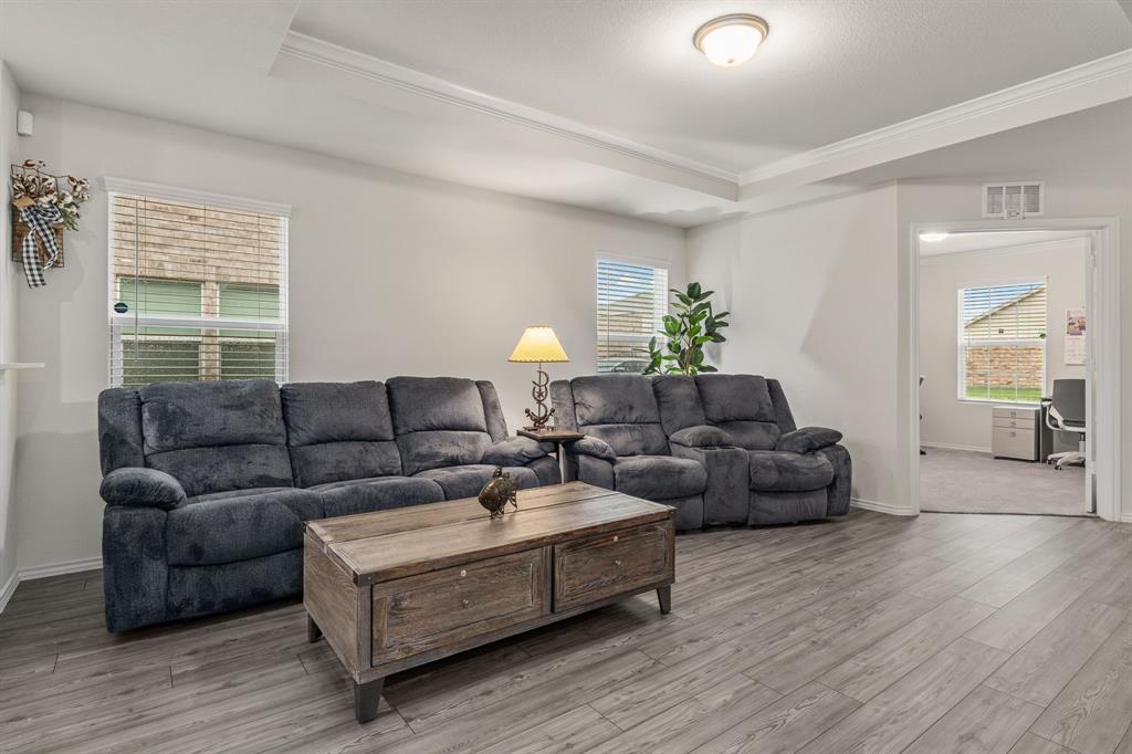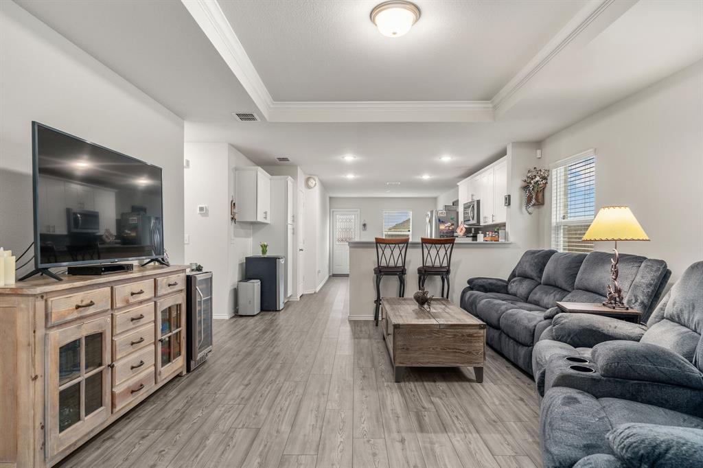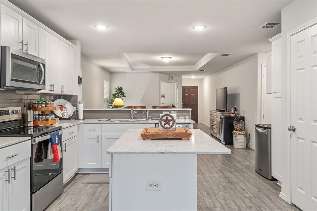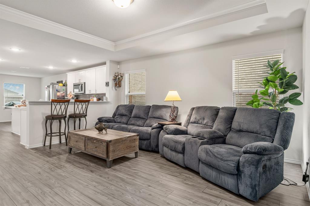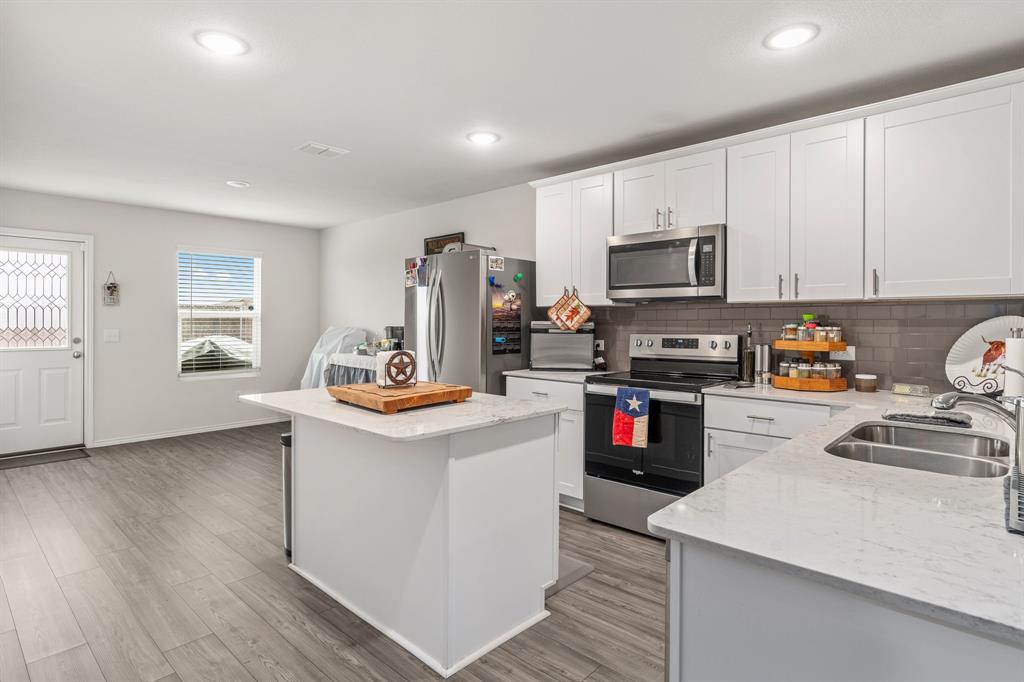 THIS HOME HAS AN ASSUMABLE VA LOAN AT 4.375%. You do not have to be a veteran to assume it. Either way, you can reduce your rate. Nestled in the heart of Crowley, Texas, this immaculate, single-story, 3-bedroom, 2-bathroom home offers modern comfort and style. Built in 2021, its 1,532 square feet have been meticulously maintained. The interior boasts an open floor plan with luxury vinyl plank flooring, recessed lighting, white cabinets in the kitchen, a kitchen island, quartz countertops, an ample-sized additional bedroom, and a study. This home is ideal for everyday living. With contemporary finishes and ample natural light, each room invites relaxation and warmth. Outside, a well-manicured yard makes for great curb appeal. This home embodies the essence of suburban living at its finest, promising a lifestyle of comfort and convenience.