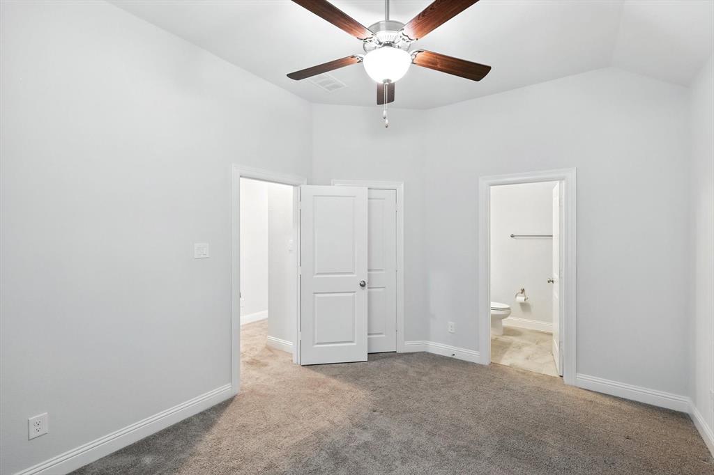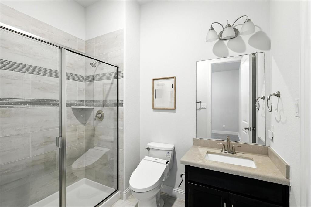 The thoughtfully designed layout includes a luxurious downstairs master suite with a spa-inspired bathroom and double walk-in closets, as well as a private guest bedroom with its own ensuite bathroom—ideal for visitors or multigenerational living.