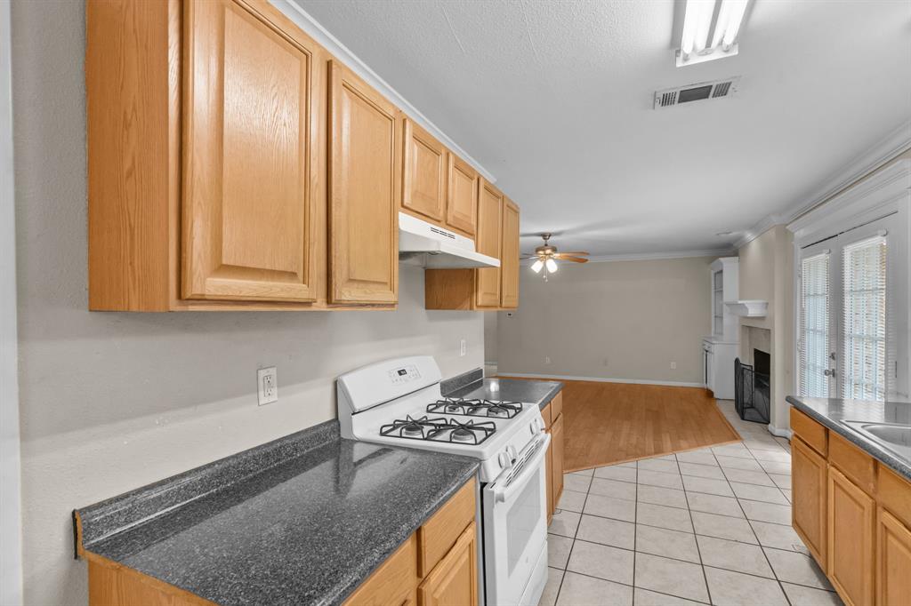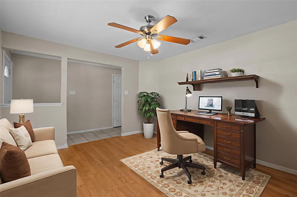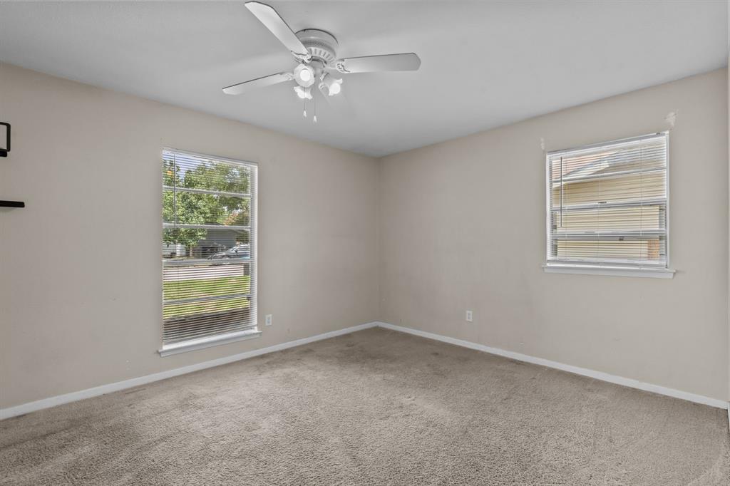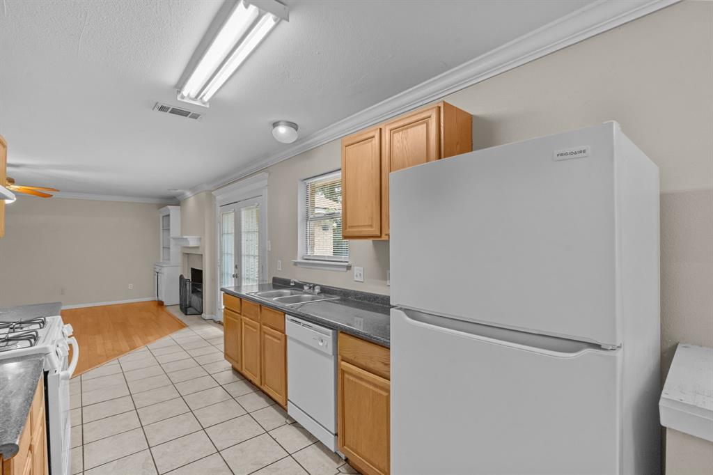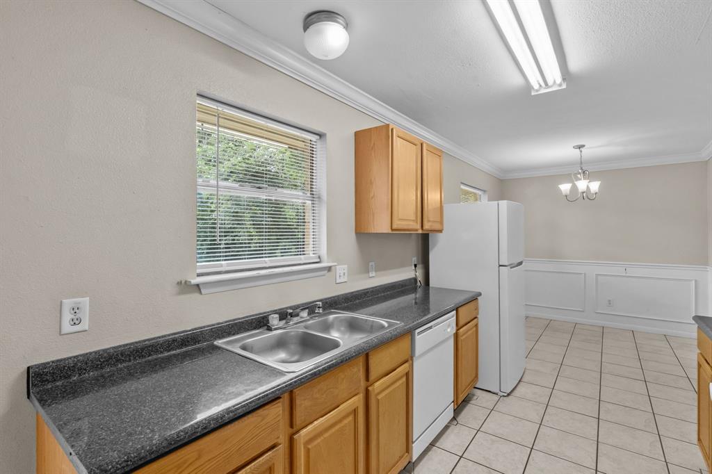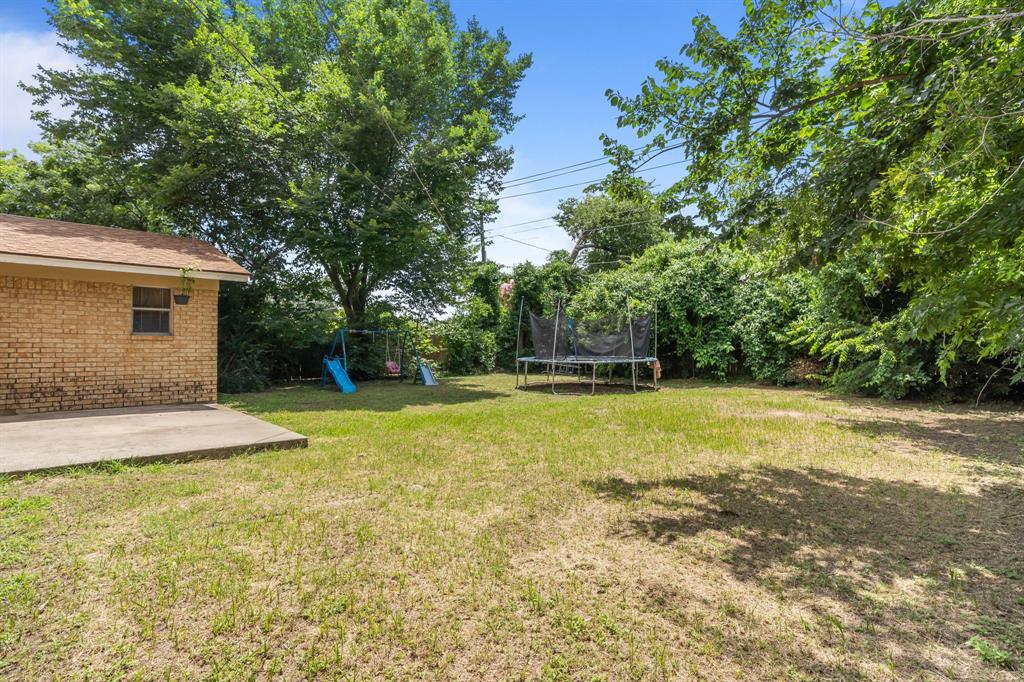 Tucked into a prime part of Fort Worth this 3 bedroom, 2 bathroom home sits on a spacious lot surrounded by mature trees and privacy. Offering quick and convenient access to I20, shopping, dining, and everyday essentials. A cozy front porch welcomes you in, and the flexible layout inside includes a front room that can be used as a home office or dining space.The kitchen opens to a comfortable living area complete with a wood burning fireplace and built-in shelving. The primary suite includes two closets, dual sinks, and a walk-in shower, while the secondary bathroom offers dual sinks and a tub tub shower combo. With a fully fenced backyard bordered by trees, this space offers privacy and plenty of space to create the outdoor oasis of your dreams. This adorable stone and brick home is ready for your personal touch in a location that’s hard to beat.