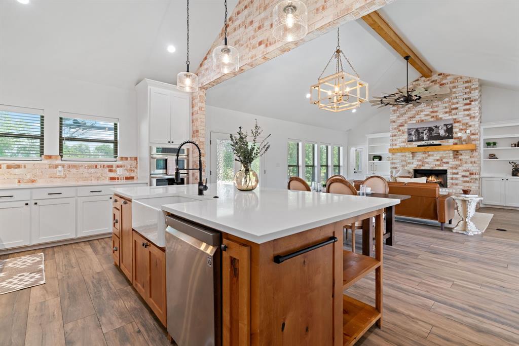 The property continues to show off with a spring-fed pond, enhancing the natural beauty of the land and allowing you to fish in your own backyard. Bring your toys with an unheard of 18 covered parking spaces! There is a 3,000 sq ft shop with an enclosed office, storage loft, and cabinets to make organization a breeze. The RV awning conveniently includes a 220V 50-amp RV hookup perfect for guests, multigenerational living, or your own recreational setup.
