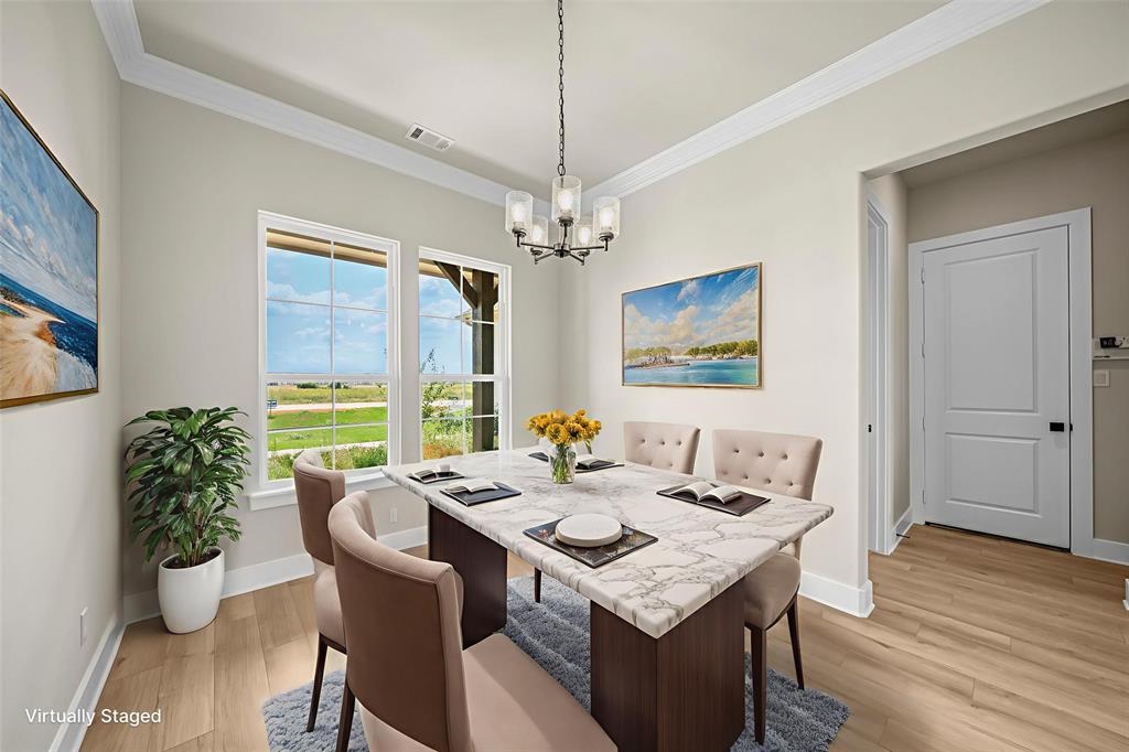 The 4-bedroom Colorado 2 offers a thoughtful 2,426 sq. ft. layout. From the entrance, you see the entire main living area, an open concept perfect for entertaining. The kitchen features a large center island with seating for four and a view of the family room fireplace. A formal dining room near the kitchen is ideal for special occasions or can be a playroom or living room. Across the foyer, a flex room can become a fifth bedroom. The owner's suite, located at the back under a tray ceiling, includes a bathroom with a soaking tub, step-in shower, dual vanities, and a private water closet, plus a spacious walk-in closet with wooden shelves. The three secondary bedrooms, two with walk-in closets, are in a suite-like area and share a second full bath. The Colorado 2 strikes a perfect balance between togetherness and privacy. This home will be zoned for Dixie Hansel Elementary which is currently under construction.
