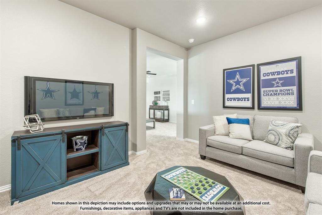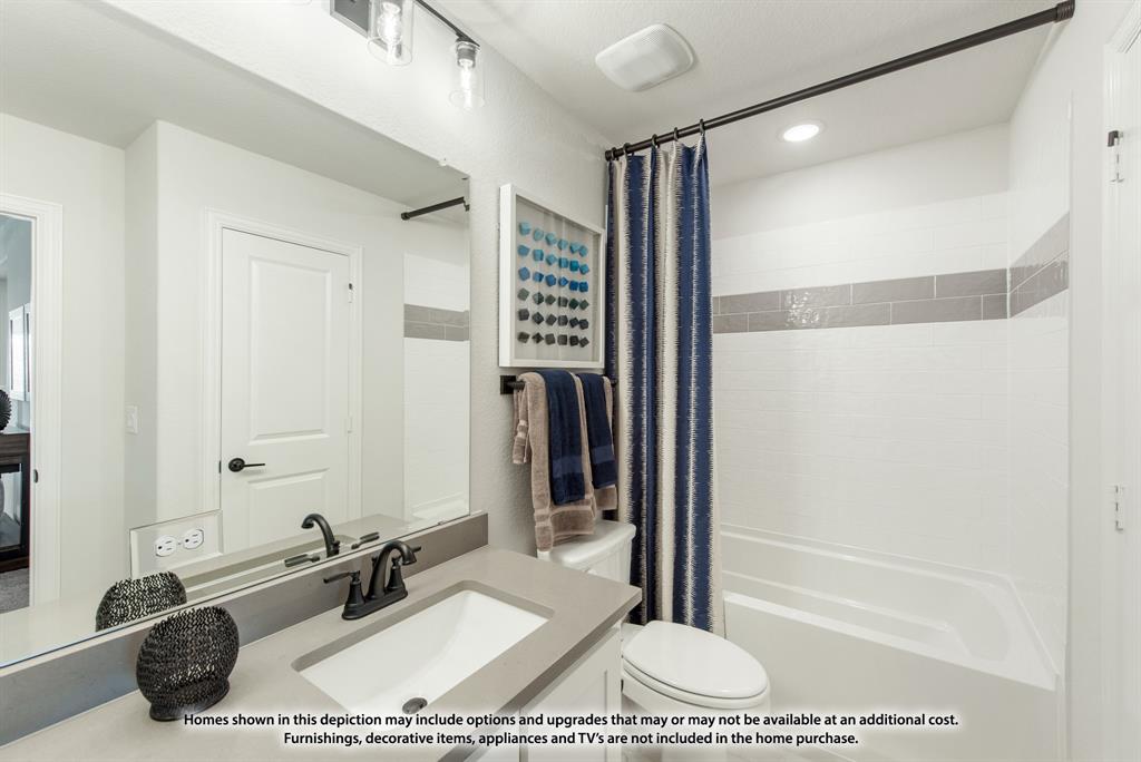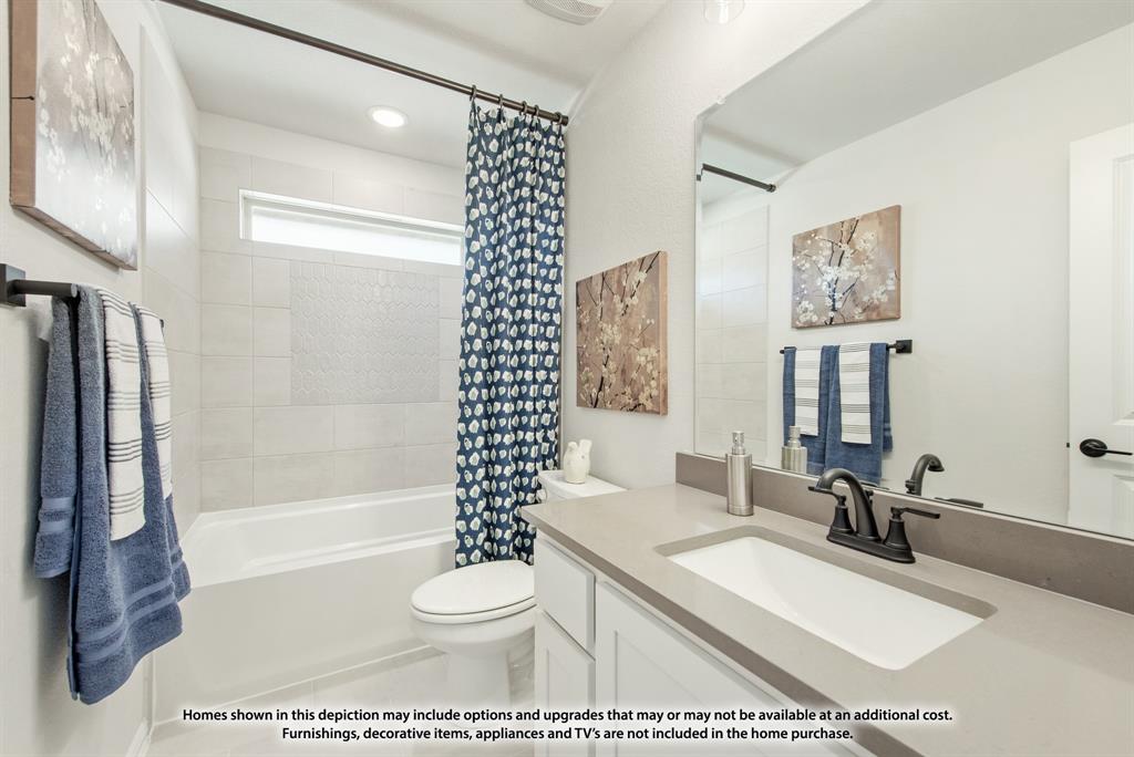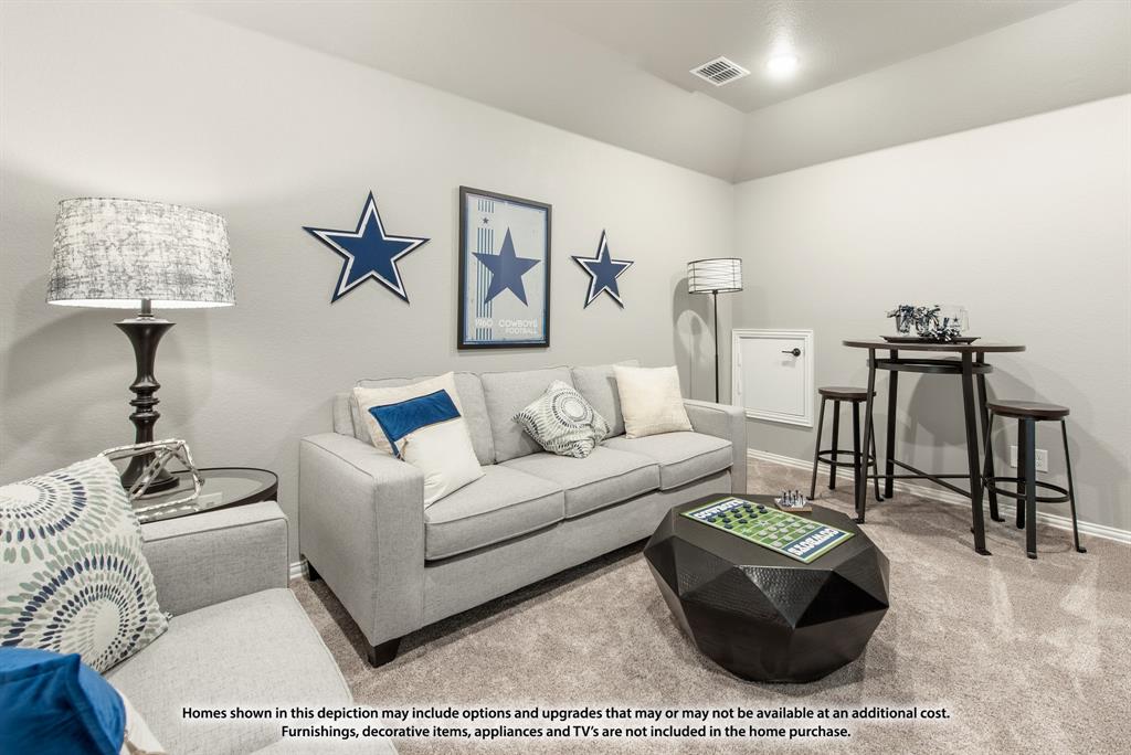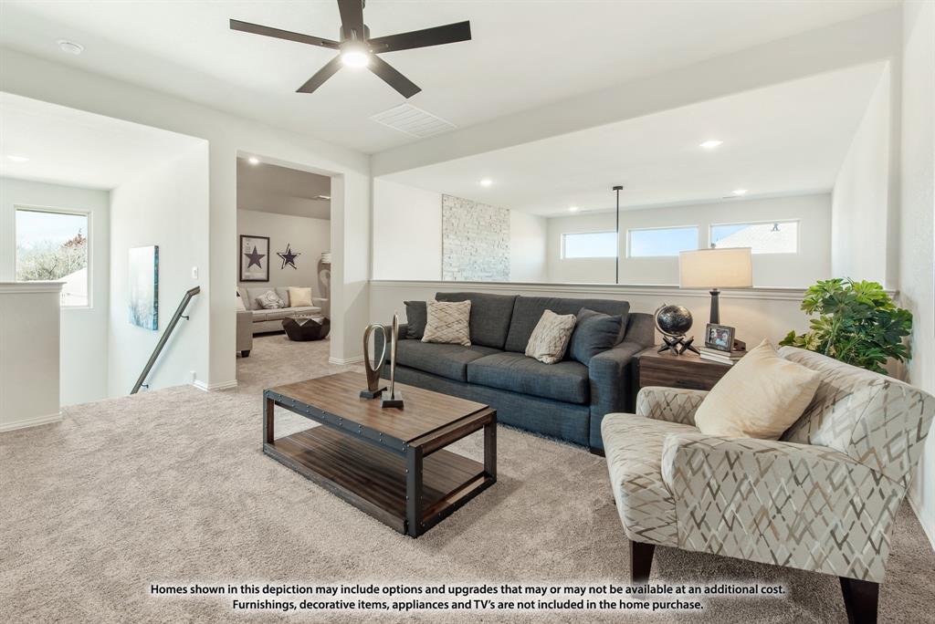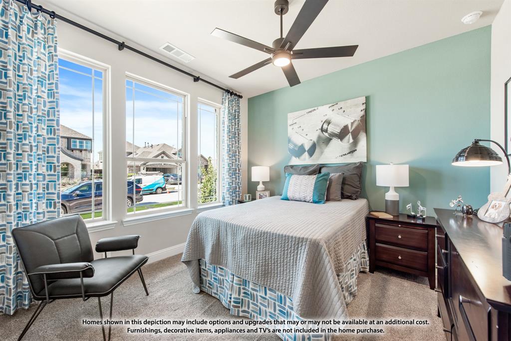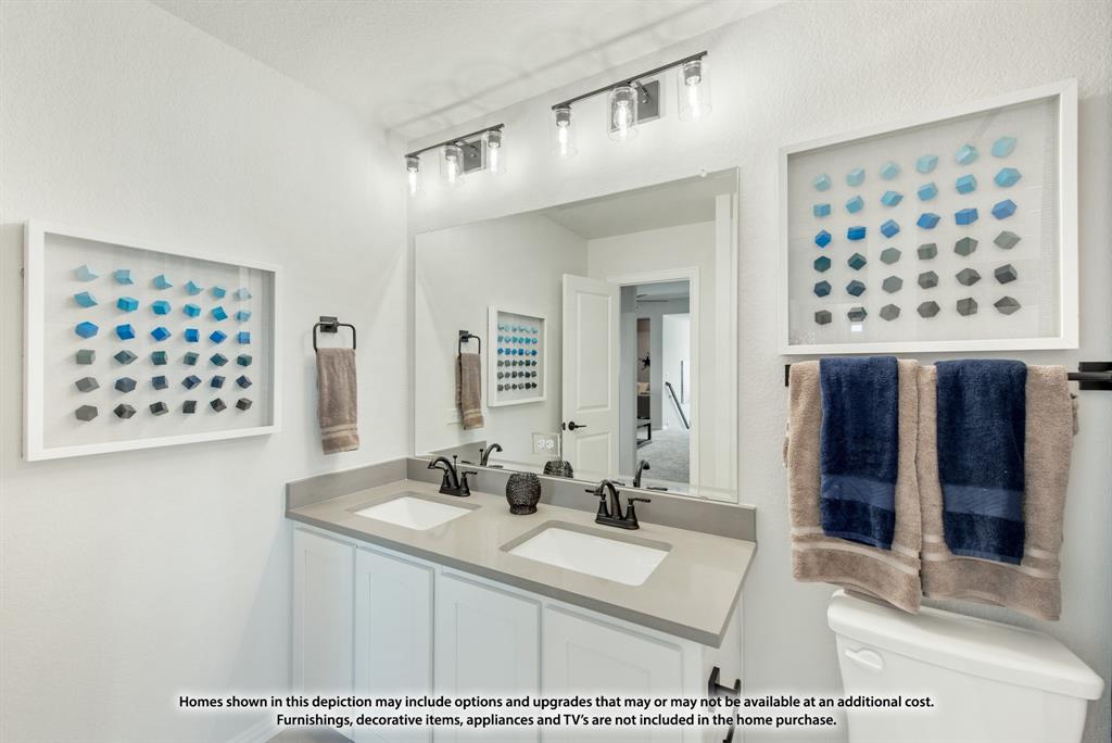 NEW! NEVER LIVED IN. August 2025 Move-In. Bloomfield's Violet IV is a contemporary floor plan that offers 5 bedrooms and 4 baths—each either directly connected or conveniently located just outside the bedrooms—along with a Media Room, Game Room, and a Covered Back Patio for ideal indoor-outdoor living on an oversized lot with a striking brick and stone facade. This thoughtfully designed home welcomes you with an upgraded 8' Front Door and continues the elevated aesthetic inside with 8' Interior Doors on the first floor, enhancing the wide foyer with tall ceilings, rich Level 6 Tile flooring, and a polished look carried throughout with Level 4 Granite countertops. Two bedrooms are located downstairs, offering flexibility for guests or multi-generational living, while a dedicated mud room adds everyday functionality. The connected Family Room and Kitchen are the heart of the home, featuring dramatic vaulted ceilings and a two-story ceiling with an overlook from the Game Room above, centered around a stunning ledgestone-to-ceiling Fireplace that brings warmth and elegance. The Deluxe Kitchen is a true showpiece, designed for both beauty and efficiency with sleek built-in stainless steel appliances, a gas cooktop, Granite counters, pot and pan drawers, a wood vent hood, and an oversized walk-in pantry. Additional thoughtful touches like a Smart Home System, blinds throughout, and gutters for year-round maintenance make this home move-in ready. Exterior uplights and enhanced lighting details highlight the curb appeal, while access to community amenities—including a park and playground—complete the experience. Call or visit Bloomfield at Eagle Glen today to learn more.