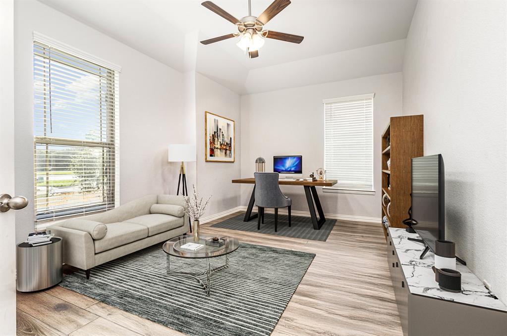 Lovingly maintained and ready for new owners, this 3-bedroom, 2.5-bath two-story home is sited on a large corner lot and offers a classic, functional layout designed for everyday living and entertaining alike. At the front of the home, a versatile office or den provides the perfect spot for remote work, hobbies, or a quiet retreat. The bright open-concept main living area features a chef-inspired kitchen with a large center island, ample counter space, and a seamless flow into the dining and living rooms—ideal for gatherings of any size. The generous primary suite includes a private ensuite bath, creating a peaceful retreat. Upstairs, a spacious media or game room loft with its own powder room offers the ultimate hangout zone. Outside, enjoy a private, fenced backyard with a covered patio—perfect for relaxing or entertaining year-round. Don’t miss this incredible opportunity to own a well-cared-for home on a standout corner lot! Discounted rate options and no lender fee future refinancing may be available for qualified buyers of this home