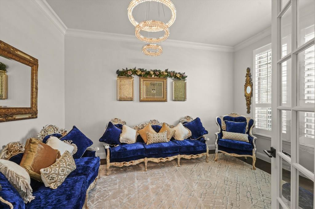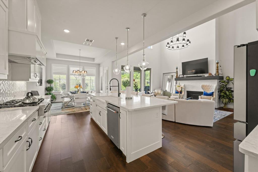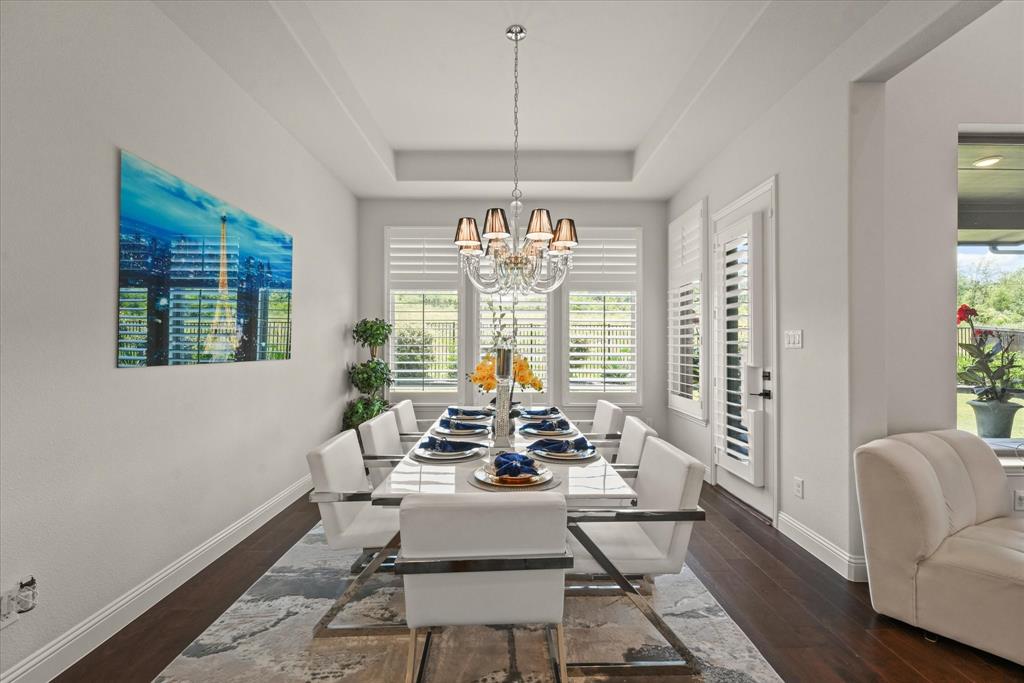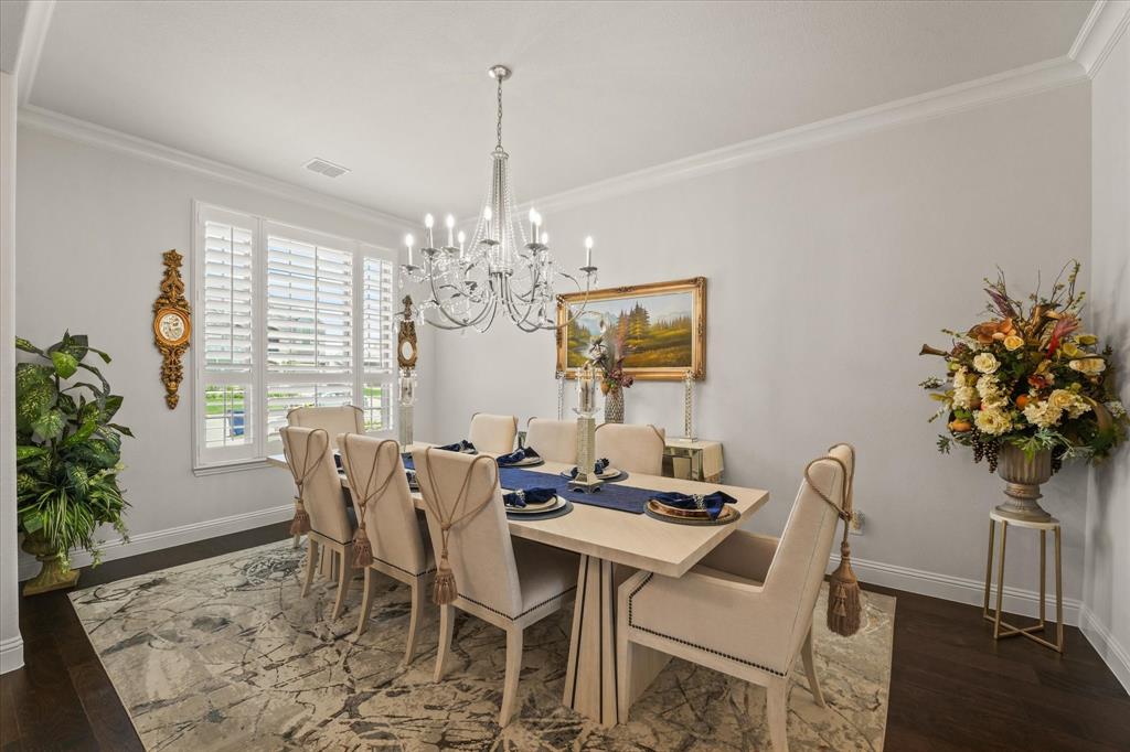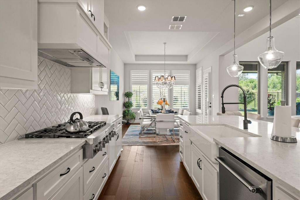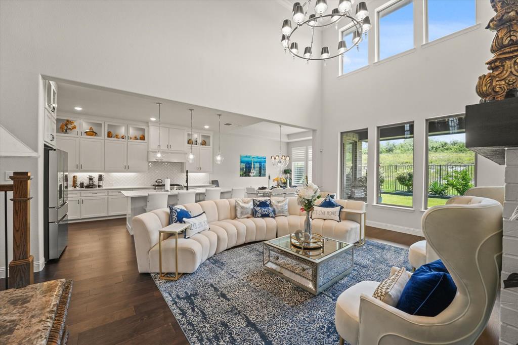 Nestled by a tranquil greenbelt, this home boasts an extraordinary floor plan. Step inside to find high-end trim, exquisite chandeliers, and bright, beautiful flooring. The kitchen is a chef's dream with marble countertops and stainless steel appliances. Plus, enjoy the media room and being part of the sought-after Rockwall ISD. This gem radiates warmth and elegance.