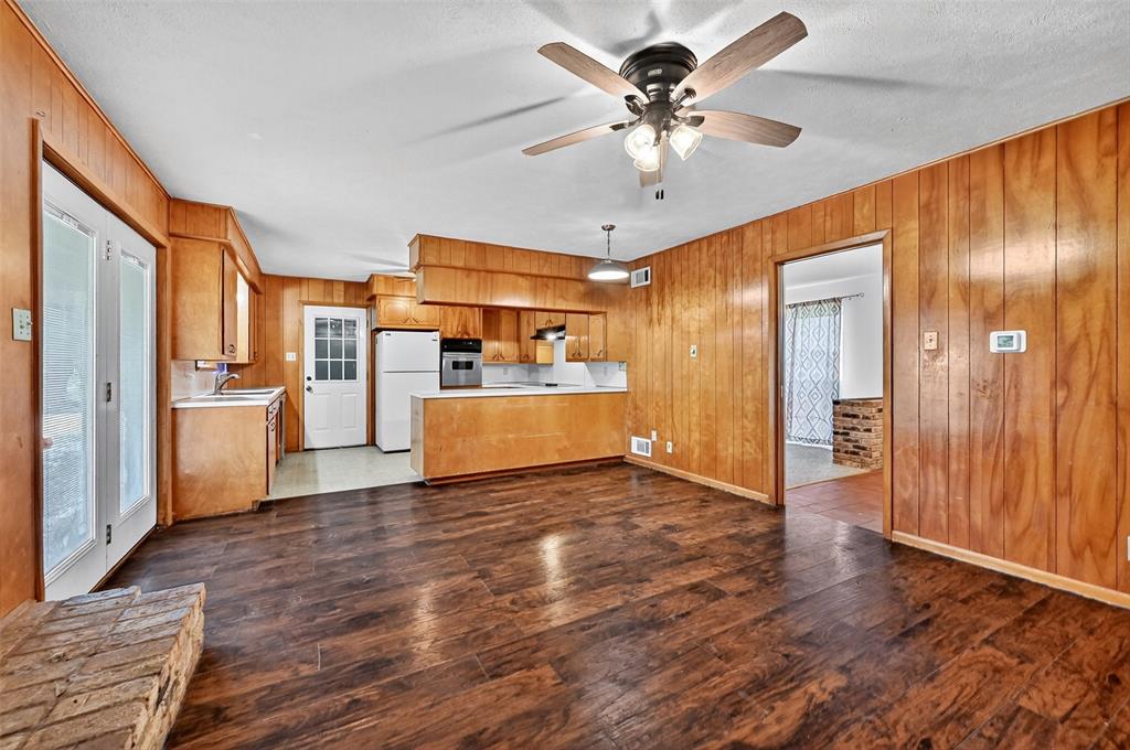 Conveniently located near FM 902 and TX 289, this property offers quick access to the Dallas North Tollway and Hwy 75, ideally positioned between McKinney, Frisco, and the Sherman & Denison area. The home features an open-concept layout filled with natural light. The room off the entry can serve as a formal dining room, home office, second living area. The main living area includes a wood-burning fireplace and connects to the kitchen, which features a window overlooking the spacious backyard. The primary bedroom has an en suite bath, and two secondary bedrooms share a full hallway bathroom with double sinks. The garage includes a utility room with full-size washer & dryer connections and a third full bathroom, adding flexibility for busy households and offering convenient access during outdoor projects or gatherings. The backyard has mature trees and offers plenty of room to relax, play, or entertain. While the home could use some updates, it’s a solid property with a great layout, ideal location, and lots of potential to make it your own.