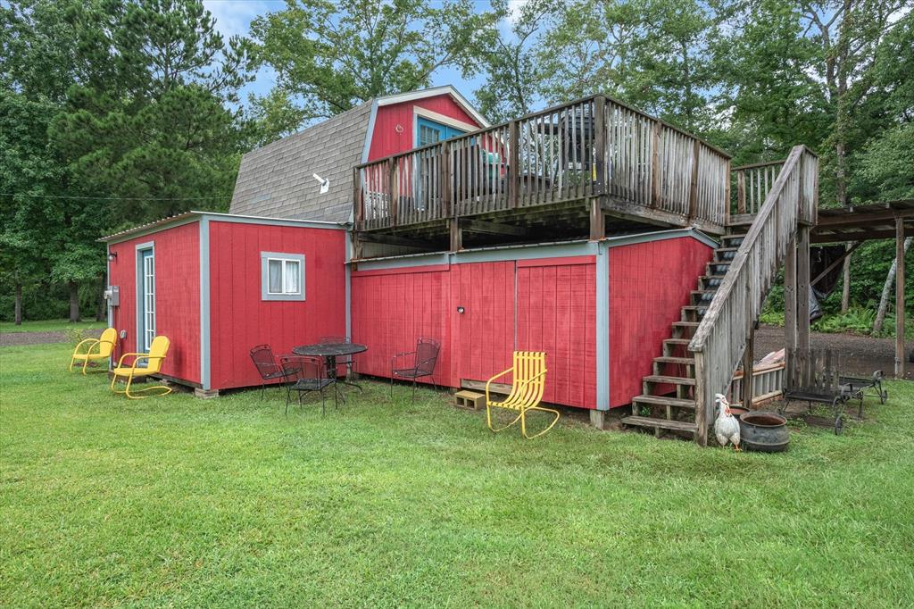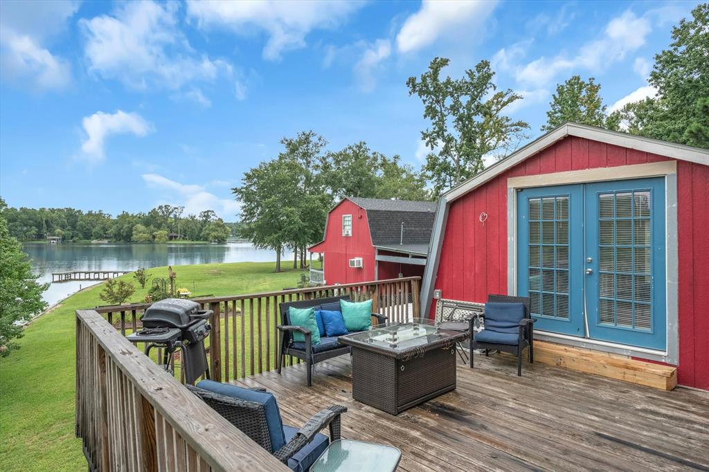 Two lake homes on this sprawling 1.43 acres, encompassing 4 lake lots with approx. 740 ft of spring fed lake frontage! Currently a beautiful and productive VRBO with 100% excellent reviews! Main home is a Dutch Barn home with 3 bedrooms, 2.5 bath, master downstairs, open concept, eat in kitchen, dining plus breakfast bar & stainless appliances, cozy living room with gas fireplace. Upstairs offers a large bunk room & a private bedroom & full bath. Tiny home has 1 bedroom, 1 bath & upstairs kitchen with rooftop patio & the best lake views! Home can be turnkey ready to enjoy or rent immediately! 16x16 shop, & covered equip pavilion! Perfect place to live in, a weekender, retire to, or VRBO. Callender Lake in East Texas is a constant level spring fed 390 acre lake considered one of Texas' best kept secrets!! Community & POA offer boat docks, swimming pool, pavilion, playgrounds, & park. Home is on a deep water well with a 2025 pump so no water bill! A water meter is also available. 25 mins to Tyler, 20 mins to Canton, 15 mins to Athens. Award winning Van ISD.