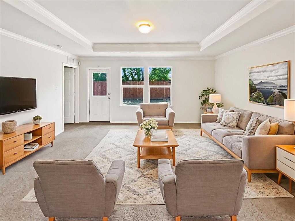 Check out this stunner! This home has Fresh Interior Paint, New flooring throughout the home. Discover a bright interior tied together with a neutral color palette. You'll love cooking in this kitchen, complete with a spacious center island and a sleek backsplash. Relax in your primary suite with a walk in closet included. The primary bathroom is fully equipped with a separate tub and shower, double sinks, and plenty of under sink storage. Take it easy in the fenced in back yard. The sitting area makes it great for BBQs! Don't miss this incredible opportunity. This home has been virtually staged to illustrate its potential.. 100-Day Home Warranty coverage available at closing