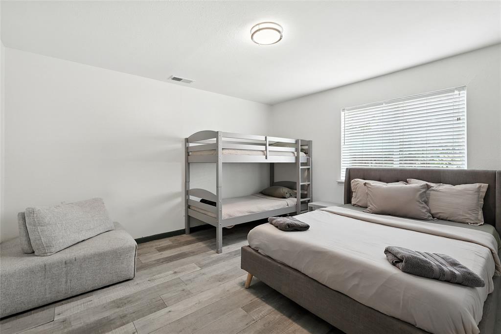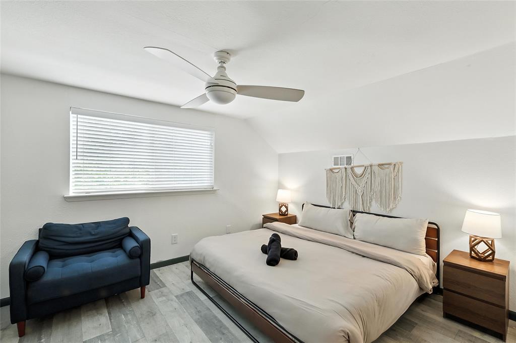 BUYER IMPROVEMENT ALLOWANCE available, subject to the terms of the Offer. Currently operated as a short-term rental, this fully furnished and equipped 5-bedroom home offers a rare turnkey opportunity. All furnishings, appliances, and household items currently in the home can convey with the sale, for an additional negotiable fee, allowing buyers to step into a READY-TO-GO setup. The current STR management team is also available to offer their services to the Buyer at a discounted rate, if desired. Please note: the existing STR permit will not transfer with the sale. A new permit must be obtained under the Buyer’s name before operating as a short-term rental. Past performance is not an indicator of future performance. Updated and move-in ready, this 1.5-story residence features 2,089 square feet, 2.5 baths, a 2-car garage, and a flexible layout with multiple bedrooms and shared living areas. The main living area showcases a striking floor-to-ceiling marble fireplace and flows into a modern kitchen with stainless steel appliances, quartz countertops, and a breakfast bar. The primary suite includes a walk-in closet and private bath, while the remaining four bedrooms share a well-appointed hall bath. Durable vinyl flooring runs throughout, with tile in wet areas. Step outside to enjoy a private in-ground heating pool, outdoor seating area, and grilling space—perfect for Texas summers. **Seller is open to discussing Buyer Incentives related to closing expenses or interest rate flexibility, subject to terms of the offer. ***Please inquire for showing appointment availability.