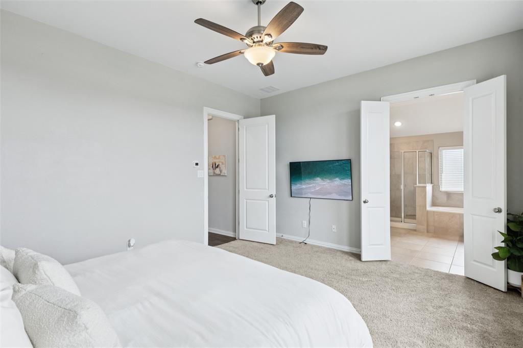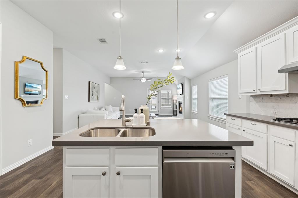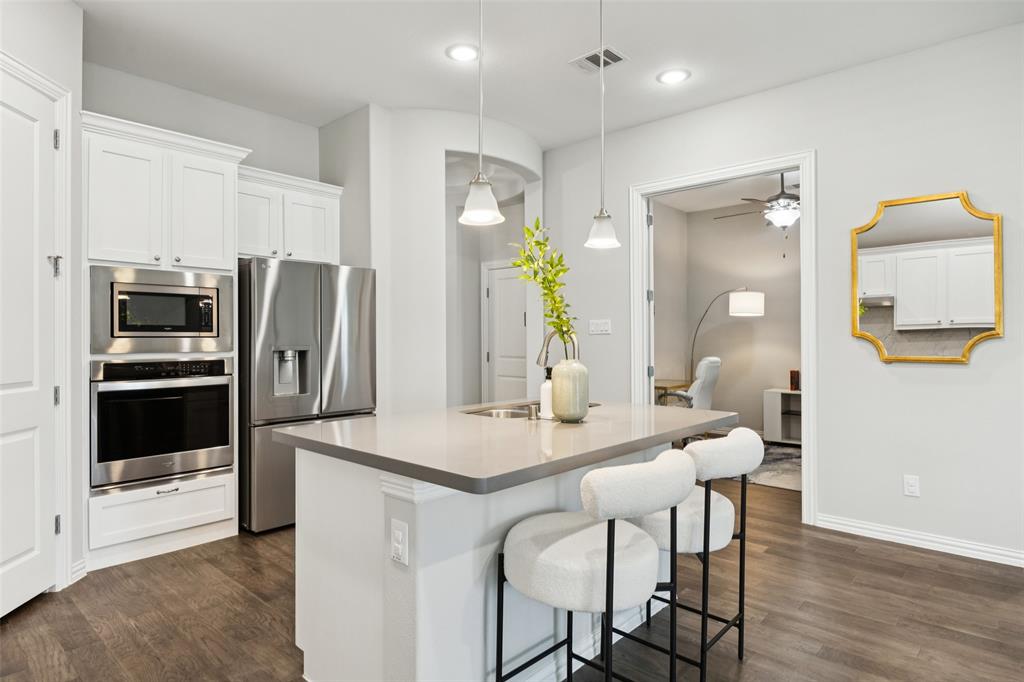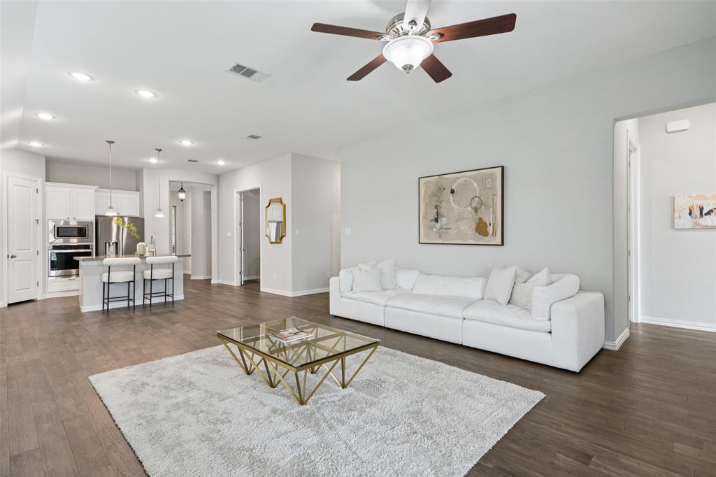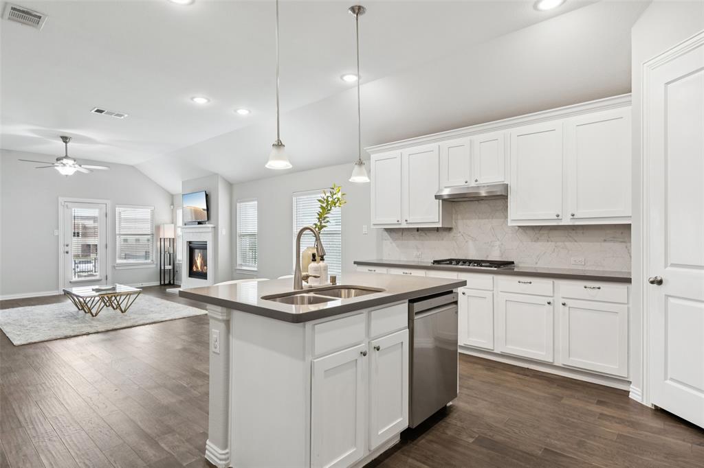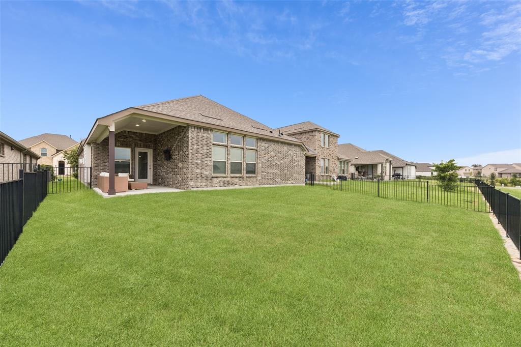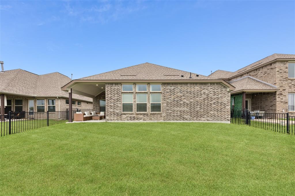 Don’t wait for new construction—this stunning home shows like new! Sellering offering $5,000 buyer concession! Built with quality and attention to detail, it offers wonderful curb appeal with its brick and stone façade. Located in a newer neighborhood filled with community amenities and excellent schools, this home truly has it all. Inside, the open-concept floorplan flows seamlessly, highlighted by a dedicated office with double glass doors—perfect for working from home. A second built-in desk area provides an ideal homework station or extra workspace. The heart of the home is the expansive living, dining, and kitchen combo, bathed in natural light and designed for both comfort and entertaining. The tranquil primary suite is privately tucked away at the back of the home. A light, neutral color palette complements any décor. Enjoy outdoor living on the covered patio, complete with a mounted TV setup, while the wrought iron fence adds style and security. Additional features include a security system with cameras and a two-car attached garage for storage and convenience. This home combines function, comfort, and style—schedule your private showing today and don’t miss the chance to make it yours!