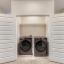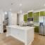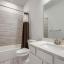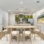 Upon slipping inside the modern front door, the open plan shows off its stunning electric fireplace feature wall and large windows in the living area, while overlooking an oversized kitchen island with white quartz countertops and custom 42” high cabinets to balance the soaring ceilings. Tucked around the corner is a custom mud-room drop zone, a great storage feature for everyday use. A cute half bath, working pantry for additional storage and access to the oversized two-car garage round out first floor living.