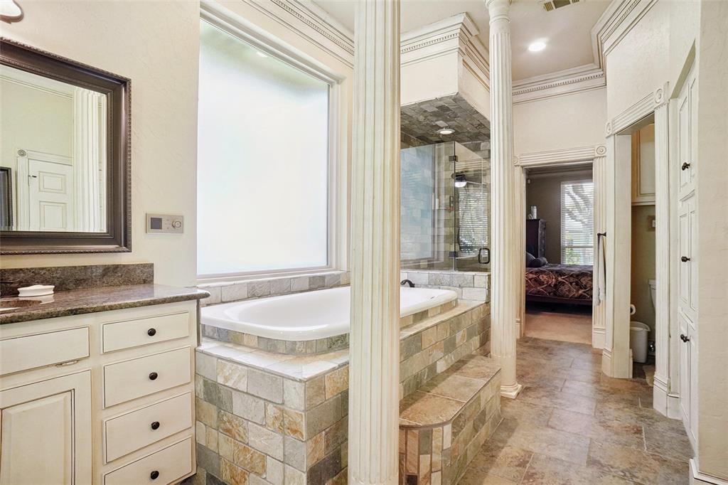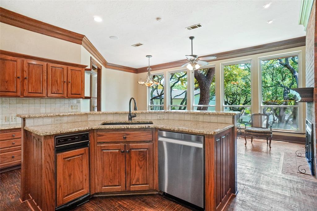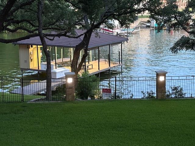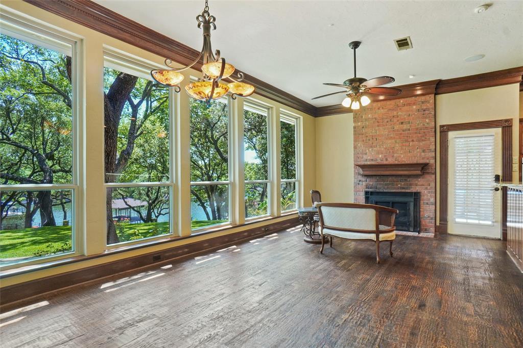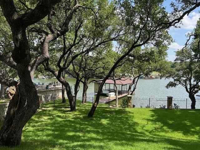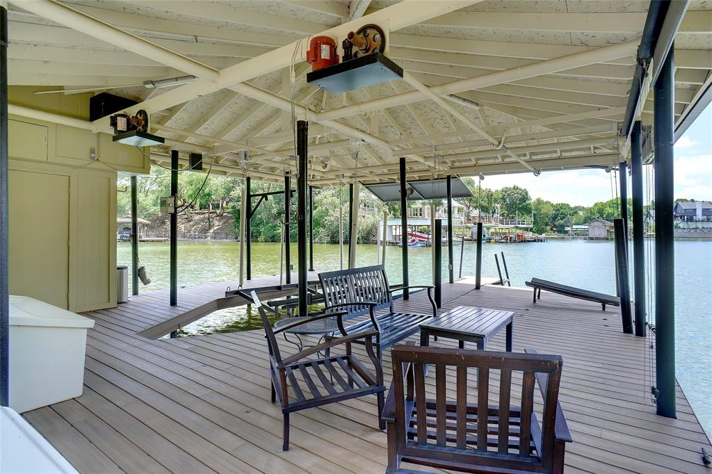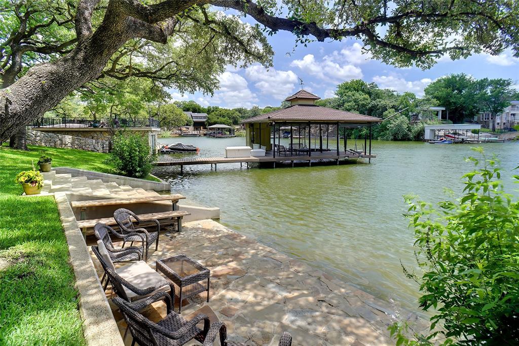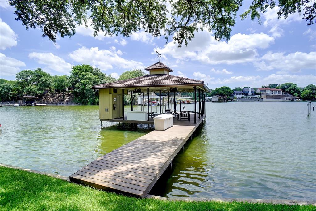 SPECTACULAR WATERFRONT ON EAGLE MOUNTAIN LAKE! Located on the east side of the lake with deep water. Gorgeous half acre lot with stately mature trees and lush landscaping. Everyone can enjoy their own space with 3 living areas and a game room. Two of the living areas have fireplaces with gas starters. Crown moldings throughout the downstairs. Handscraped wood floors in one living area, kitchen, and dining. Kitchen has lovely granite countertops, stainless steel appliances, and large pantry plus a view of the lake while you're cooking! Primary bedroom features special crown moldings, large walk in stone shower, and a deep soaking tub complete with music and gentle vibrating water. There is also a hidden cedar closet & safe. Upstairs you'll find a TV room, game room that can accommodate a pool table, and wet bar. The two secondary bedrooms upstairs share a Jack & Jill bath. Enjoy the serenity of the back yard oasis with covered patio and water feature. The covered boat dock features a boat lift and 2 jet ski lifts. Everything about this home speaks of solid quality! Stone coated steel roof installed 4 years ago. Updated HVAC units. Updated low E windows.