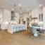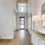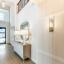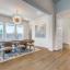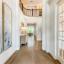 An open-concept layout serves as the heart of the home, centered around a striking waterfall island, elegant floor-to-ceiling cabinetry with glass accents, and designer lighting that adds a curated touch to every space. A custom fluted accent wall welcomes you into the private home office, enhanced with refined moldings.