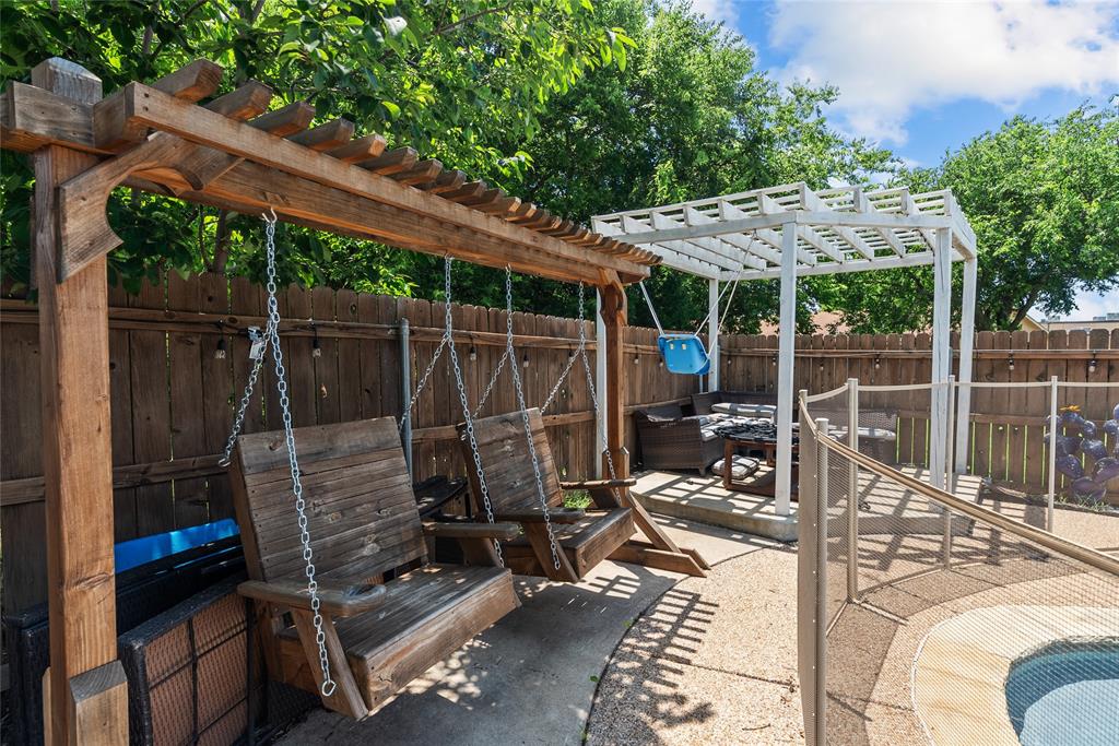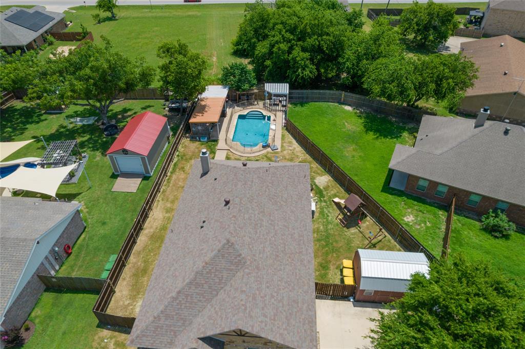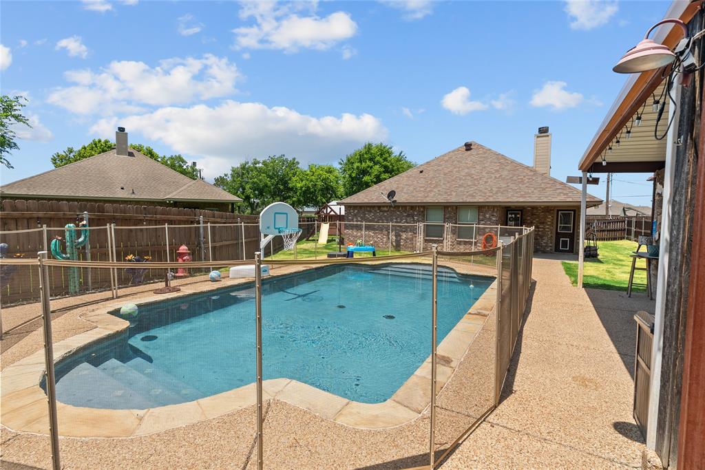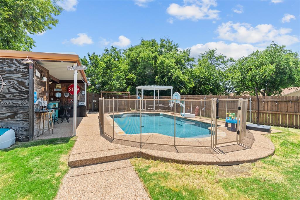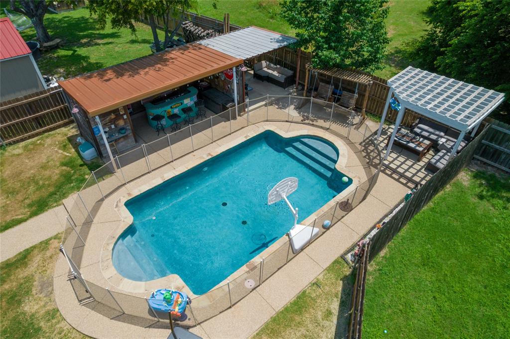 Step outside and you're in your own private oasis: a sparkling in-ground pool perfect for hot Texas summers, paired with a poolhouse that includes a half bathroom, making it ideal for entertaining. The backyard is fully fenced with room to roam and relax.