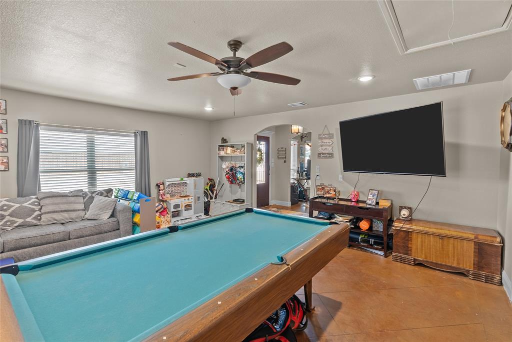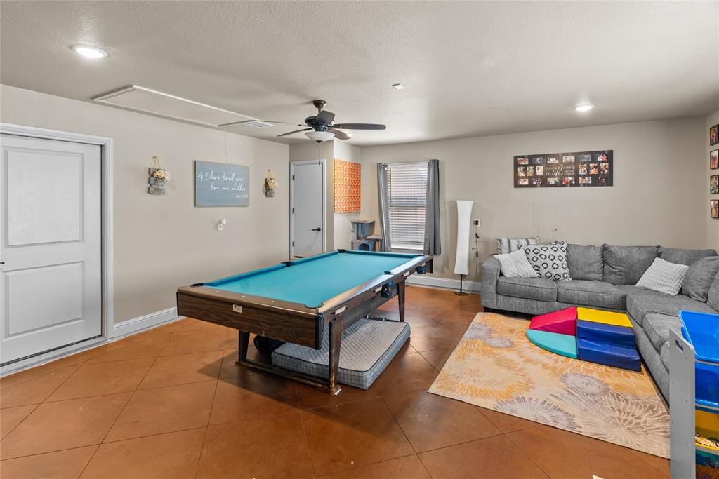 One of the standout features is the converted garage, now an oversized game room or playroom with endless possibilities—movie nights, kids’ activities, or even a home gym.