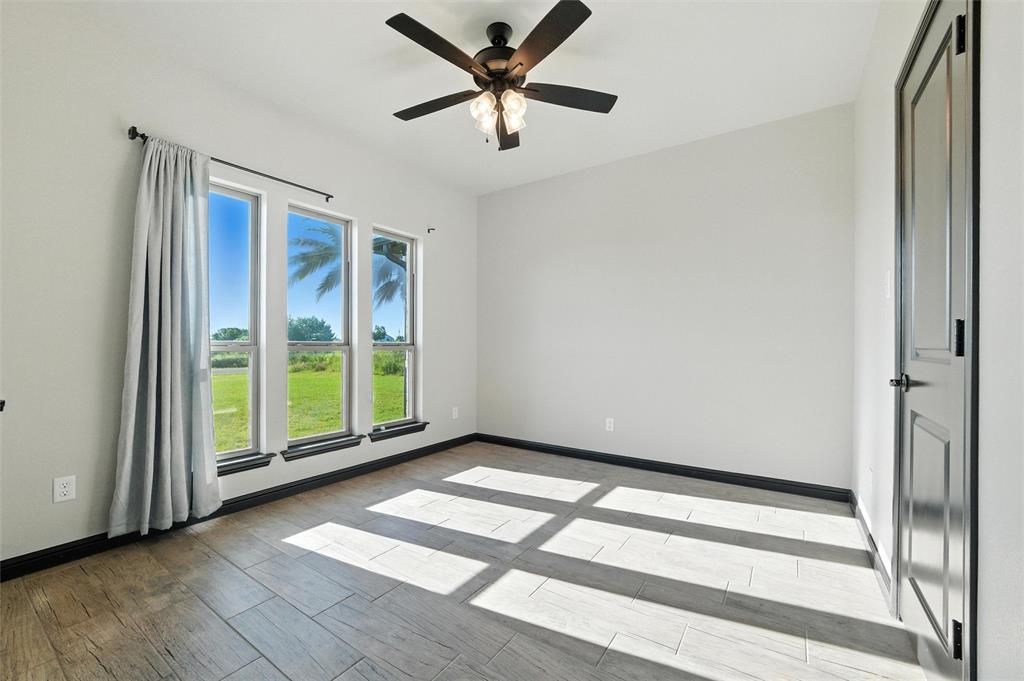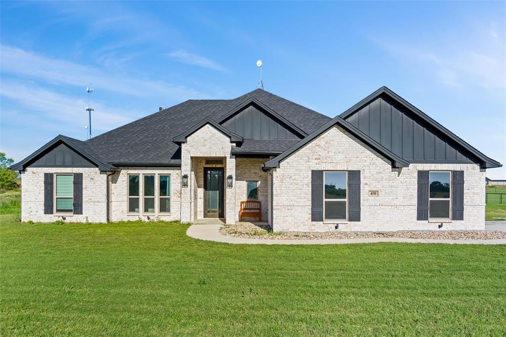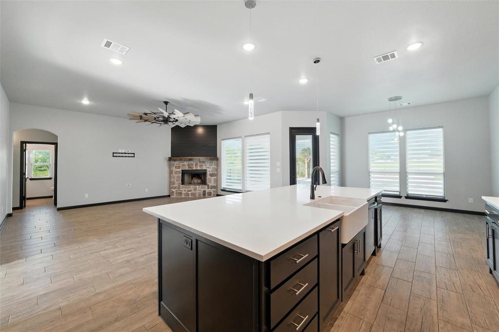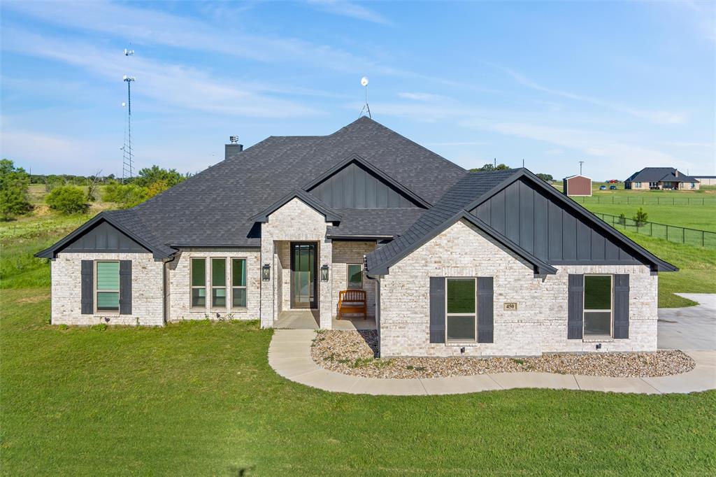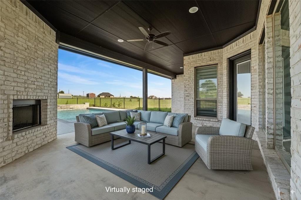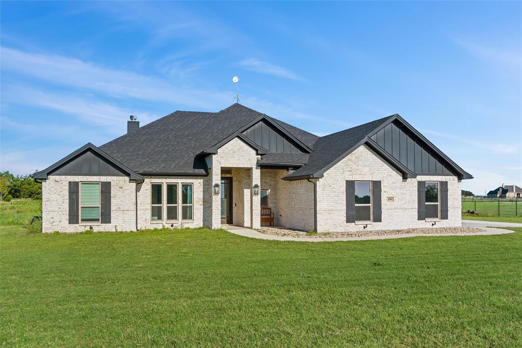 Priced to sell, this property has it all! Built in 2021 this modern farmhouse style custom home on 1.8 acres is ready for its new owner! vacation in your own backyard with this incredible in ground pool which features a waterfall and built in spa! HUGE covered patio with wood burning fireplace! In addition to the large patio this dream property also has a cabana with an outdoor kitchen & bar! Built in stainless steel fridge, grill & griddle ALL INCLUDED in the Cabana! Large windows in the back of the home allow you to step inside the front door & see straight to your backyard oasis. High ceilings & custom molding define the home's grand, architectural features. UPGRADES GALORE in this kitchen including premium quartz countertops, custom wood vent hood, sleek glass cooktop, oven tower, shaker style wood cabinetry with trimmed out island, pot drawers, additional cabinetry on seating side of island, farm sink, custom glass pantry door and a built-in trash drawer. Retreat to this luxurious primary suite, with private patio access also boasting a spa-inspired en-suite bathroom complete with double vanities, an oversized glass shower with a built-in seat, and a separate toilet room for ultimate privacy and functionality. Even the secondary bath has lots of upgrades-like the fully tiled shower-tub, thick granite countertop, wood framed mirror and built in overhead cabinets. The laundry room is conveniently located off of the large primary closet! Split floorplan with an open kitchen and living room in the middle. Great storage space throughout with ample closets in each room plus several hall closets and a custom mud bench coming in from the garage. Speaking of garage, if you are looking for a hobby space the garage has an extra ~9'x6' area in the back. NO HOA! Low taxes being outside of the city limits (2024 tax rate 1.2393% from Realist Report)! Easy to maintain xeriscape beds ready for your touch! This is a perfect place to enjoy outside in every season!