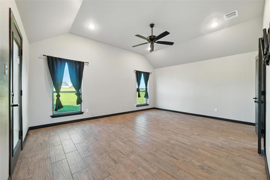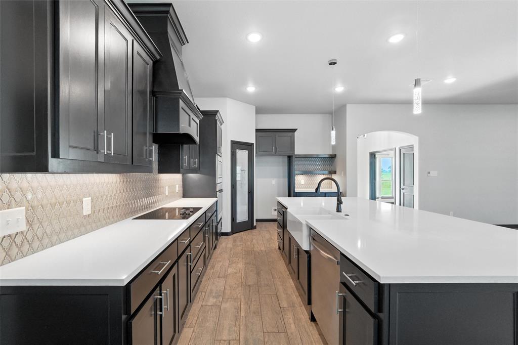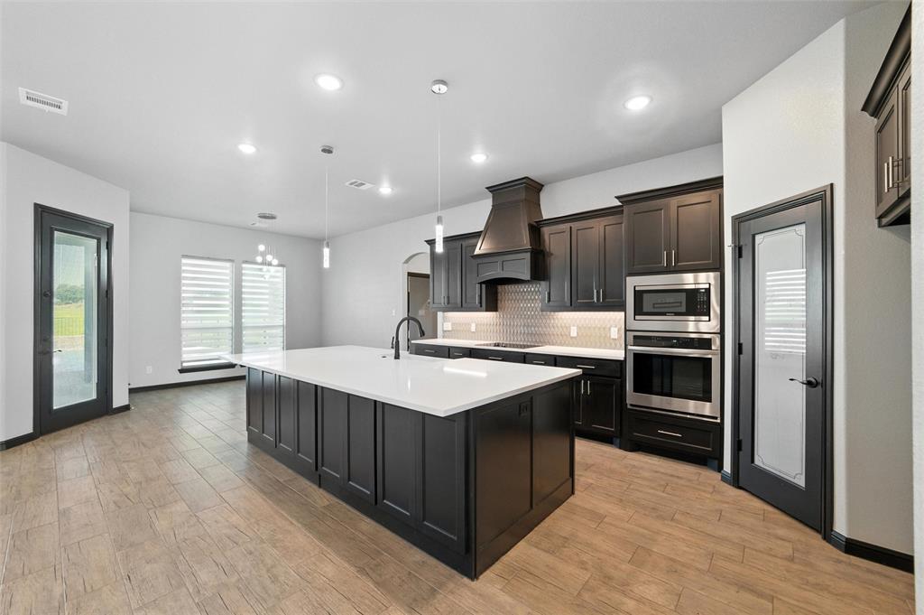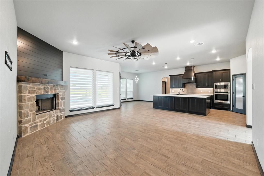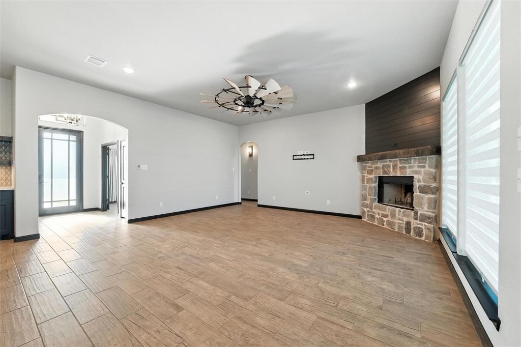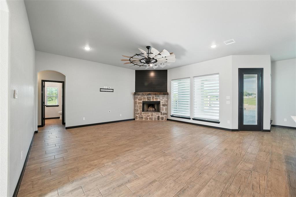 Priced to sell, this property has it all! Built in 2021 this modern farmhouse style custom home on 1.8 acres is ready for its new owner! vacation in your own backyard with this incredible in ground pool which features a waterfall and built in spa! HUGE covered patio with wood burning fireplace! In addition to the large patio this dream property also has a cabana with an outdoor kitchen & bar! Built in stainless steel fridge, grill & griddle ALL INCLUDED in the Cabana! Large windows in the back of the home allow you to step inside the front door & see straight to your backyard oasis. High ceilings & custom molding define the home's grand, architectural features. UPGRADES GALORE in this kitchen including premium quartz countertops, custom wood vent hood, sleek glass cooktop, oven tower, shaker style wood cabinetry with trimmed out island, pot drawers, additional cabinetry on seating side of island, farm sink, custom glass pantry door and a built-in trash drawer. Retreat to this luxurious primary suite, with private patio access also boasting a spa-inspired en-suite bathroom complete with double vanities, an oversized glass shower with a built-in seat, and a separate toilet room for ultimate privacy and functionality. Even the secondary bath has lots of upgrades-like the fully tiled shower-tub, thick granite countertop, wood framed mirror and built in overhead cabinets. The laundry room is conveniently located off of the large primary closet! Split floorplan with an open kitchen and living room in the middle. Great storage space throughout with ample closets in each room plus several hall closets and a custom mud bench coming in from the garage. Speaking of garage, if you are looking for a hobby space the garage has an extra ~9'x6' area in the back. NO HOA! Low taxes being outside of the city limits (2024 tax rate 1.2393% from Realist Report)! Easy to maintain xeriscape beds ready for your touch! This is a perfect place to enjoy outside in every season!