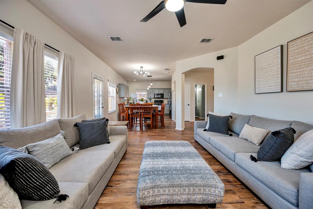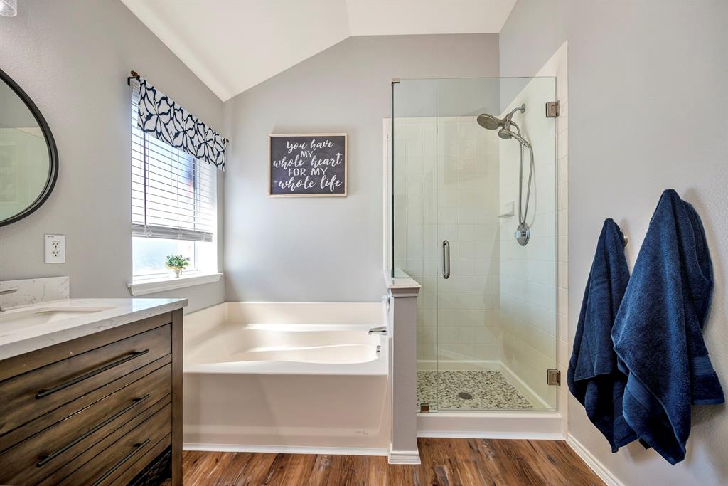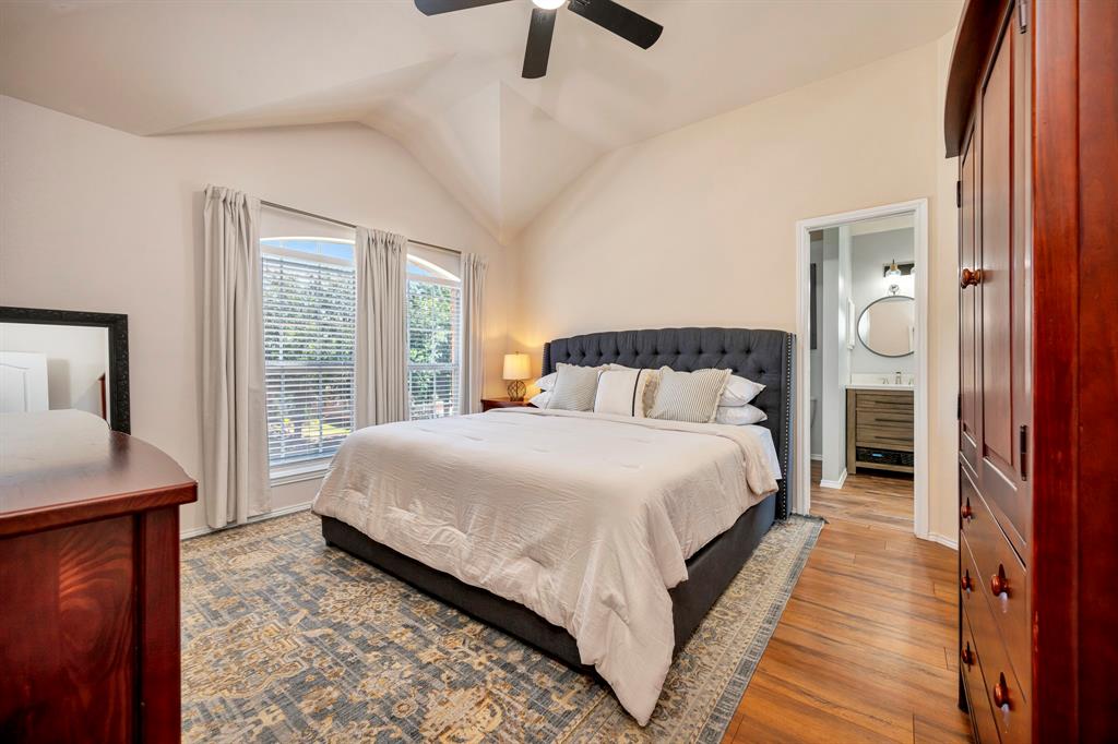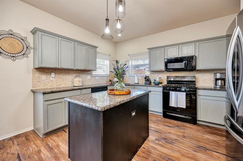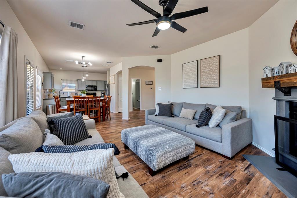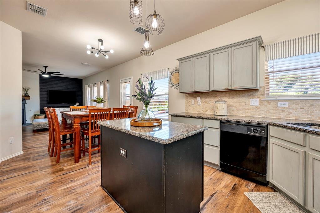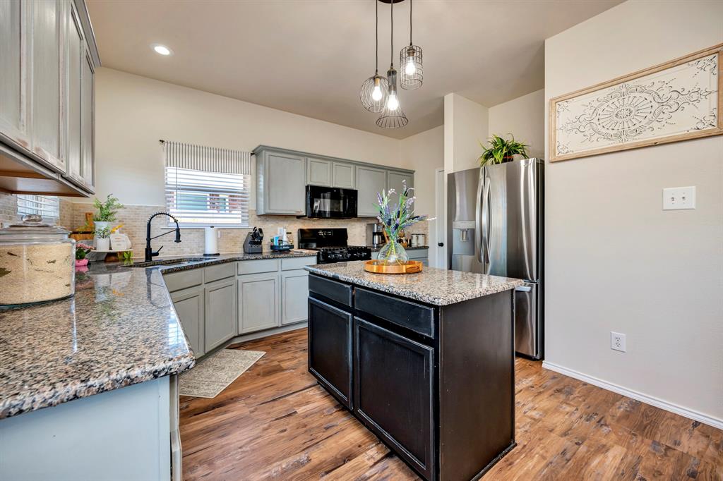 Located in an ideal spot near HEB, Costco, and both the Alliance and Presidio shopping centers, this beautifully maintained home offers the perfect blend of comfort, style, and convenience. The spacious layout includes updated laminate wood flooring in most areas and plush carpet in select bedrooms. The large kitchen features granite counters, tile backsplash, a generous island, and sleek black appliances, making it a perfect gathering space. Enjoy evenings by the fireplace in the cozy living room or work from home in a front flex space filled with natural light. The primary suite includes a vaulted ceiling, a spacious ensuite with dual vanities, a soaking tub, and a separate walk-in shower with river rock flooring. Step outside to a large patio covered by a stunning pergola, ideal for entertaining or relaxing under mature trees. A generator connection is already installed, providing peace of mind year-round. Located with easy access to I35 and I820, this home is ready to impress and convenient for daily living and commuting. Schedule your showing today.