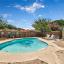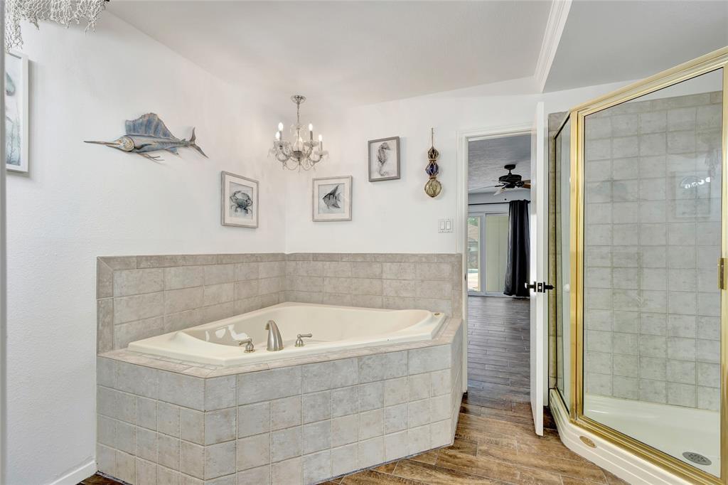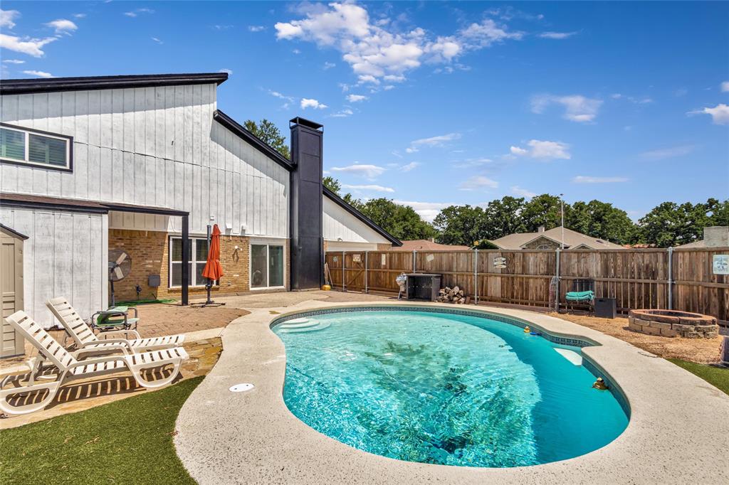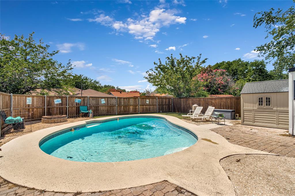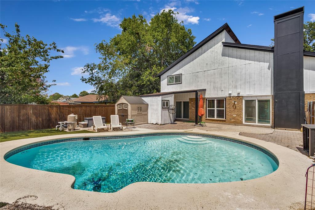 The primary suite offers walk-in closets and a luxurious jacuzzi tub in the spa-like primary bath. Step outside and enjoy the private in-ground pool, shaded by mature oak trees, and lots of shed space.