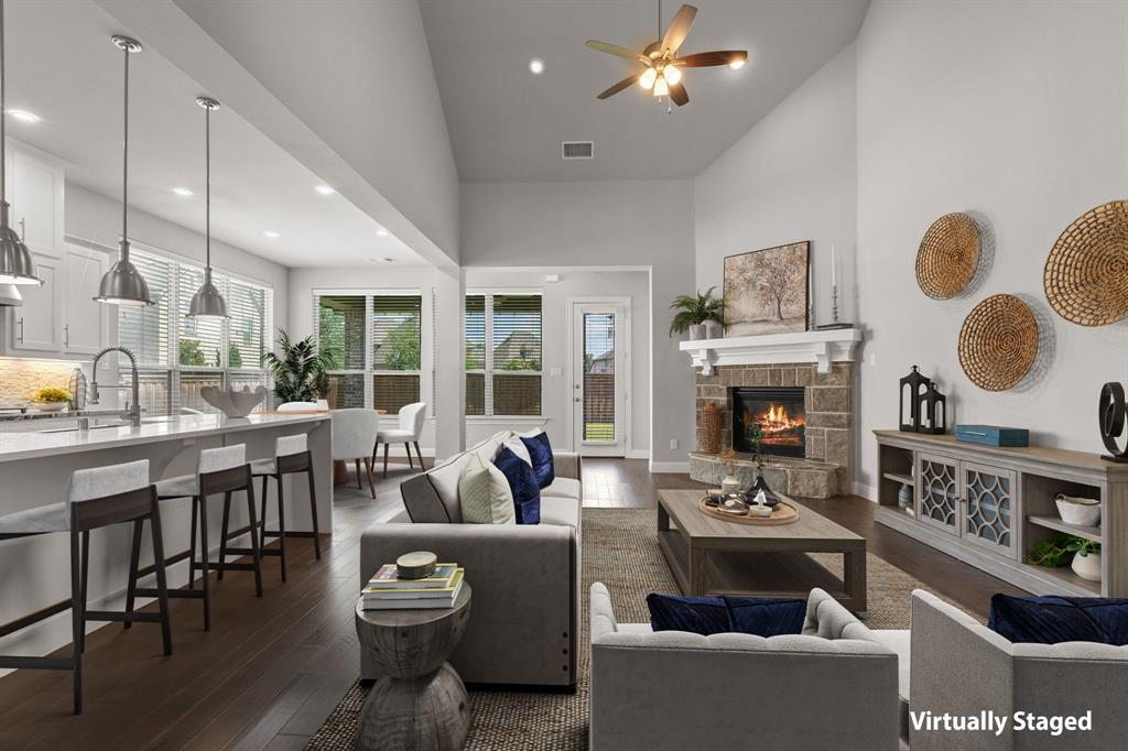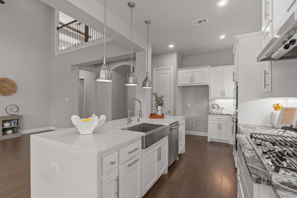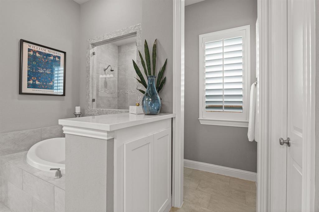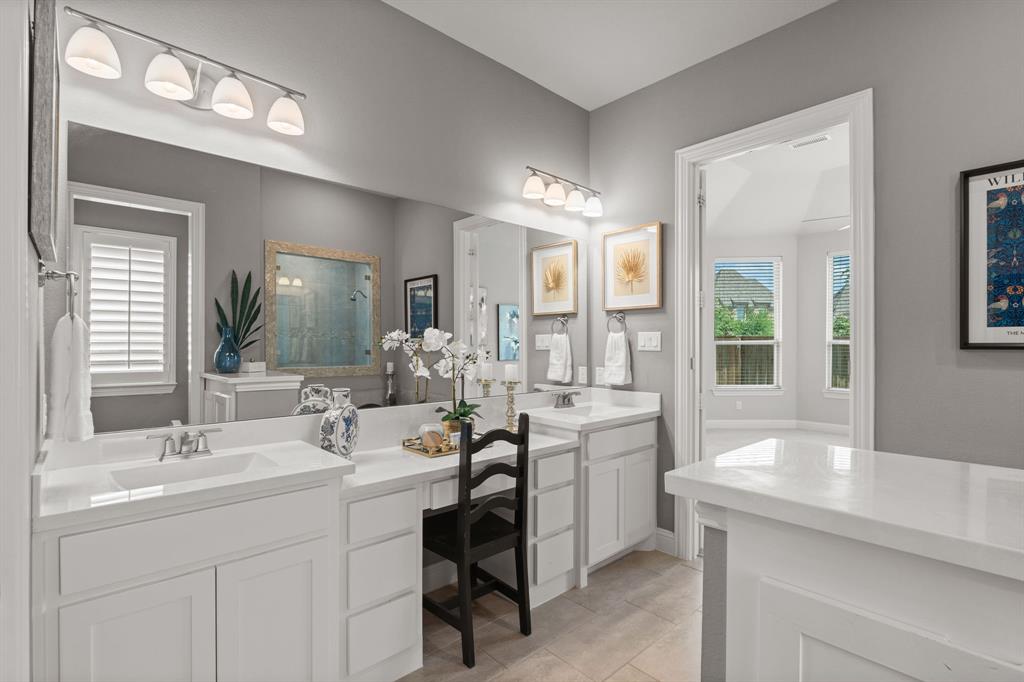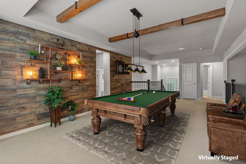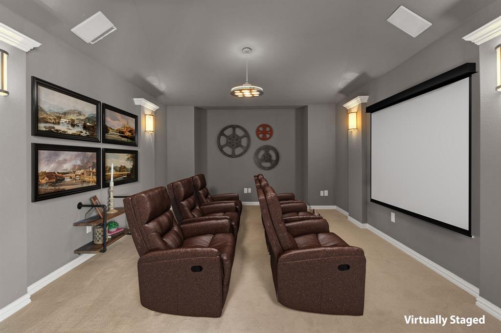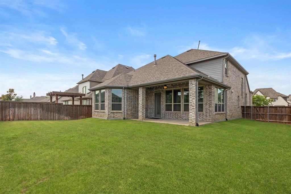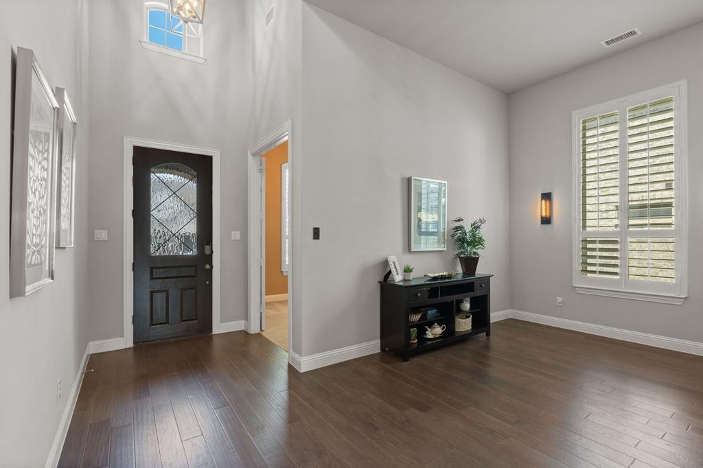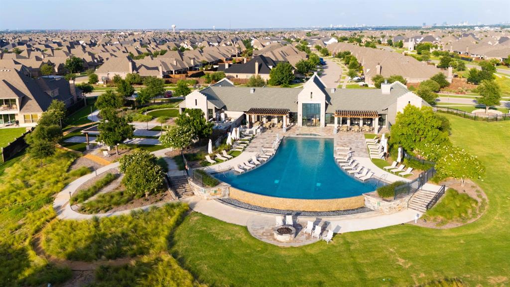 More than a house—this home offers a lifestyle, located in the coveted lakefront community of Westbury at Tribute in The Colony, brimming with resort-style amenities, access to the marina and kayak launch, and walking distance to Prestwick Elementary! The home itself is a showpiece, featuring smart home technology, 19-foot ceilings, first floor mother-in-law or guest space, custom designed game room and theater room, just to name a few. The dedicated office showcases a designer linear chandelier serving as a bold centerpiece for the workspace. Whether you're hosting family gatherings or enjoying a quiet evening at home, the expansive living room delivers comfort and style with a stone gas fireplace easily ignited with the touch of a wall switch. The open floor plan flows seamlessly to the gourmet kitchen, beautifully designed for both cooking and entertaining, offering white cabinetry that pairs perfectly with bold, luxurious quartz countertops, and a substantial eat-in island. The luxurious primary suite is a true retreat, with vaulted ceilings, dramatic bay windows, and a spa-inspired en suite bathroom. The custom-designed second-floor game room or man cave is where elevated design meets laid-back fun, including a built-in dart board, ceiling beams, and a centerpiece light fixture to suspend over a gaming table. Immerse yourself in the ultimate cinematic experience in the theater room, upgraded with theater-style columns, sconce lighting, and in-ceiling surround sound speakers. Upstairs you will also find 2 additional bedrooms, 2 full bathrooms, plus a bonus room that could easily be restored as a 5th bedroom. Residents of Westbury not only enjoy exclusive access to the community pool, park, and pickleball courts, but they are also granted access to the marina, scenic nature path along the lake’s edge, kayak launch, and a nature preserve showcasing breathtaking sunset views over the water, making every day feel like a vacation.
