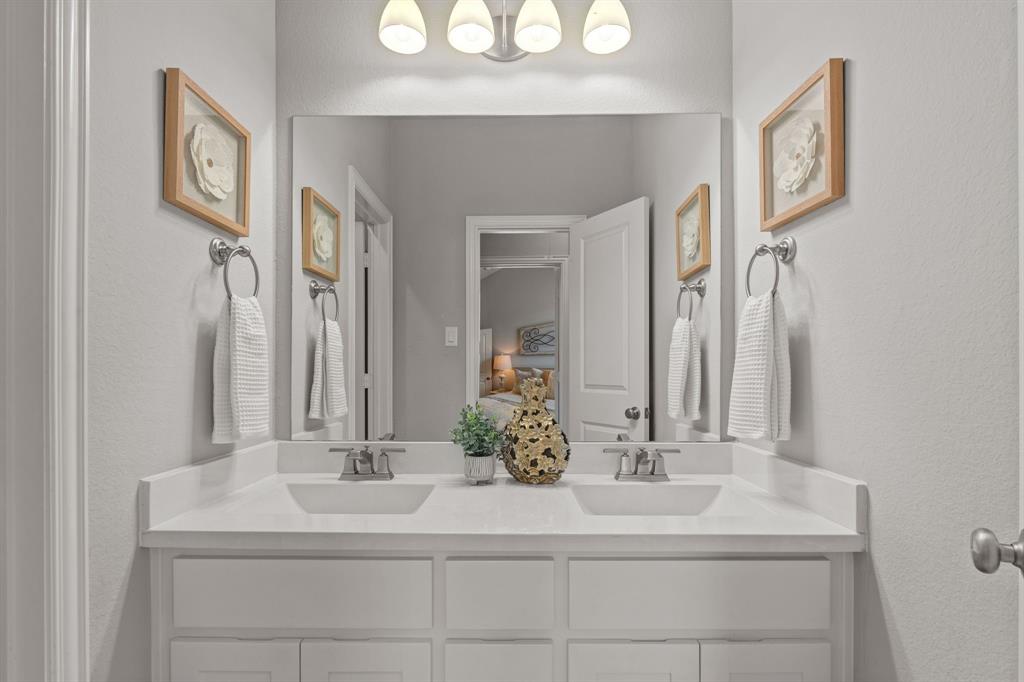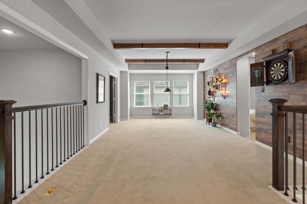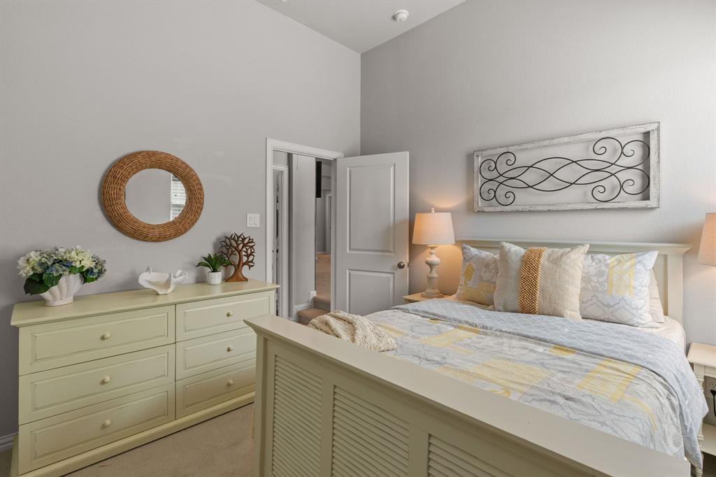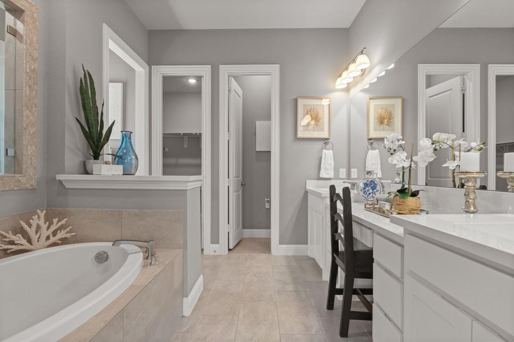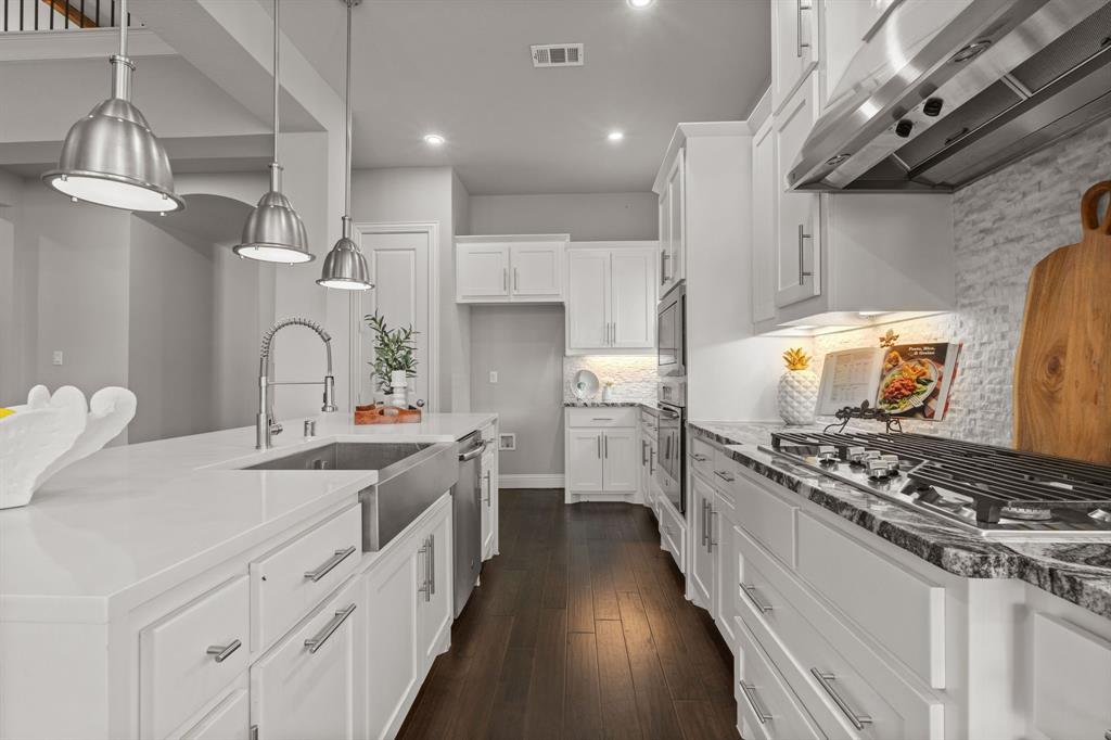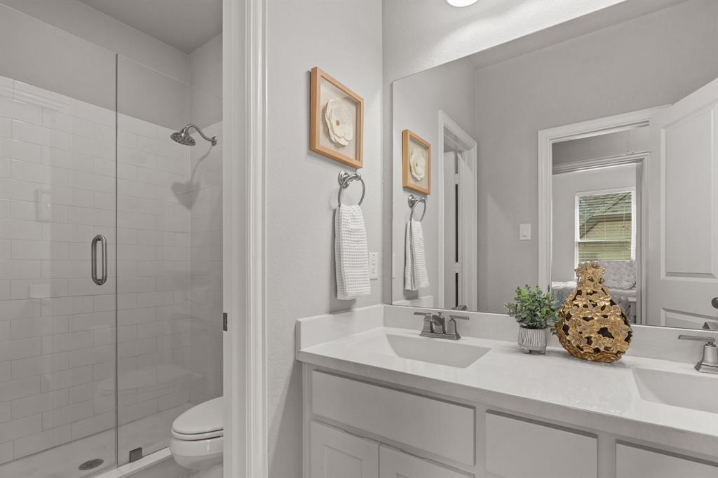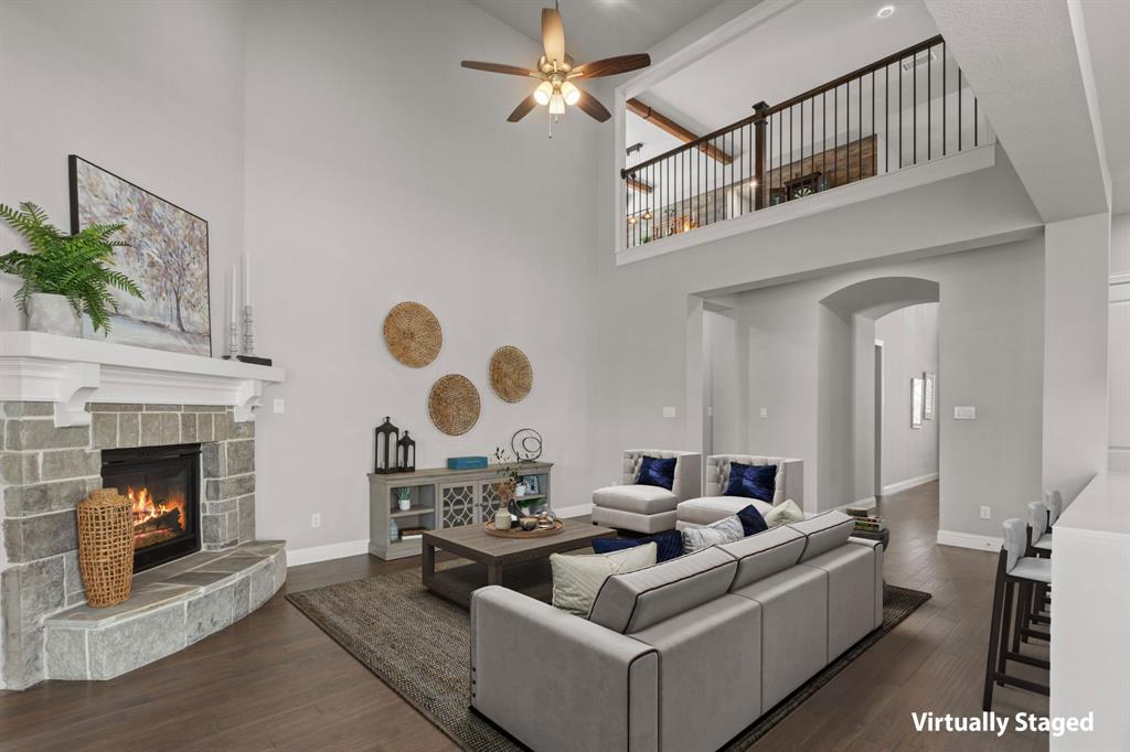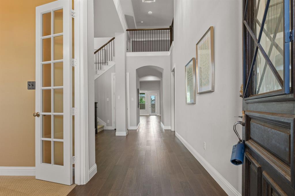 More than a house—this home offers a lifestyle, located in the coveted lakefront community of Westbury at Tribute in The Colony, brimming with resort-style amenities, access to the marina and kayak launch, and walking distance to Prestwick Elementary! The home itself is a showpiece, featuring smart home technology, 19-foot ceilings, first floor mother-in-law or guest space, custom designed game room and theater room, just to name a few. The dedicated office showcases a designer linear chandelier serving as a bold centerpiece for the workspace. Whether you're hosting family gatherings or enjoying a quiet evening at home, the expansive living room delivers comfort and style with a stone gas fireplace easily ignited with the touch of a wall switch. The open floor plan flows seamlessly to the gourmet kitchen, beautifully designed for both cooking and entertaining, offering white cabinetry that pairs perfectly with bold, luxurious quartz countertops, and a substantial eat-in island. The luxurious primary suite is a true retreat, with vaulted ceilings, dramatic bay windows, and a spa-inspired en suite bathroom. The custom-designed second-floor game room or man cave is where elevated design meets laid-back fun, including a built-in dart board, ceiling beams, and a centerpiece light fixture to suspend over a gaming table. Immerse yourself in the ultimate cinematic experience in the theater room, upgraded with theater-style columns, sconce lighting, and in-ceiling surround sound speakers. Upstairs you will also find 2 additional bedrooms, 2 full bathrooms, plus a bonus room that could easily be restored as a 5th bedroom. Residents of Westbury not only enjoy exclusive access to the community pool, park, and pickleball courts, but they are also granted access to the marina, scenic nature path along the lake’s edge, kayak launch, and a nature preserve showcasing breathtaking sunset views over the water, making every day feel like a vacation.