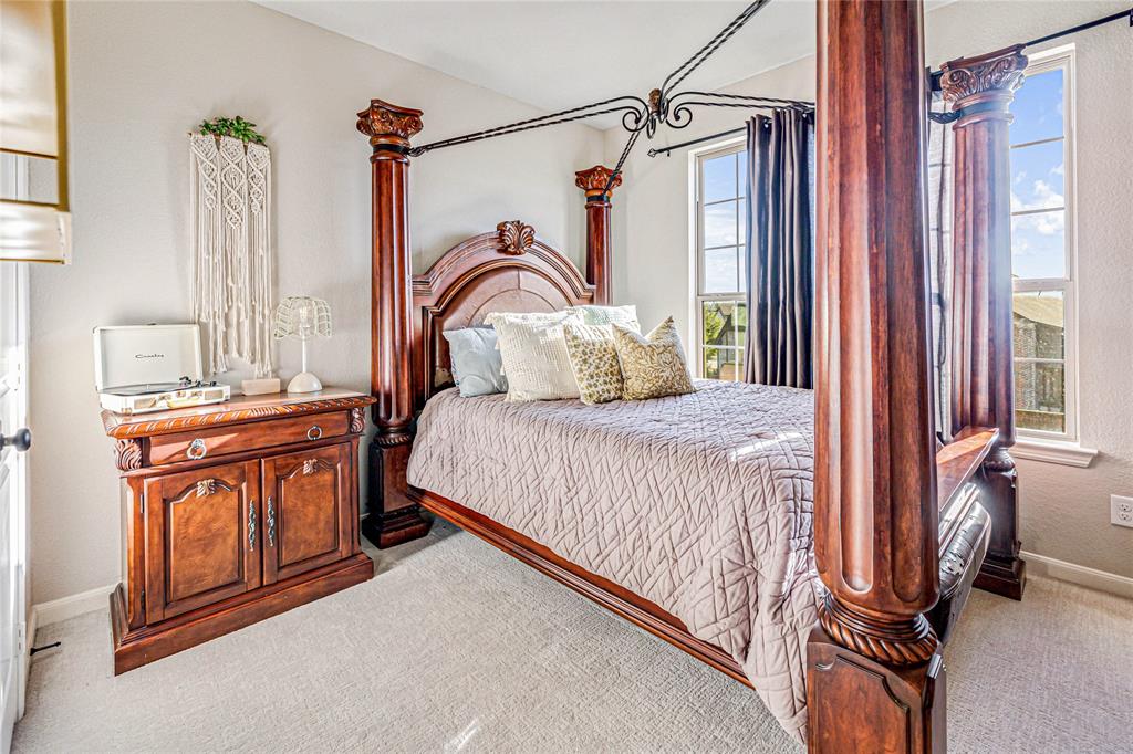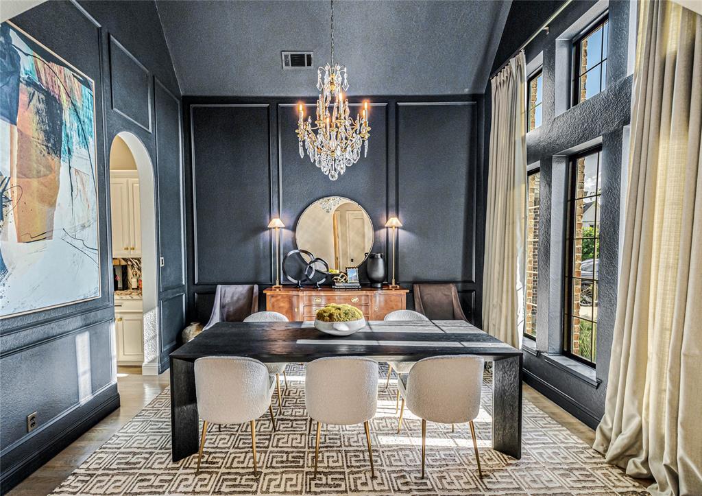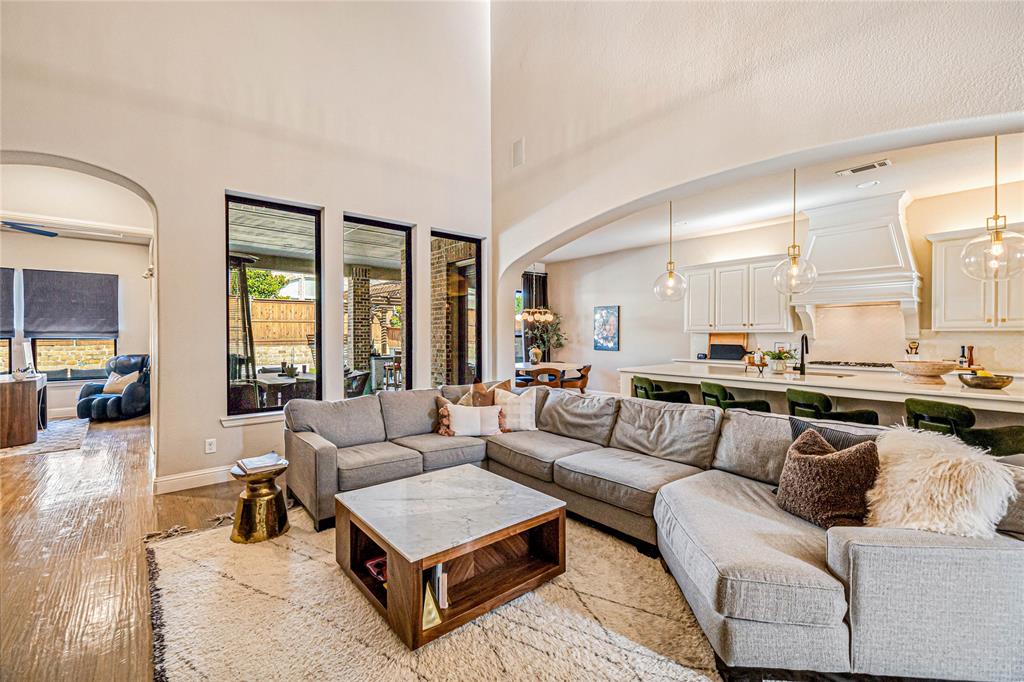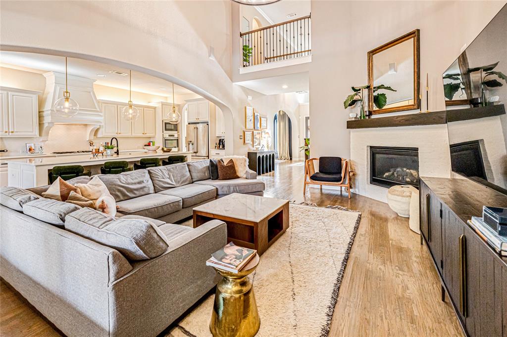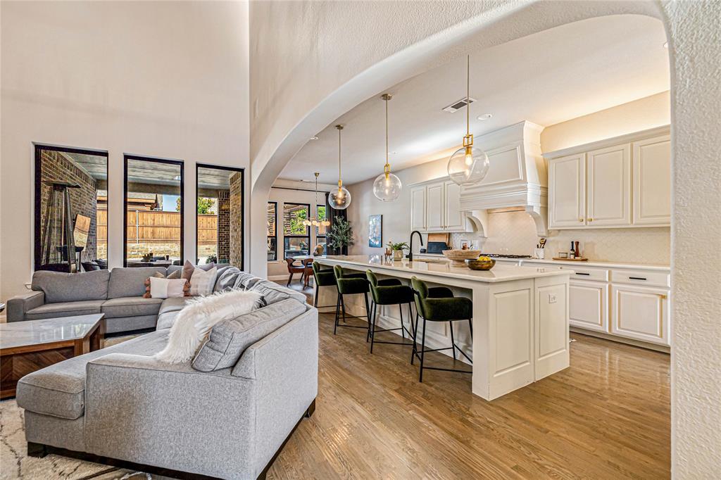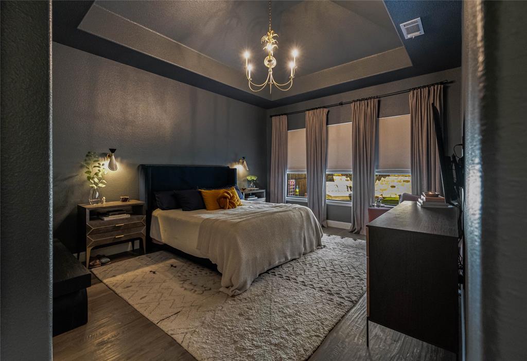 Built by Britton Homes and located in Celina’s desirable Light Farms – Hazel neighborhood, this beautifully updated home combines timeless architectural details with modern upgrades. Graceful interior archways and nailed-down hardwood floors create a warm, inviting atmosphere throughout the main level. The layout includes a dedicated office with custom built-ins and a flexible downstairs secondary bedroom featuring its own built-in workspace and designer wallpaper—ideal for guests or a second home office.