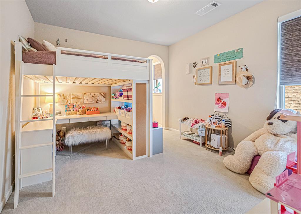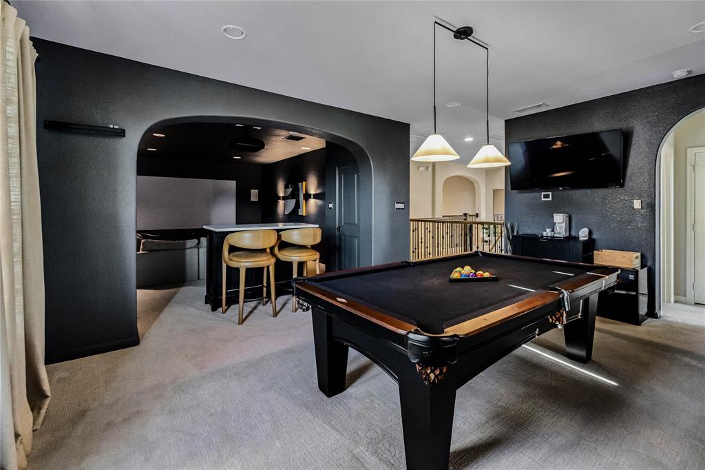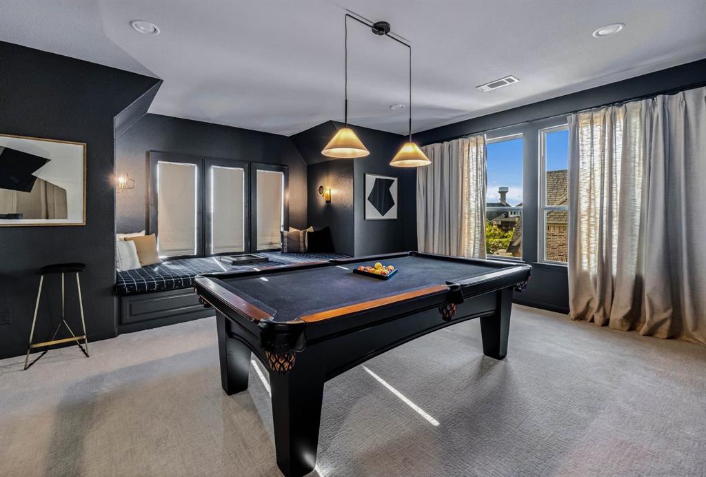 Upstairs you'll find two spacious bedrooms, including one with a private en suite bathroom, a large game room with a custom built-in daybed, a media room, upgraded carpet, and excellent storage space.