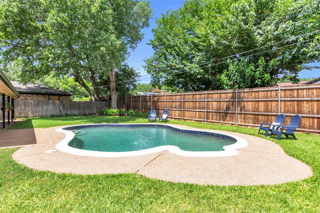 And the backyard provides the perfect backdrop for epic entertainment in every season. A sparkling (recently resurfaced!) pool and expansive covered patio will make you the envy of the neighborhood. Picture BBQs, lazy Sundays, and crisp evenings spent on the patio. The yard is ready for your green thumb or four-legged friends. There’s even extra storage in the garage with easy access to the patio for all your pool toys and party gear. Plus, with easy access to local parks, shopping, and dining, you’ll love calling this corner of Hurst home.