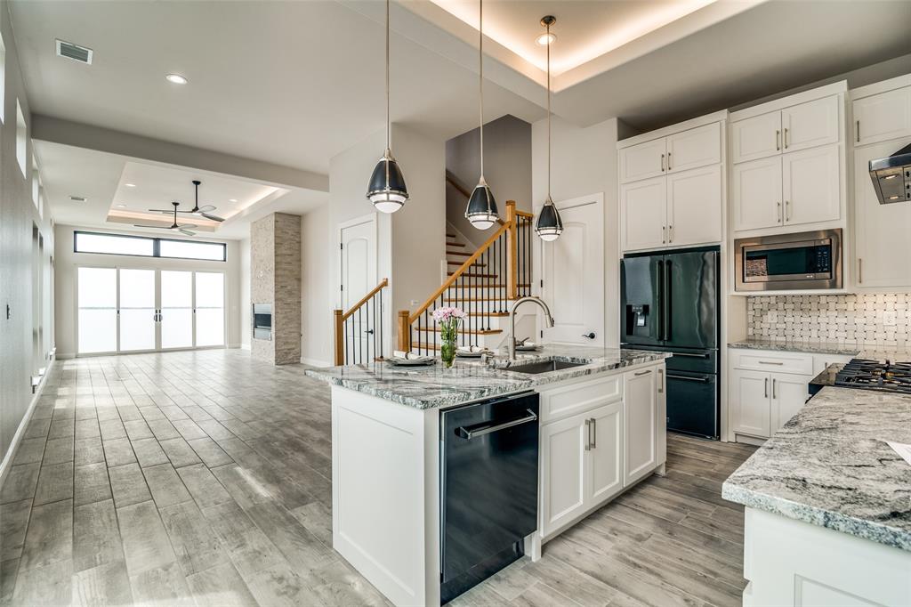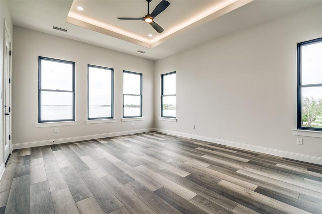 PRICE TO SELL! PANORAMIC LAKE VIEW! NEW CONSTRUCTION CUSTOM HOME! Introducing a stunning two-story custom home in Travis Ranch Marina, with unparalleled views of Lake Ray Hubbard. This ultra-modern masterpiece boasts 5 bedrooms and 3505 sq. ft. across two stories. The primary bedroom has a luxurious bathroom, and the open-concept kitchen features top of the line Z line appliances and granite countertops. The formal dining and living area with a fireplace, a Quad sliding patio door to the back yard. Upstairs are four bedrooms with balconies. Anderson Windows floods the interior with natural light. With 12-foot ceilings, this grand and luxurious living space is impressive. The luxurious flooring of Porcelain tiles on the first floor and Hybrid luxury vinyl planks on the second floor offers durability and elegance. The home boasts an Enhanced Exterior, Advanced Heating and Cooling, Superior Soundproofing, Innovative Lighting, and Energy Efficiency. 2 10 Home Buyers Warranty. Home Sweet Home. This Property is Priced Under Market Value! Travis Ranch HOA includes amenities, featuring a pool, a dog park, a basketball court, and a pickleball court.