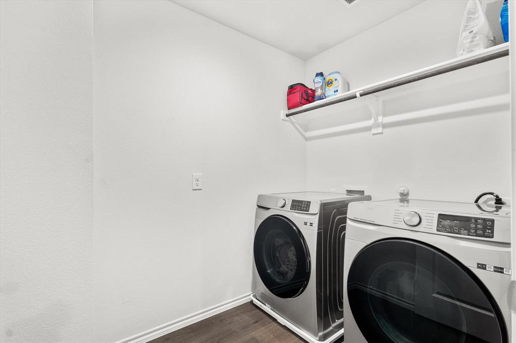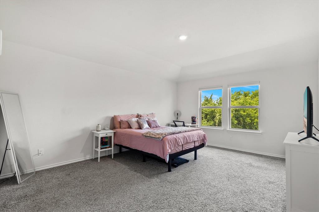 Start your mornings or unwind in the evenings on the covered back patio overlooking an oversized backyard with serene greenbelt views — ideal for entertaining, pets, or simply relaxing in privacy. Additional features include an upstairs laundry room for added convenience. The washer, dryer, and refrigerator convey with the sale, making this a truly move-in-ready opportunity.