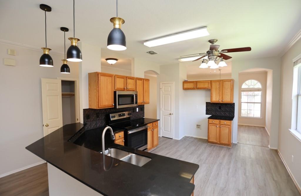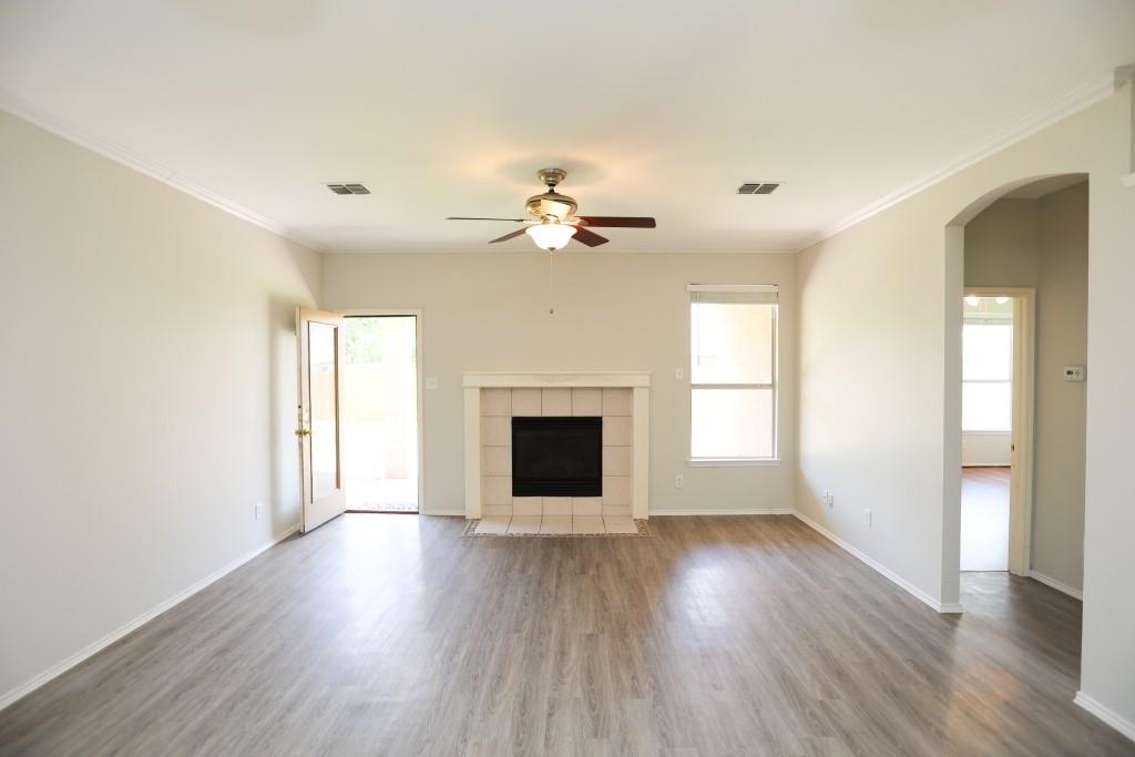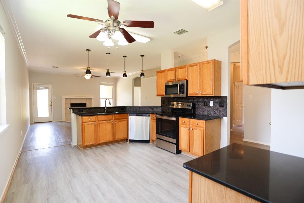 New flooring and fresh interior paint as of June 2025. Roof replaced November 2024. The kitchen features upgraded countertops and a new appliance. New water heater. Move-in ready. Single-story home with a covered patio and ceiling fan, spacious backyard, master bedroom with ensuite bath and walk-in closet, and ceiling fans in all bedrooms. Located in Waterview, a 725-acre master-planned community in Rowlett on Lake Ray Hubbard. Community amenities include a waterpark, golf course, tennis courts, parks, and multiple fishing lakes. Zoned to Garland ISD with a school choice program.