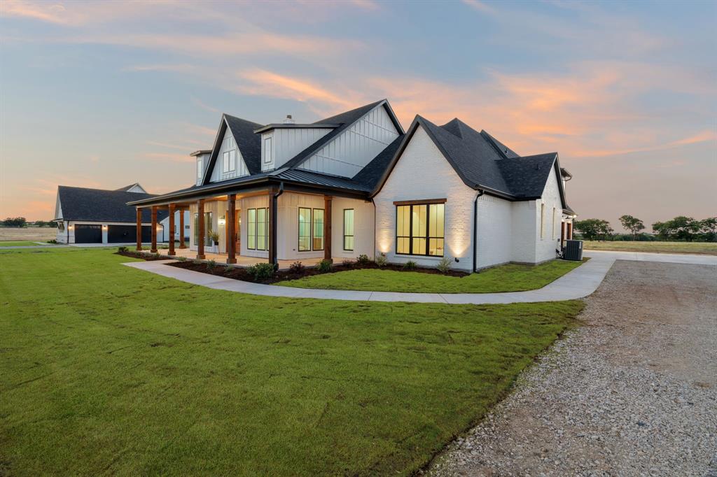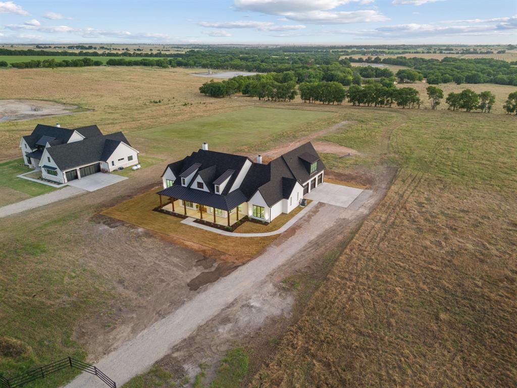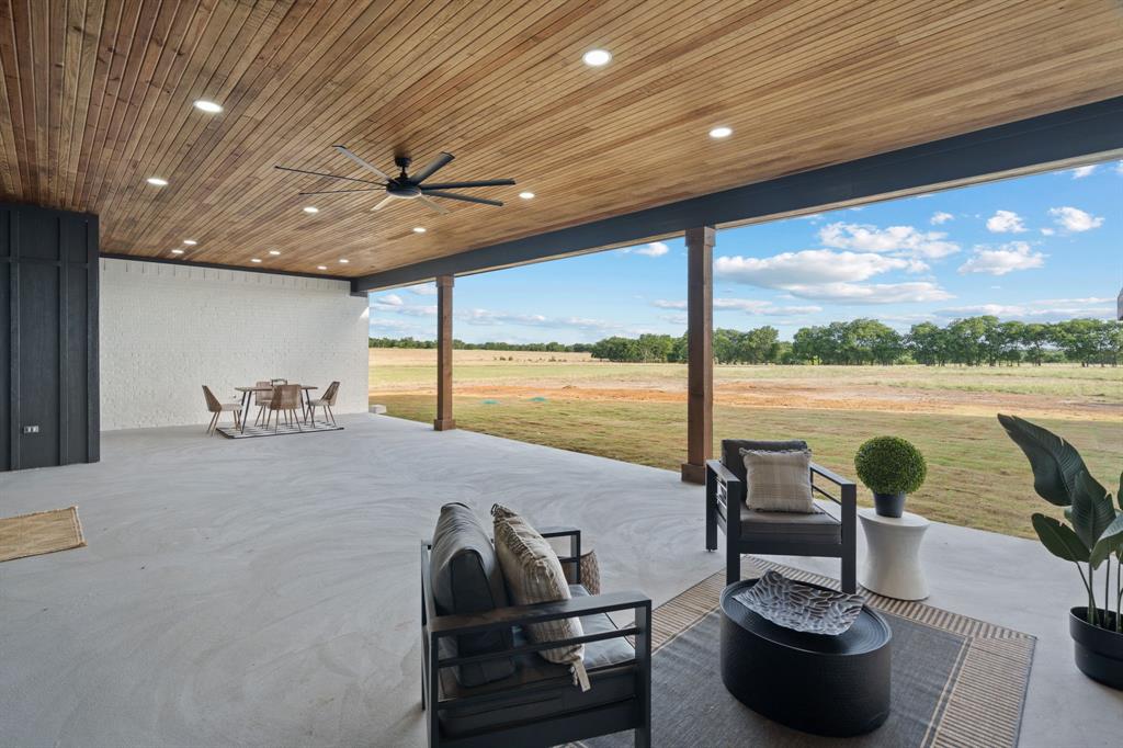 Step outside to enjoy the scenic country views from your front covered patio, ideal for enjoying morning coffee or evening sunsets. The exterior boasts a striking contrast of white board-and-batten siding, black rooflines, and wood accents for ultimate curb appeal. You back patio offers expansive space for all those family gatherings with a second fireplace for entertaining.