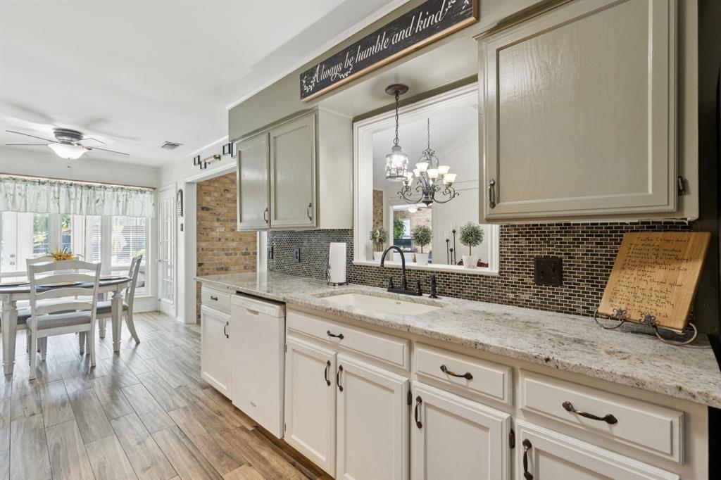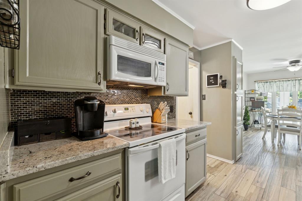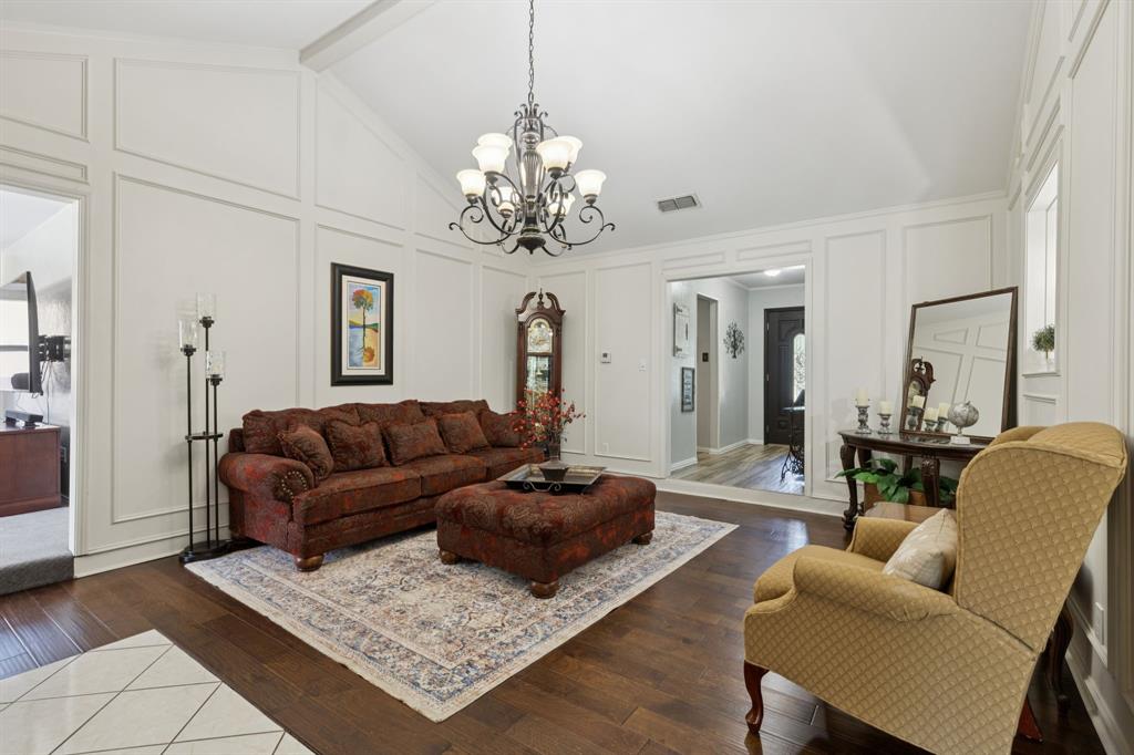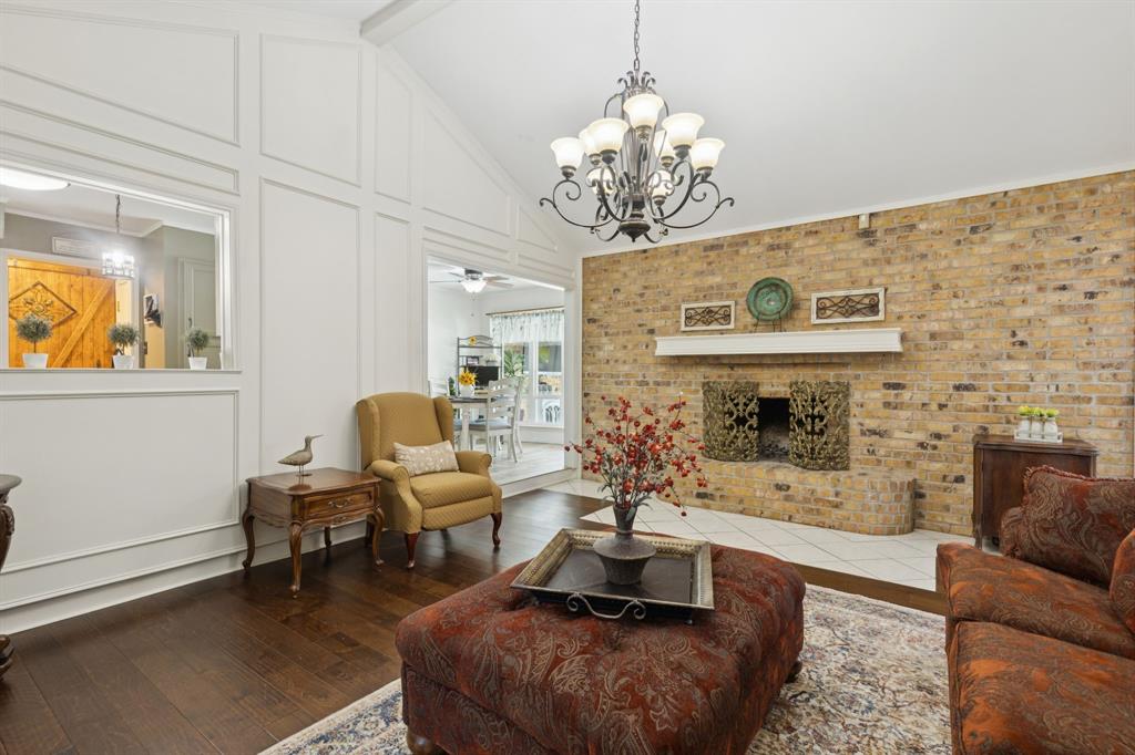 This stunning home offers exceptional curb appeal with lush green grass, mature trees, and a welcoming exterior. Inside, you'll find a spacious and versatile layout featuring three living areas and two dining areas—ideal for both everyday living and entertaining. The main living room impresses with a soaring cathedral ceiling and cozy wood-burning fireplace, while the formal living area offers a second fireplace and a stylish wet bar with granite countertops. The kitchen is beautifully done with granite counters, ample cabinet space, and a bright breakfast nook with a charming bay window. The formal dining room includes a built-in butler’s pantry, perfect for hosting dinner parties.